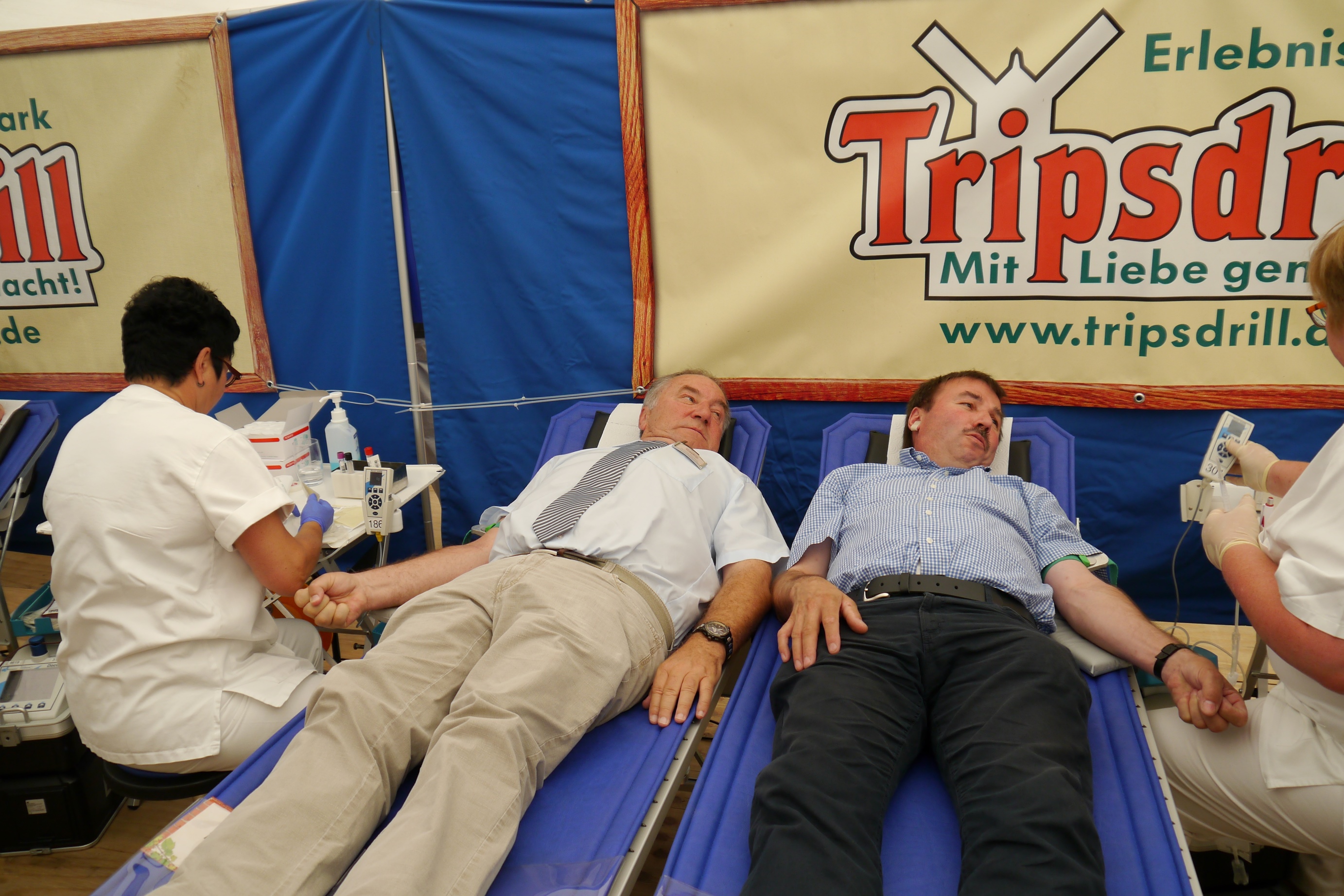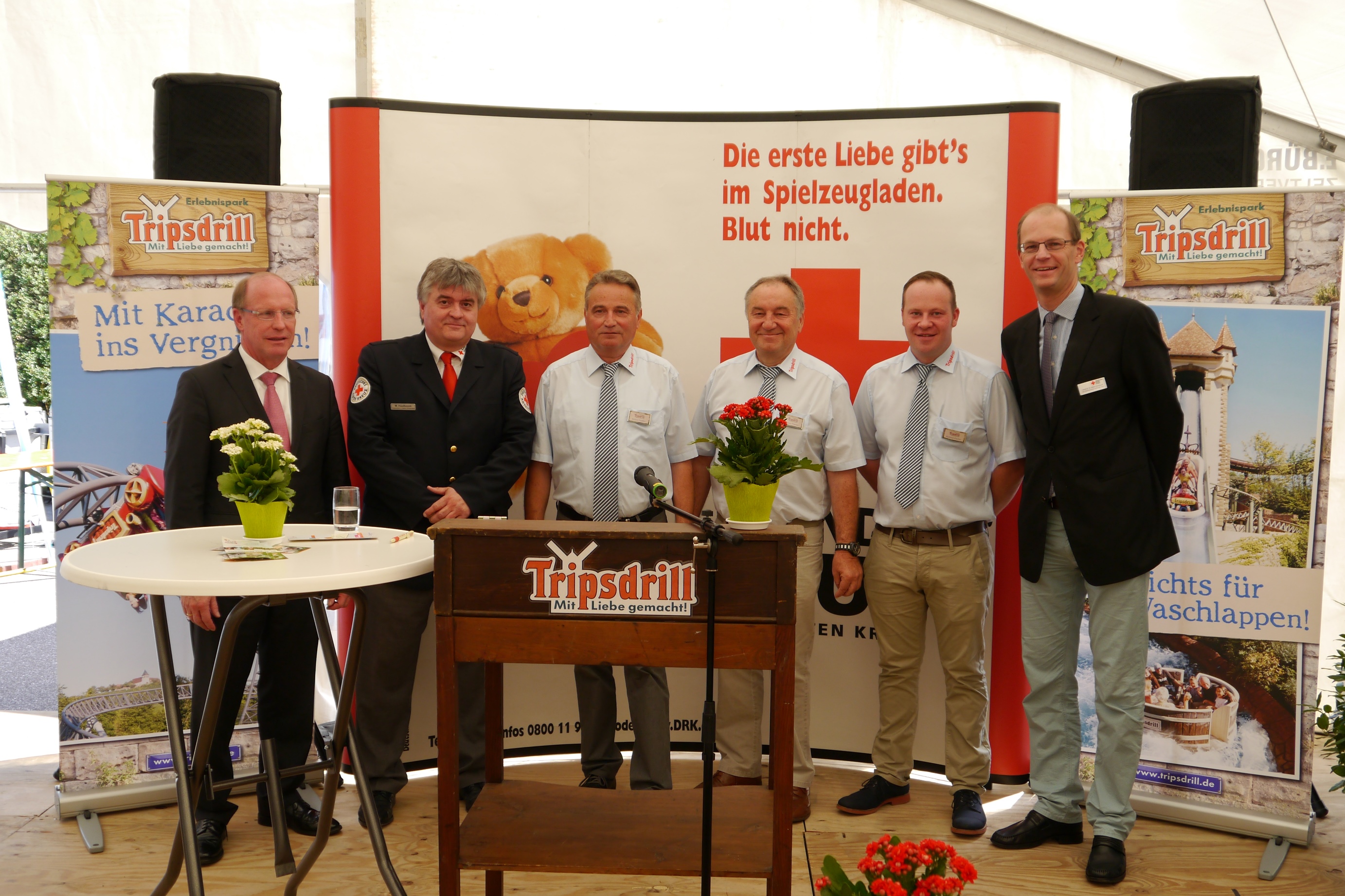 Eröffnet wurde die Blutspendeaktion am Montag, 3. August durch den Schirmherrn und Landtagspräsidenten des Landes Baden-Württemberg Wilfried Klenk. Neben Tripsdrill-Geschäftsführer Helmut Fischer gingen Eberhard Gienger (MdB) sowie die Landtagsabgeordneten Thomas Reusch-Frey und Konrad Epple mit gutem Beispiel voran. Wie in den vergangenen Jahren wurde die Blutspendewoche wieder von den Bikern des Vereins Rennleitung#110 und der Streetbunnycrew unterstützt, um im Zuge der Aktion „Herzblut“ Tages-Pässe zu sammeln. Die Tages-Pässe werden an Kinder im Waldpiratencamp bei Heidelberg gespendet, die es im Leben schwerer haben als andere.