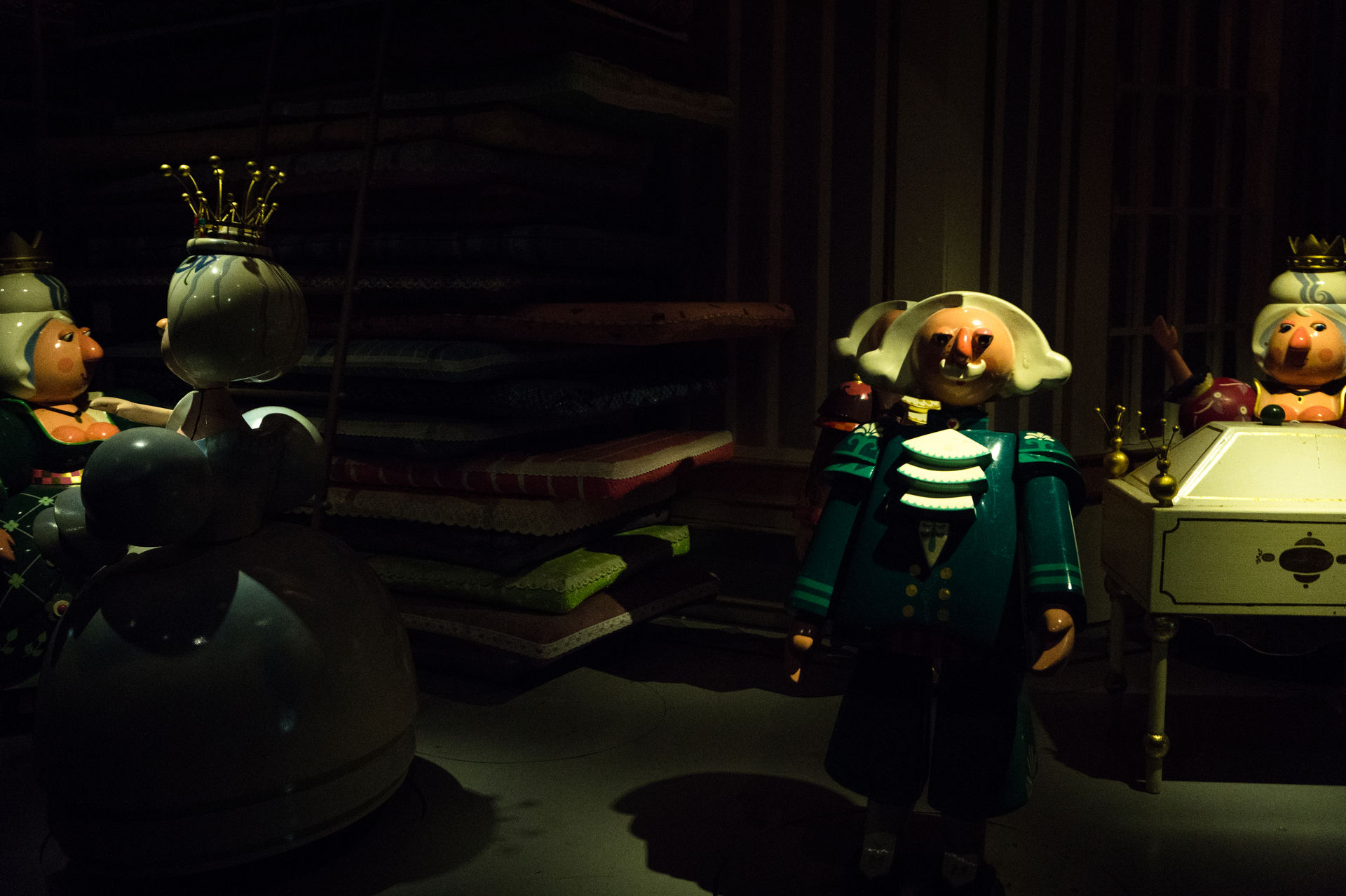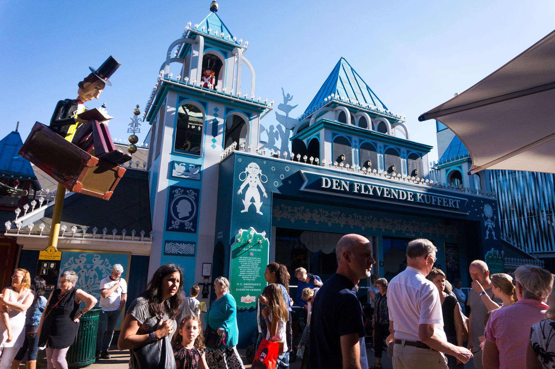 Neben den Arkaden befindet sich mit Den Flyvende Kuffert eine weitere Themenfahrt, welche mit kleinen niedlichen Puppen die Märchen von Hans Christian Andersen erzählt. Die Fahrt in den fliegenden Koffern wird dabei wahlweise auf Dänisch oder Englisch abgehalten, wobei man schon genau hinhören muss um nicht von den Narrationen der anderen Gondeln abgelenkt zu werden. Während der langen Fahrt, welche stets auf- und abwärts führt bekommt man einen guten Einblick in die bekannten Märchen geboten, wobei man jedoch, ähnlich wie beim Flying Fish Nautilus, einen kitschigen Song als stimmige Untermalung der Fahrt insgeheim vermisst. Nichts desto trotz ist Den Flyvende Kuffert eine mehr als sehenswerte Themenfahrt.