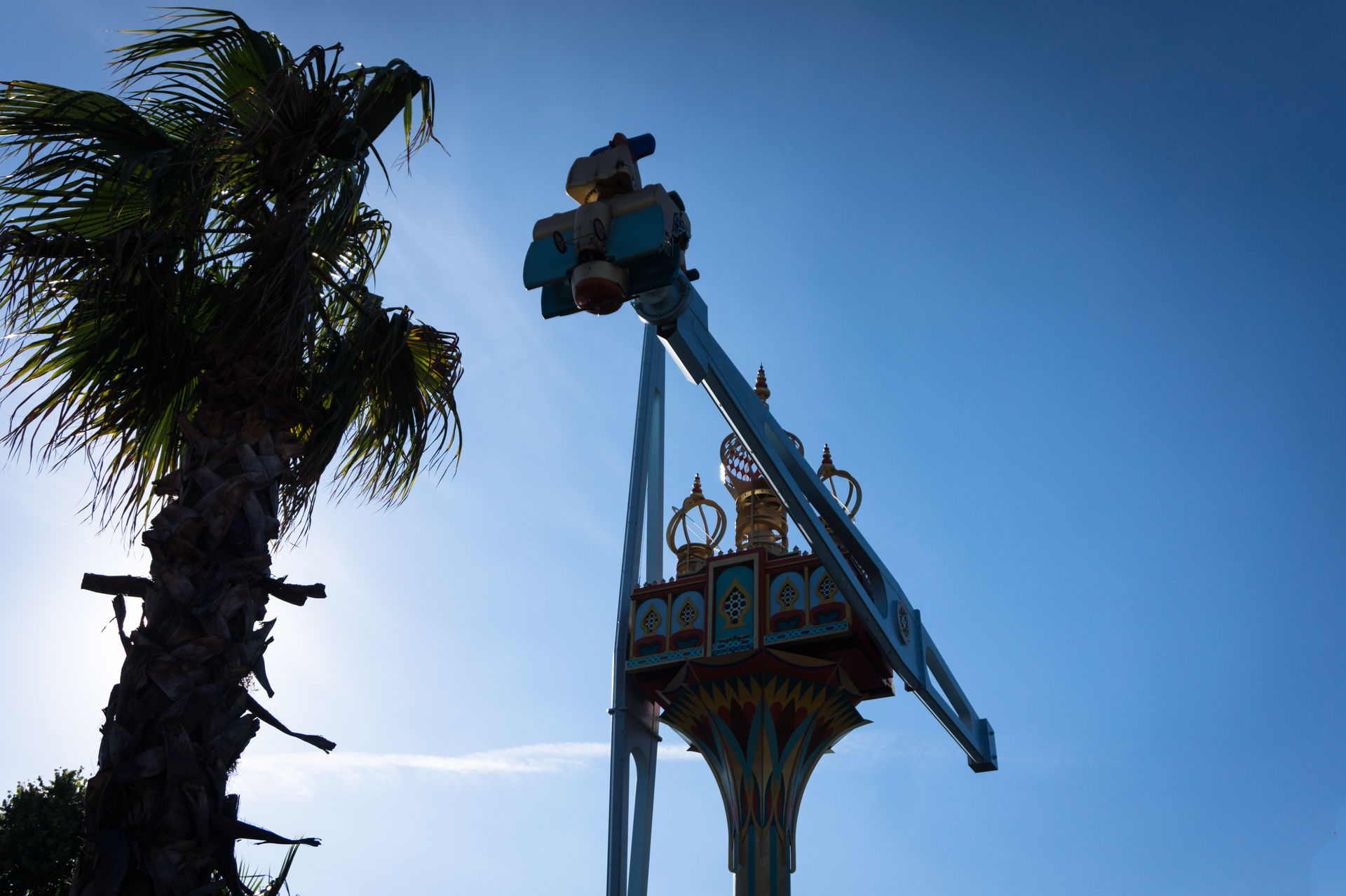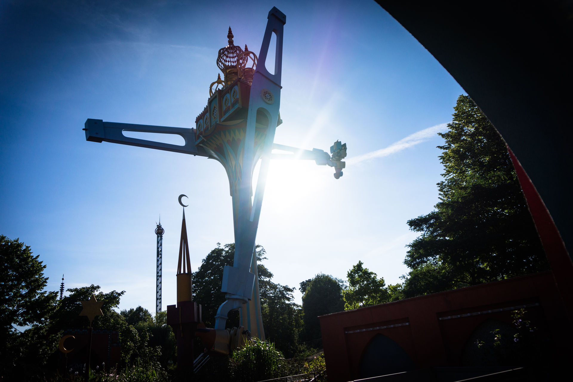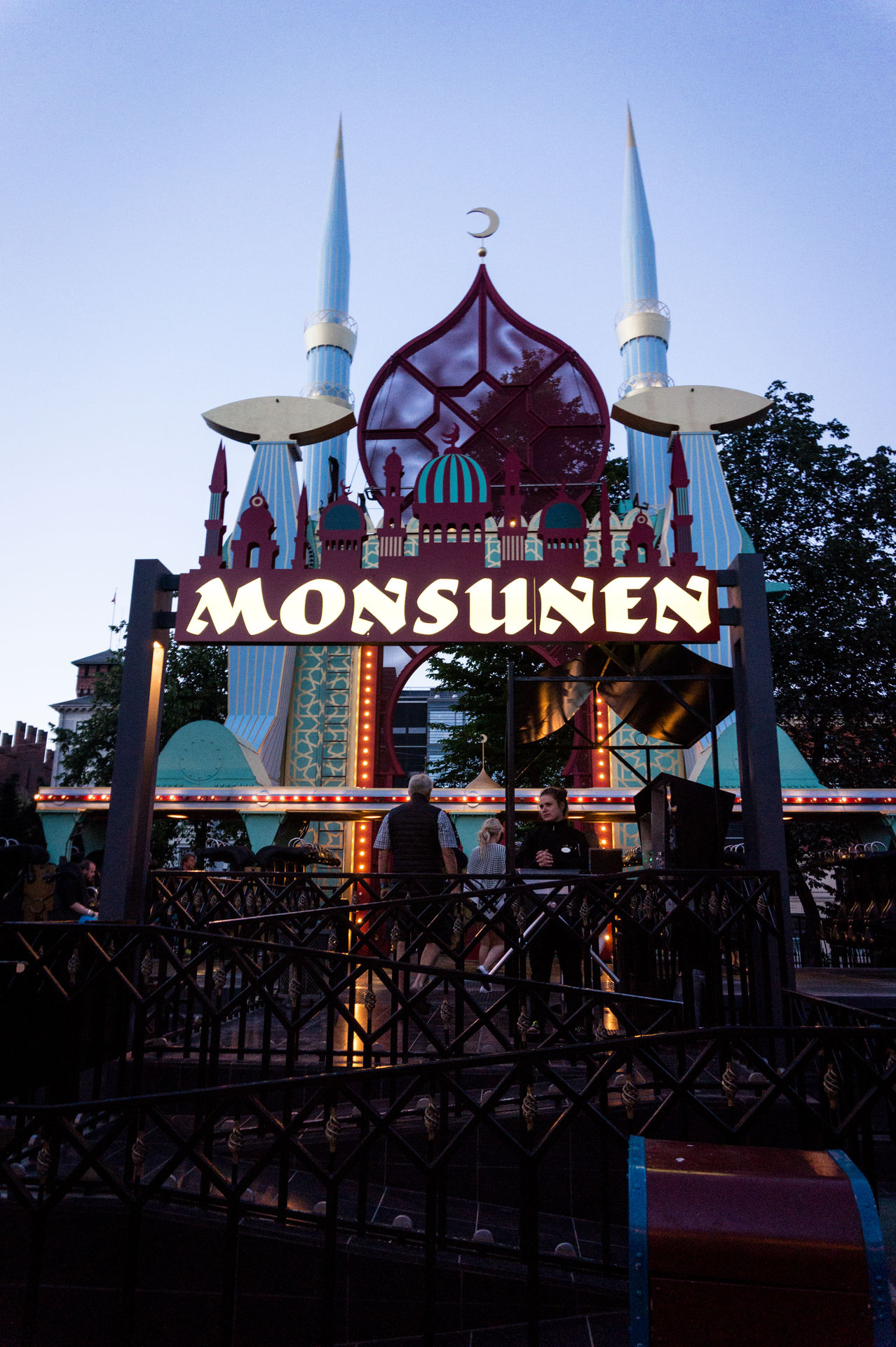 Vorbei an unzähligen Restaurants geht es nun in die hinterste Ecke des Parks, wo sich der arabische Themenbereich des Parks befindet, seltsamer Weise verbringen die meisten Personen aus dieser Region ihren Aufenthalt im Tivoli hier und schaffen somit unbewusst die passende Atmosphäre. Direkt am Parkrand gelegen befindet sich mit Monsunen ein Suspended Flying Carpet der Firma
