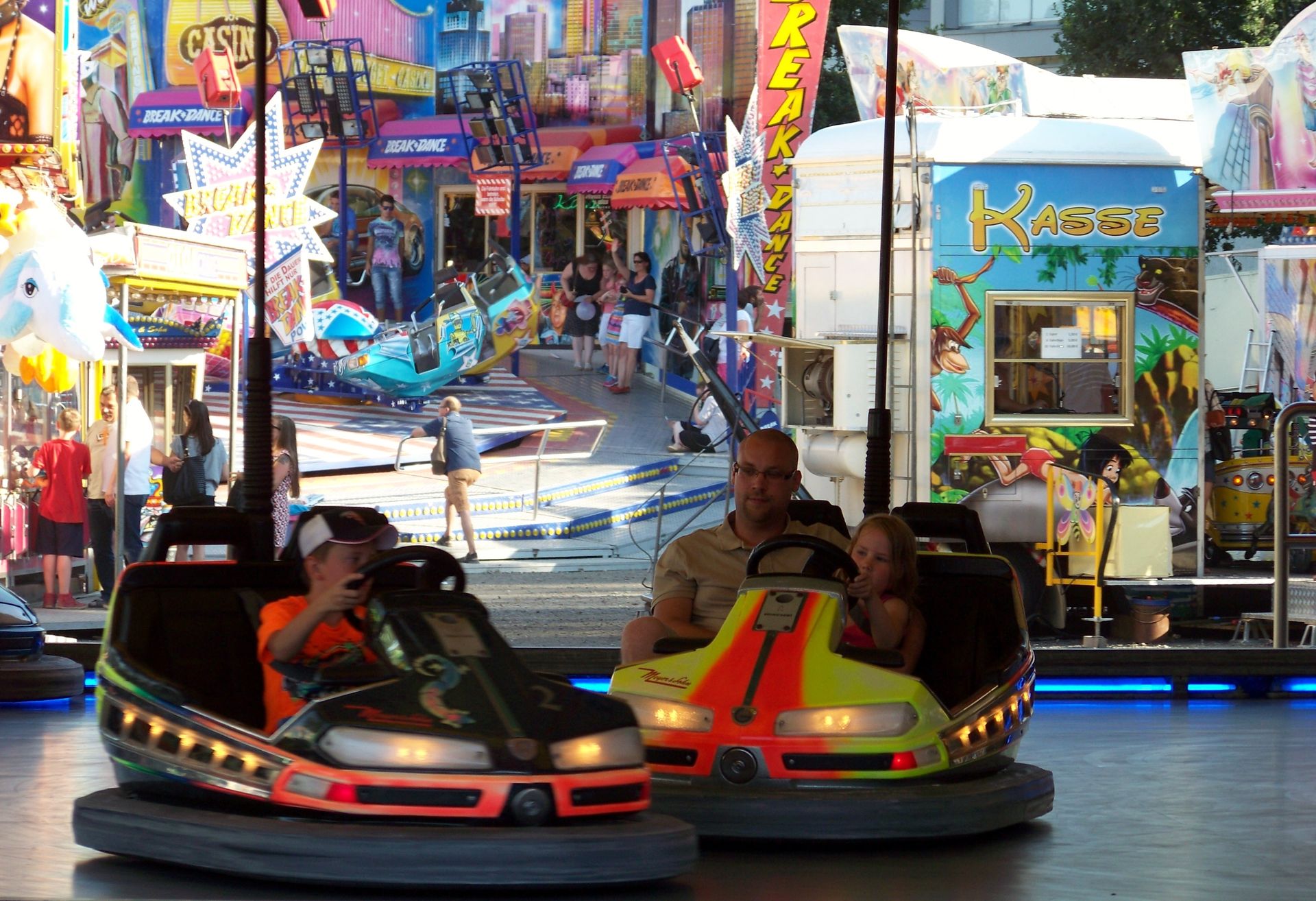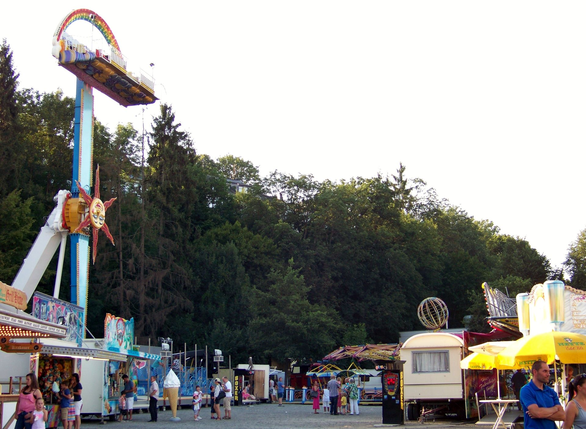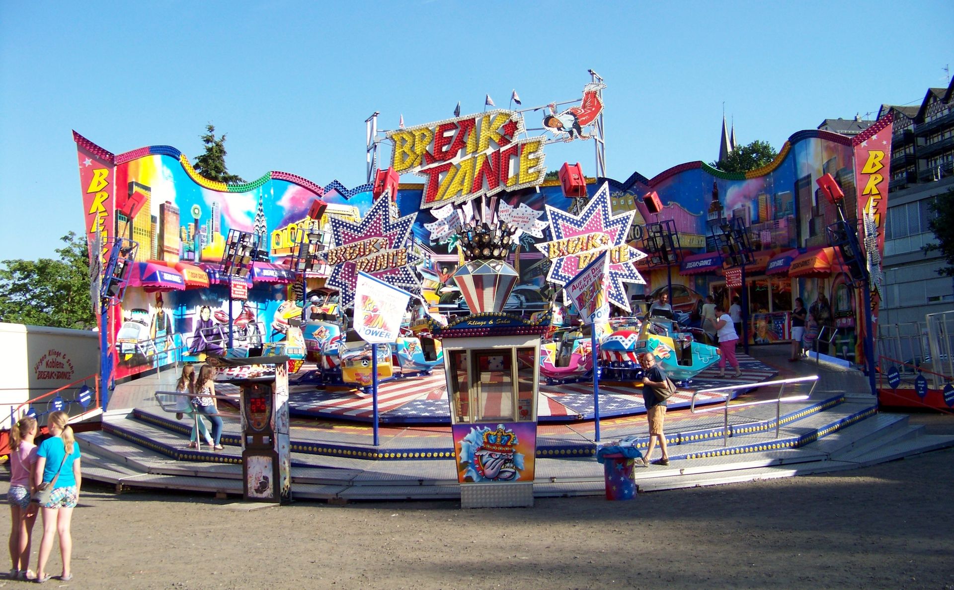Der nächste Stopp nach Ratingen war die Kirmes in Montabaur (fehlt ebenfalls noch in der Datenbank). Die Veranstaltung findet recht kompakt und offen gestaltet auf einem Platz unterhalb der Altstadt statt, auf dem man den Rainbow von Klinkerfuß, den Break Dance von Klinge (mit sehr schicken neuen SAD-Gondelkreuzen ausgestattet), den Allround von Kromin (ein weiterer Bewerber um den Titel langsamster Twister bzw. twister-artiges Geschäft in Deutschland neben Krauses Flying Star), Autoscooter von Meyer, 5D-Kino und das Kinderlaufgeschäft Wild Kids antreffen konnte.