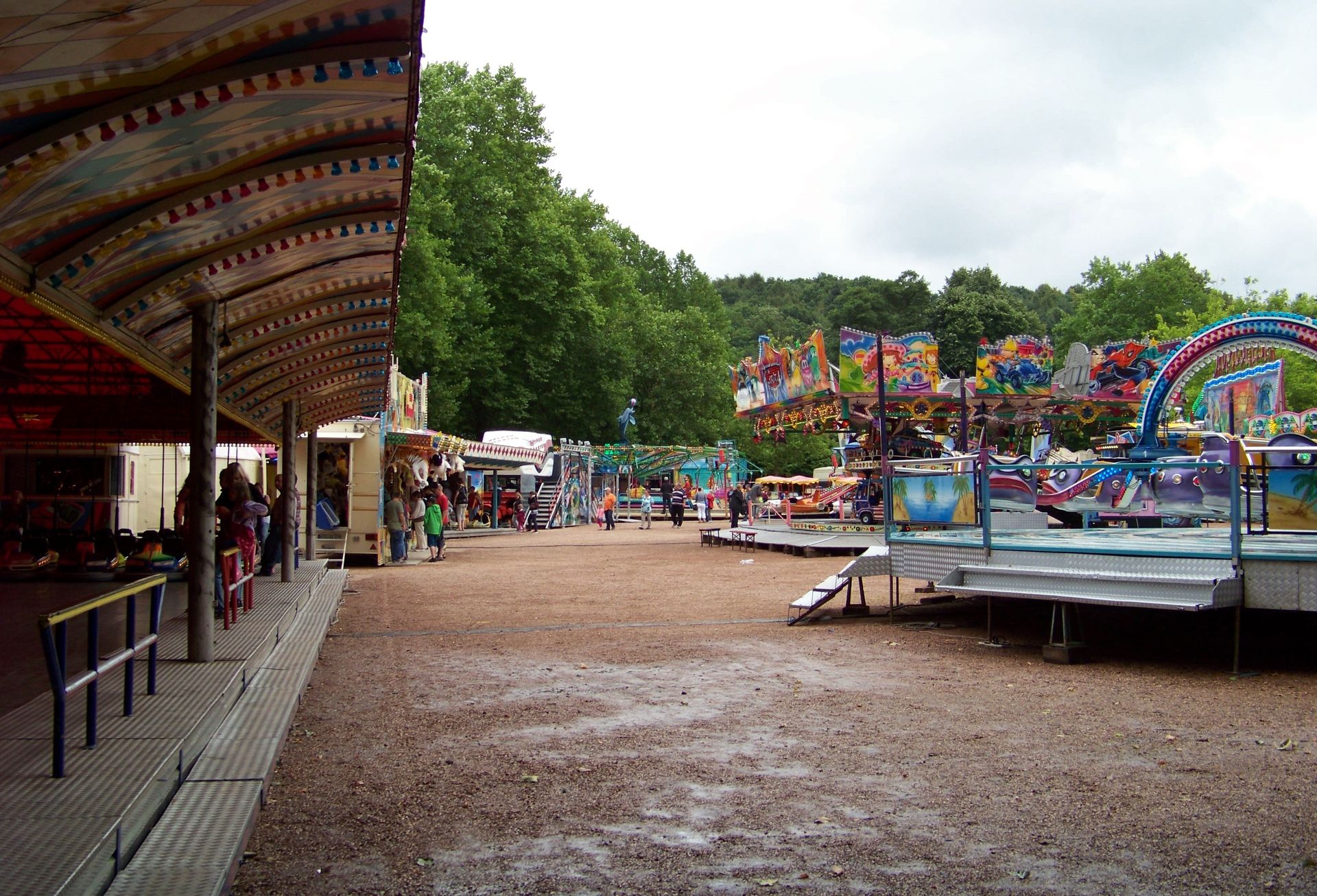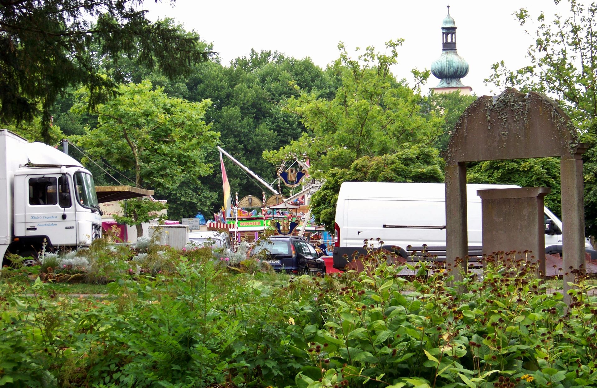 Leider sah es bei meiner Ankunft in Illingen eher düster und nass aus. Bis auf ein paar Kinderfahrgeschäfte, Essens- und Krammarktstände hatte noch nichts auf dem Platz geöffnet, weswegen ich ersteinmal das Umfeld der Steffes-Kirmes (fehlt natürlich ebenfalls in der Datenbank