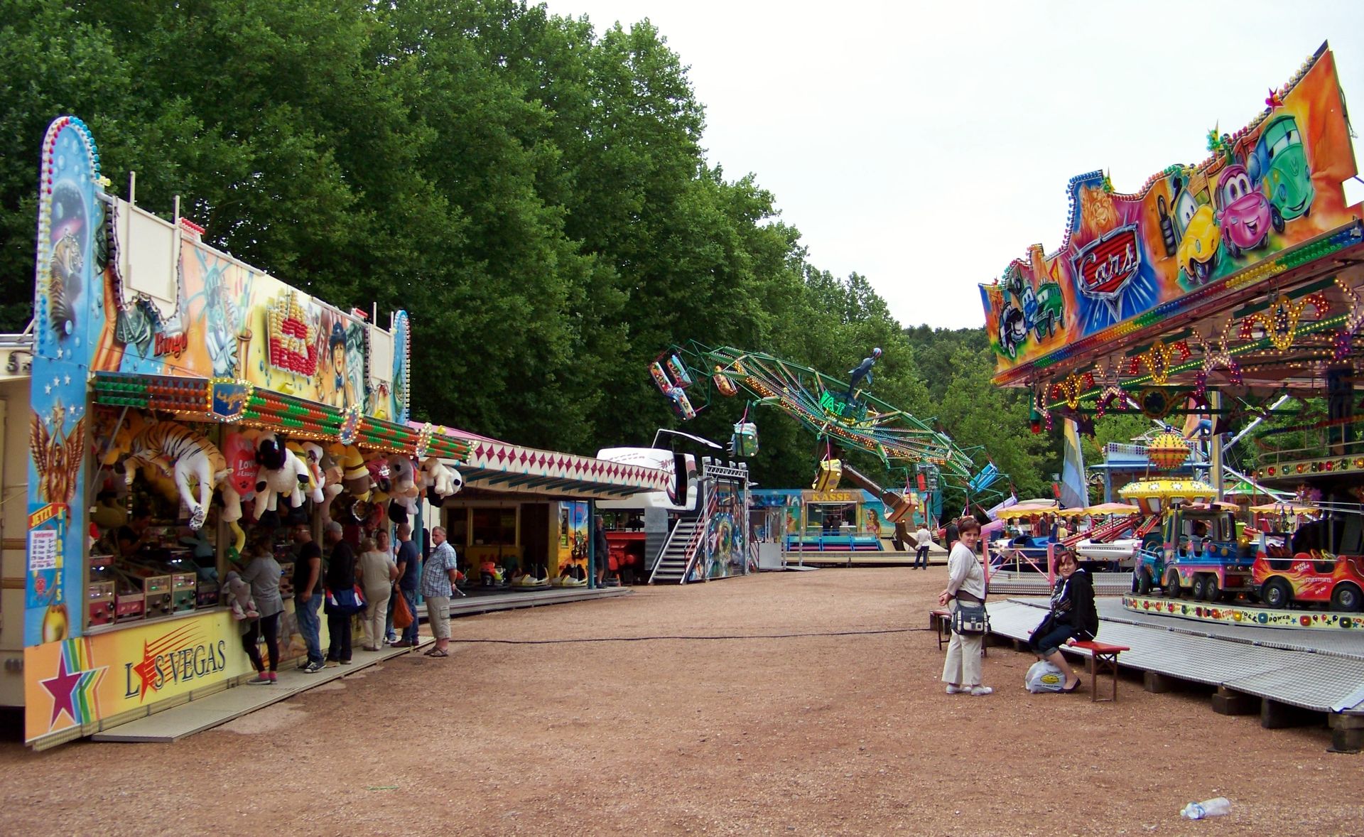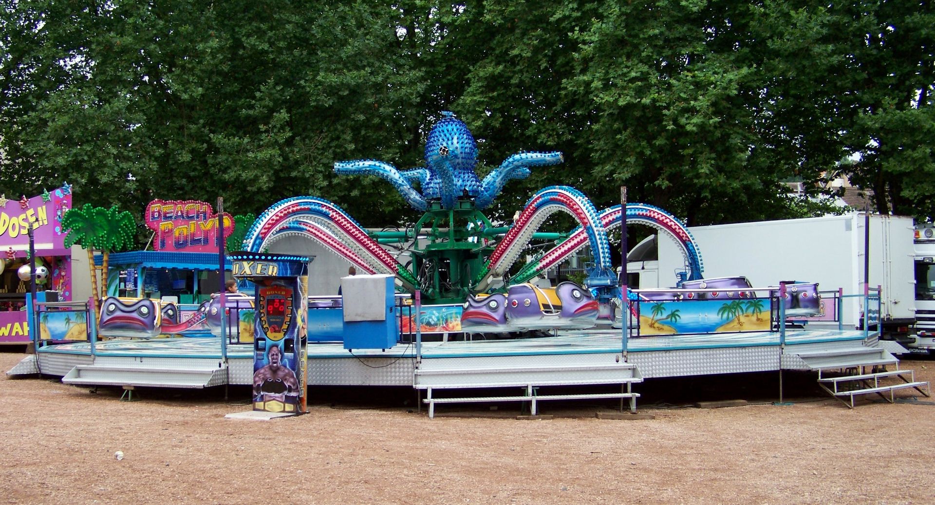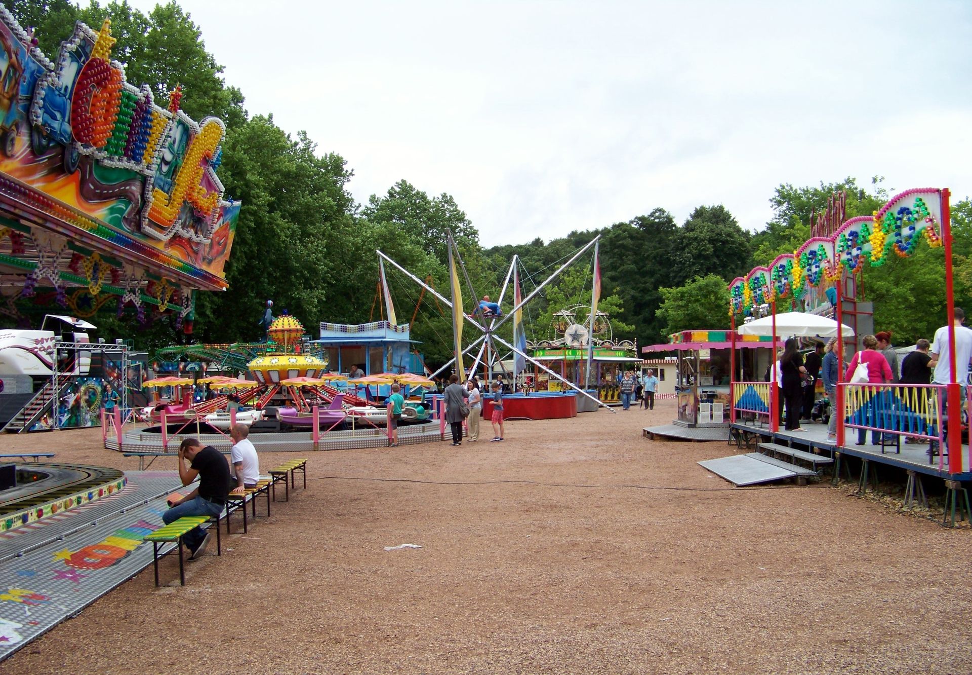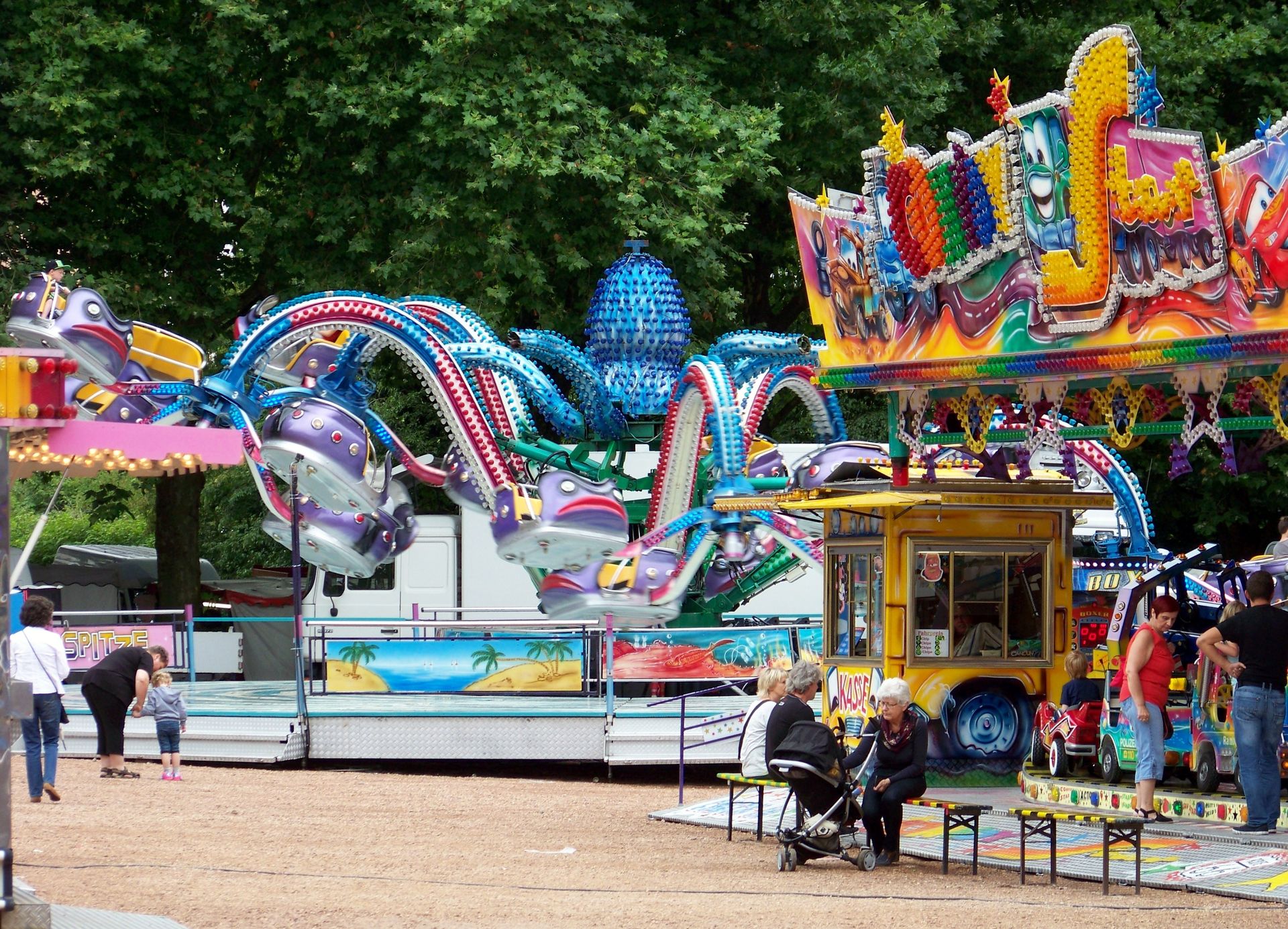 Auf dem Festplatz waren fast ausschließlich saarländische Schausteller vertreten, deren Geschäfte man auch nicht allzu oft weit außerhalb des kleinen Bundeslandes zu Gesicht bekommt. Dabei waren der alte Beach Polyp und der Tropical Trip von Massel, der Twister Blue Hawaii von Pistorius, der Autoscooter von Sartorio, einige Kinderfahrgeschäfte und als Gast aus Rheinland-Pfalz der