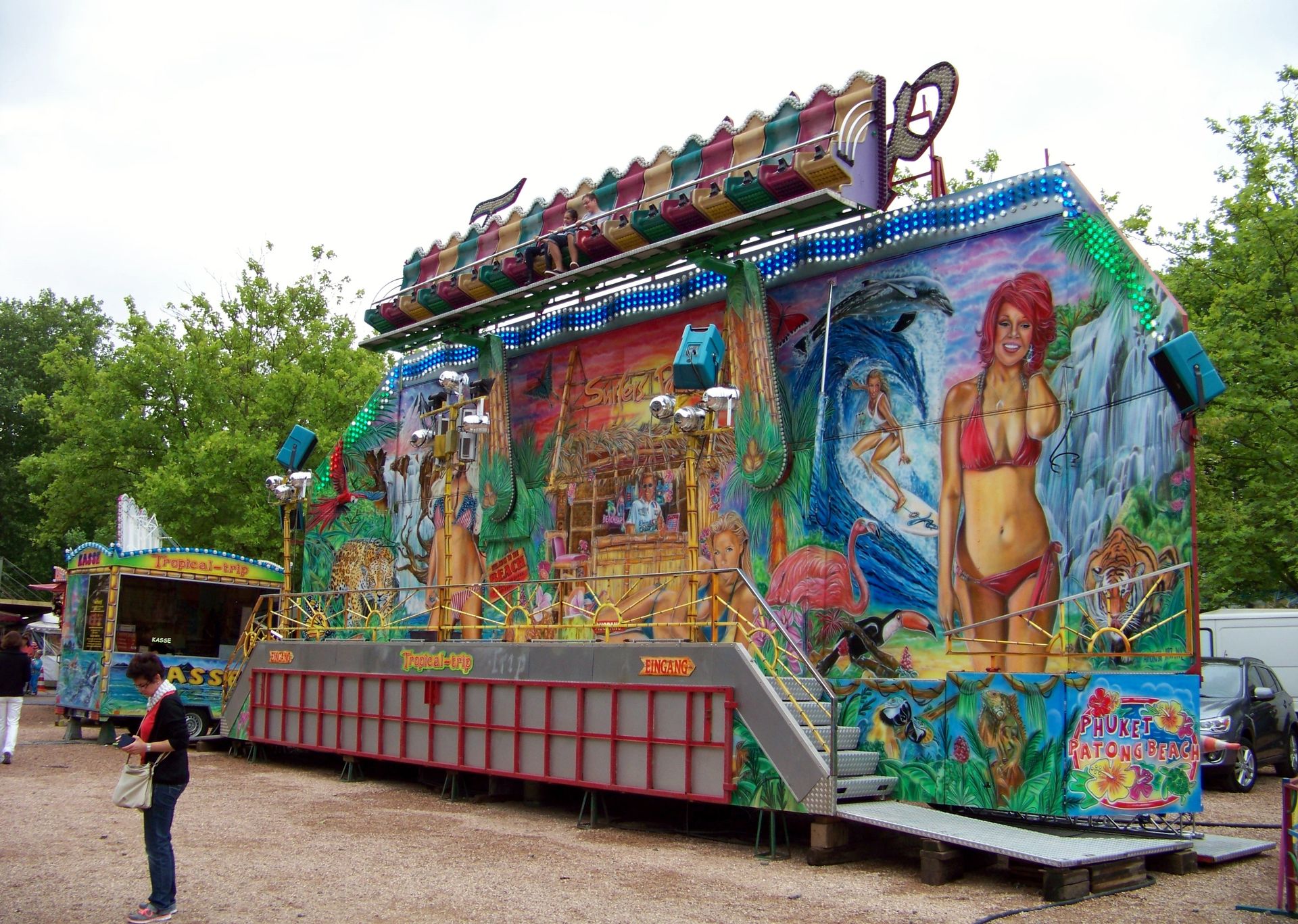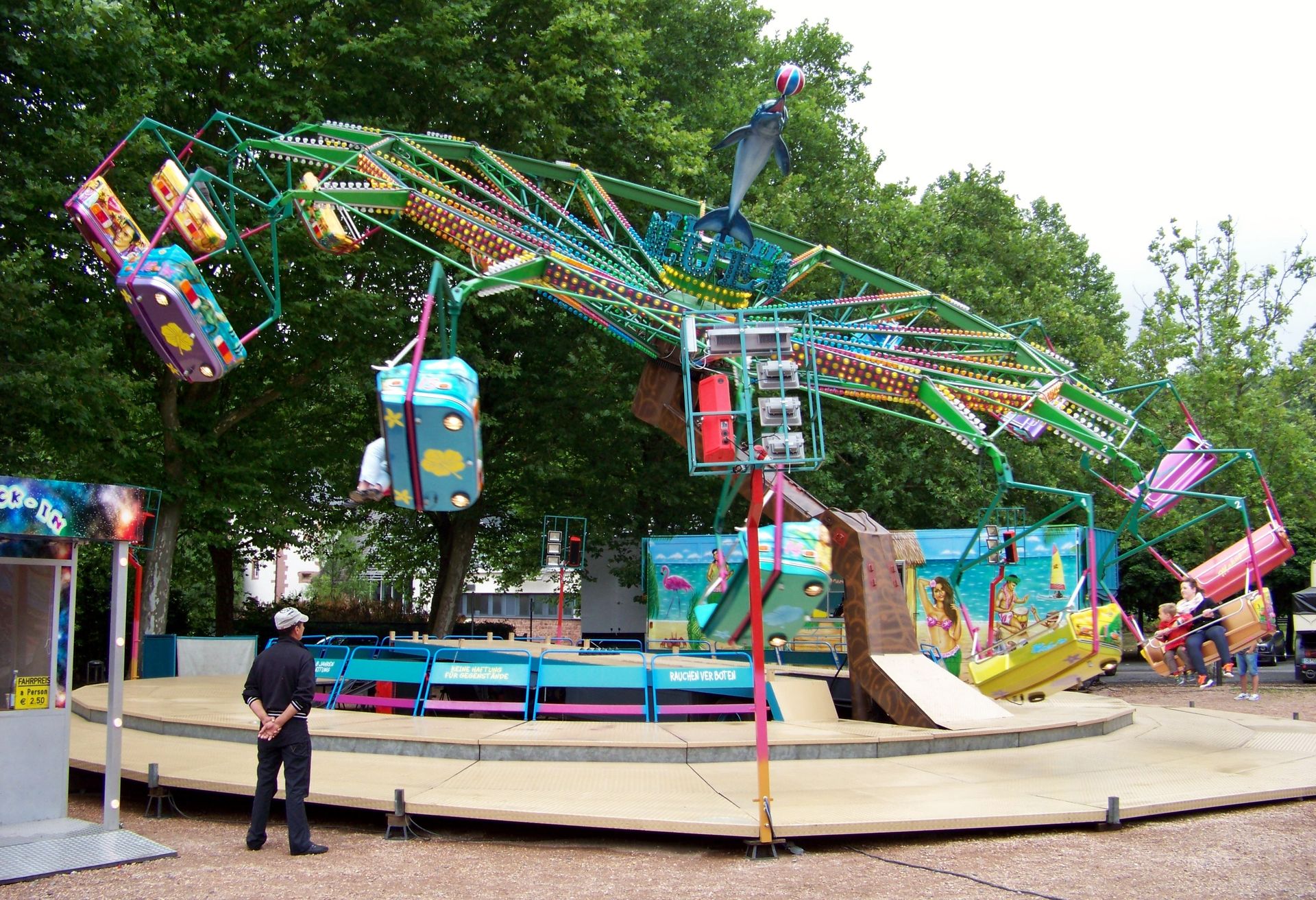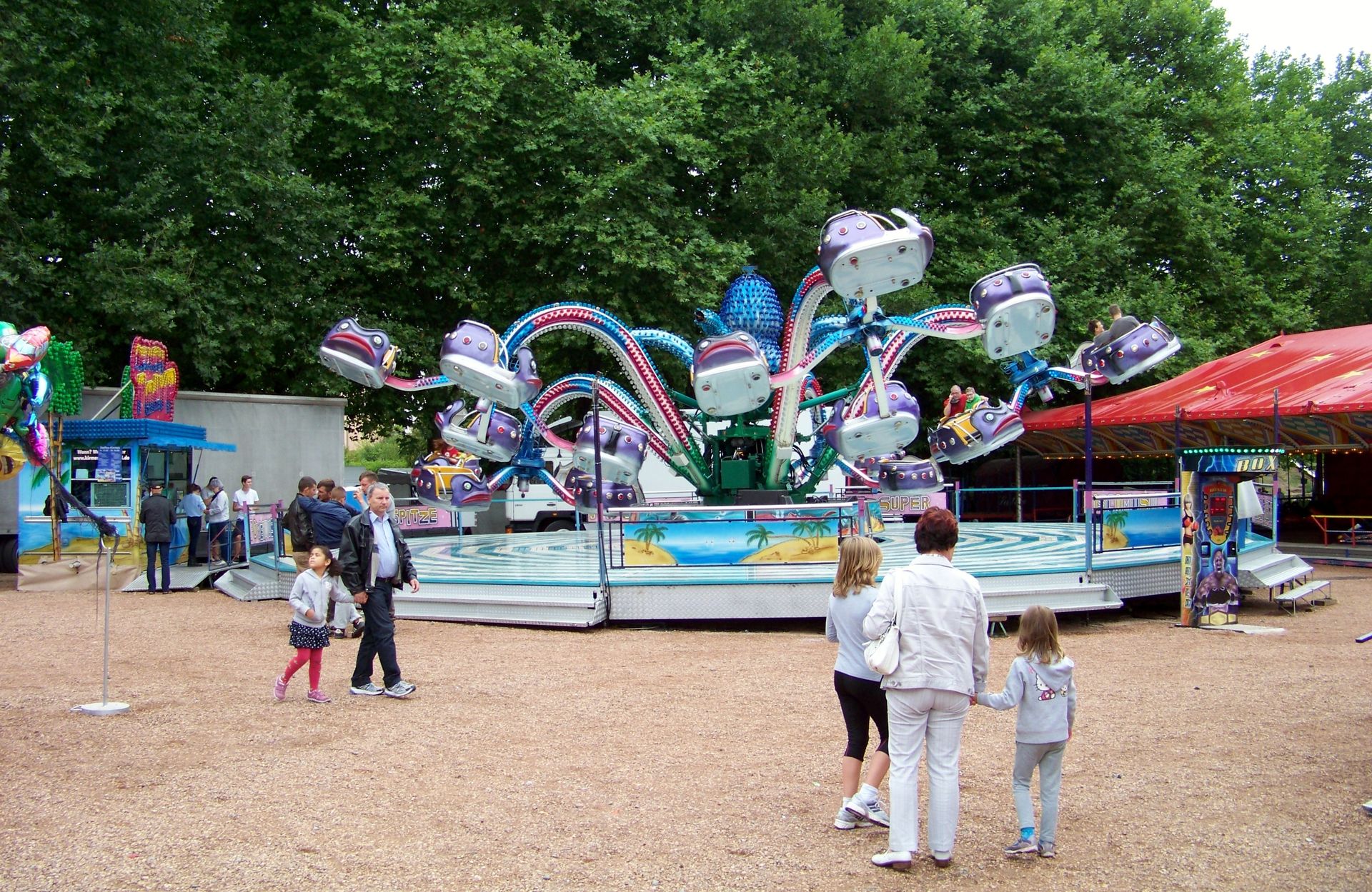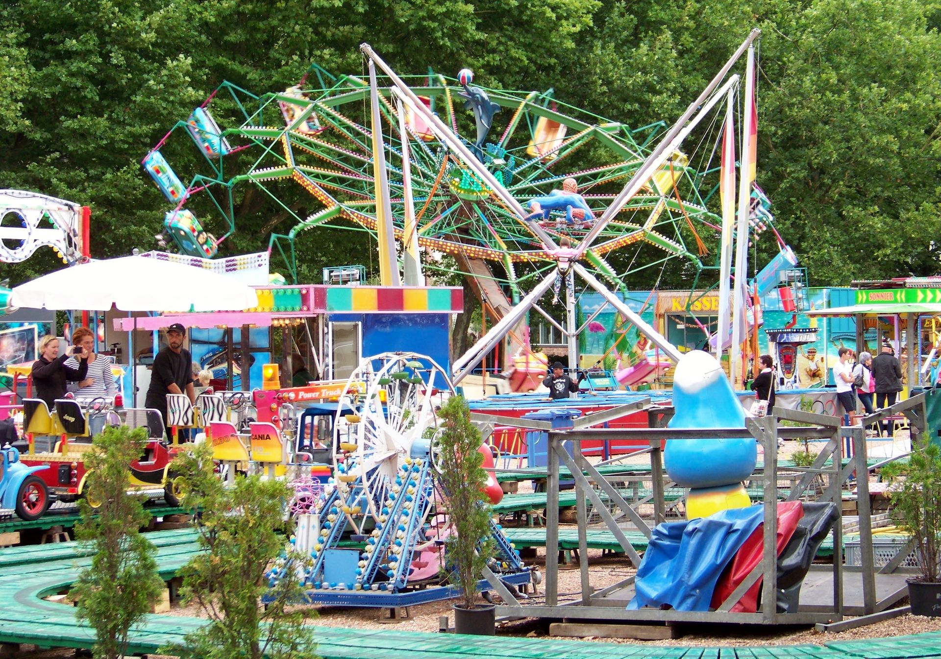 Auf dem Festplatz waren fast ausschließlich saarländische Schausteller vertreten, deren Geschäfte man auch nicht allzu oft weit außerhalb des kleinen Bundeslandes zu Gesicht bekommt. Dabei waren der alte Beach Polyp und der Tropical Trip von Massel, der Twister Blue Hawaii von Pistorius, der Autoscooter von Sartorio, einige Kinderfahrgeschäfte und als Gast aus Rheinland-Pfalz der