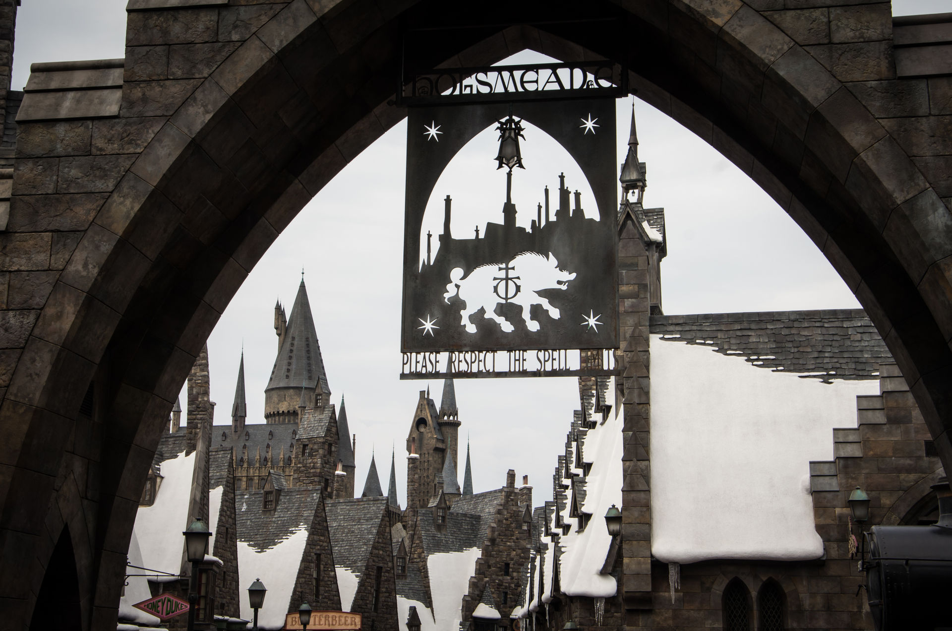 Denn um überhaupt nach Hogsmeade zu kommen mussten Tickets gezogen werden, ähnlich Disneys Fastpass…12:20 war die Zeit, also erst einmal weiter nach Gotham. Oder Arkham.