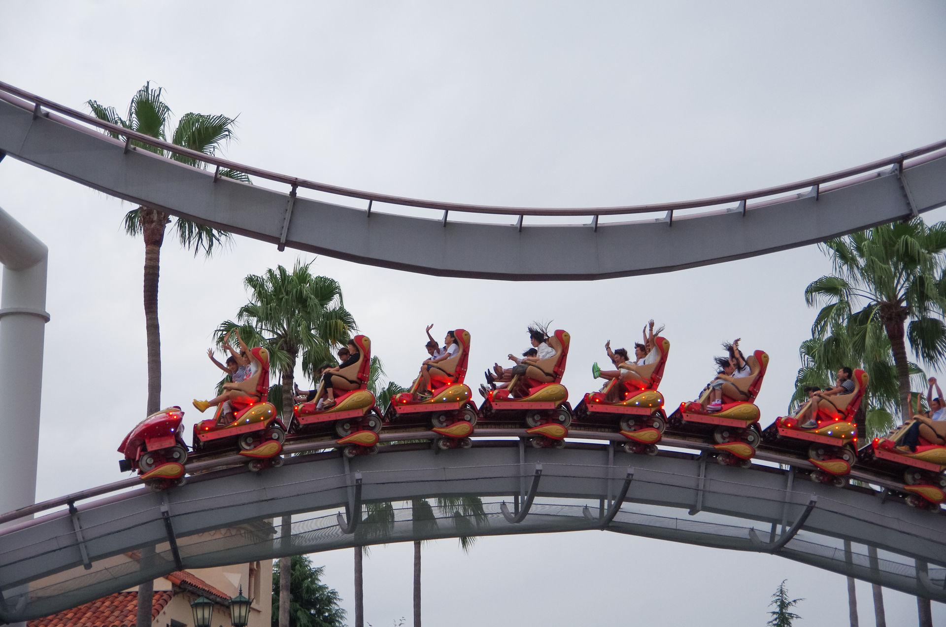 Bei Hollywood Dream fährt einer der vier Züge im Rückwärtsgang.
