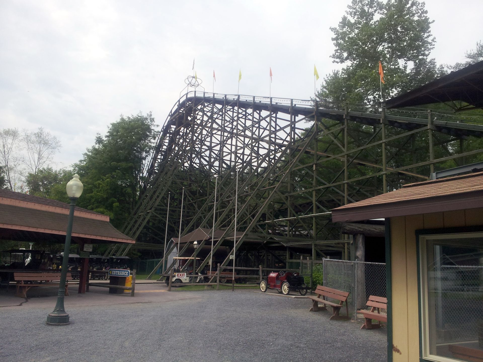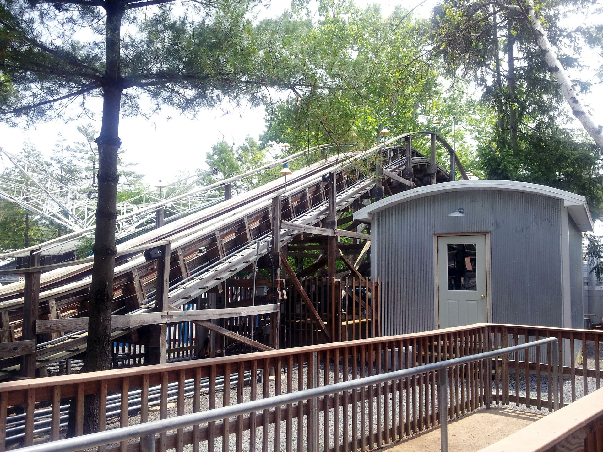 Denn ursprünglich stand dieser Woody im Playland Park (nein, nicht in dem von uns besuchten in New York, sondern in San Antonio, Texas). Im Jahr 1947 von Herb Schmeck konstruiert und von PTC gebaut, erfreute die Bahn dort als "The Rocket" die Besucher. Allerdings musste der Park 1980 seine Tore schließen. Nach vier Jahren Stillstand kaufte Knoebels schließlich die Bahn und ließ sie Balken für Balken umsetzen. So erwachte sie also wie der Phoenix aus der Asche.
