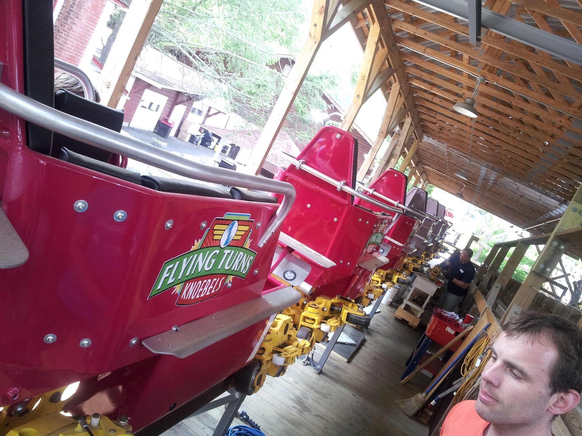 Es ist einfach Wahnsinn, wie viel Aufwand dieser vergleichsweise kleine Park für die Flying Turns betreibt. Jeder "normale" Park hätte die Bahn längst als unwirtschaftlich eingestuft und abgerissen. Wobei man zugeben muss, dass auch kein anderer Park auf die Idee gekommen wäre, eine solche Bahn zu bauen. Und wenn doch, hätte an wohl spätestens nach ein paar Jahren Verzögerung aufgegeben.