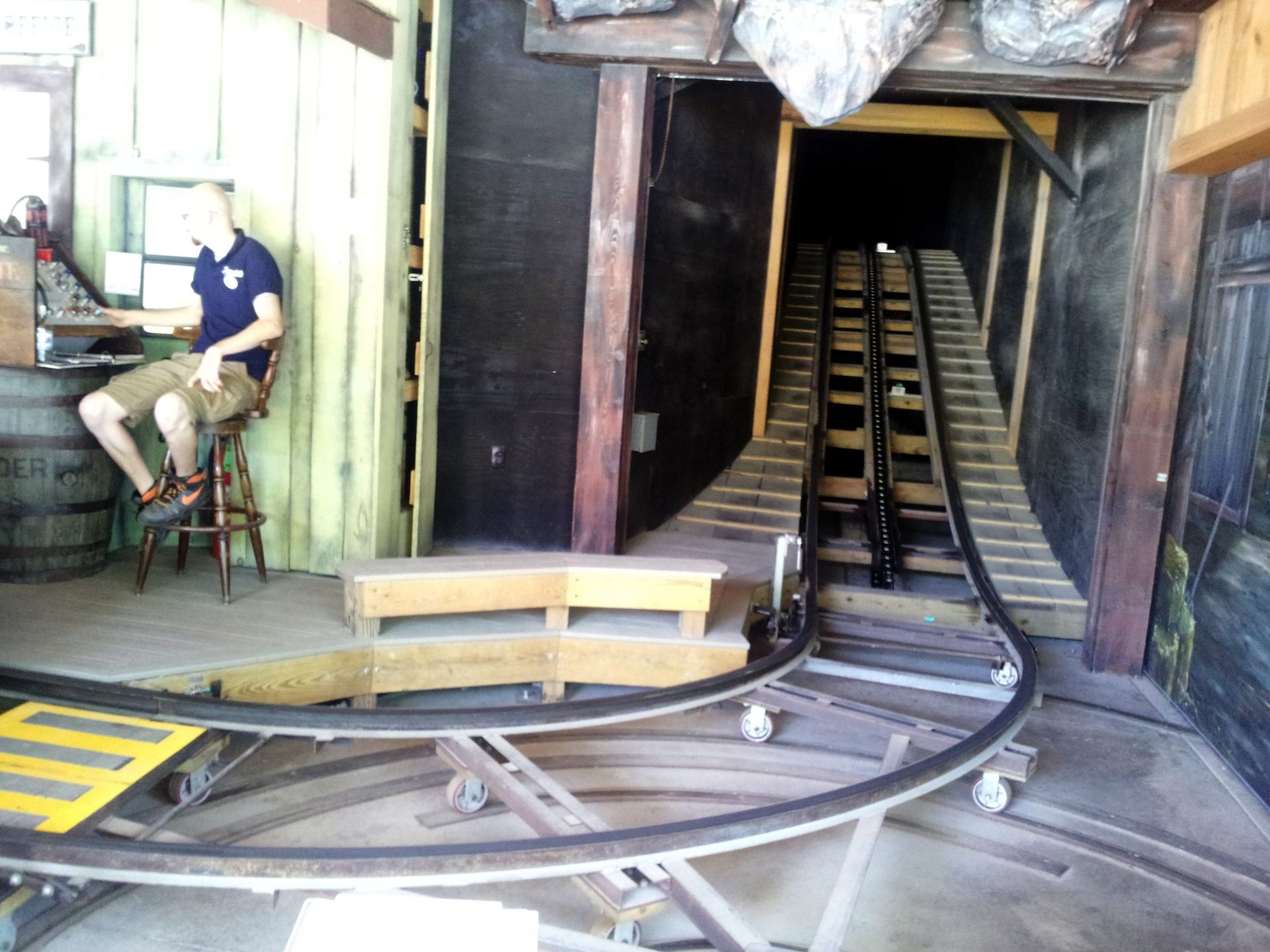 Wo ich dann wieder voll dabei war, war die anschließende Backstage-Führung bei den Flying Turns. Da die Bahn aber mitten im Park steht, wusste der Rest meiner Gruppe nicht so recht, was man uns da noch zeigen wollte, und ging daher andere Wege.