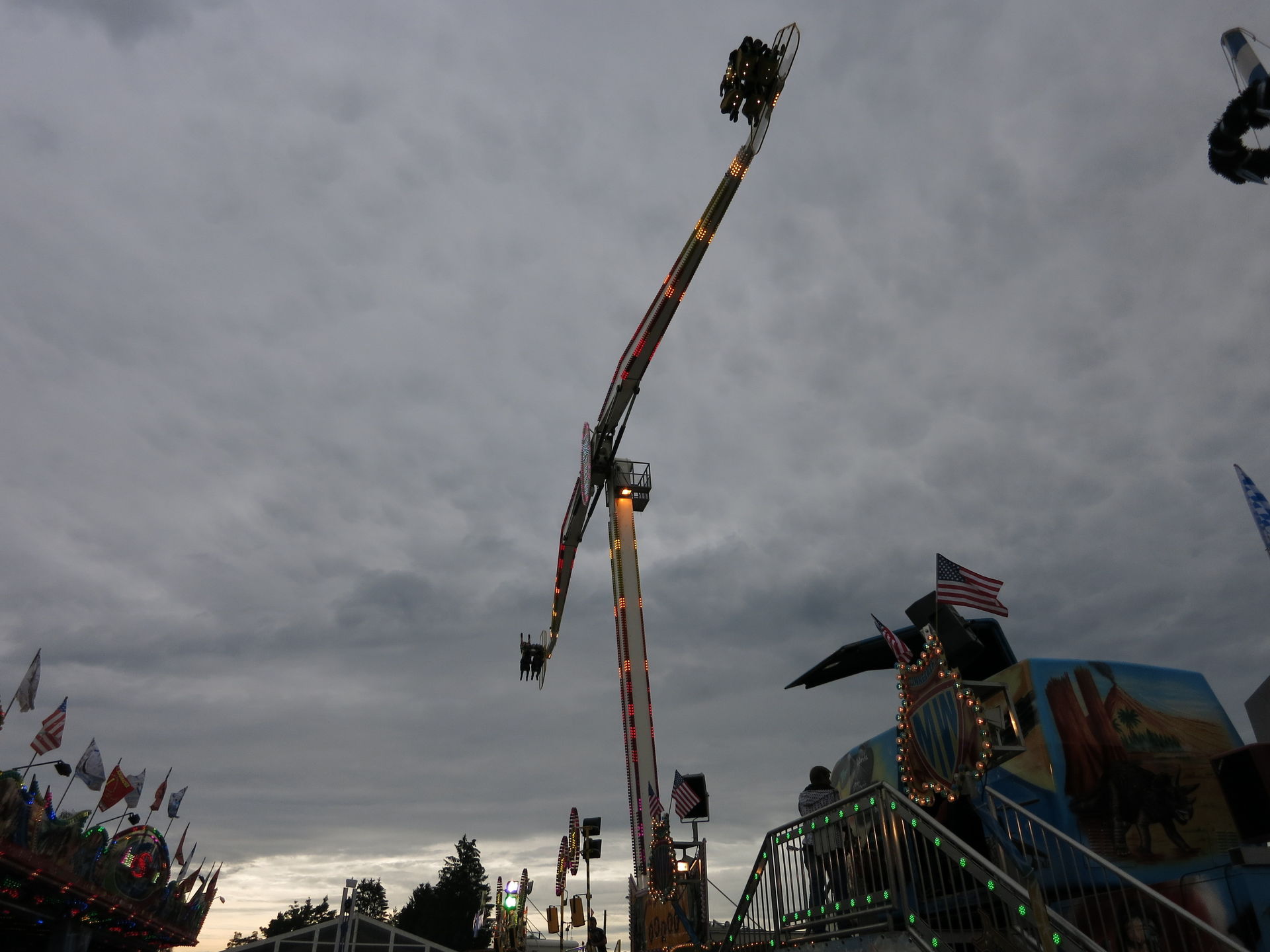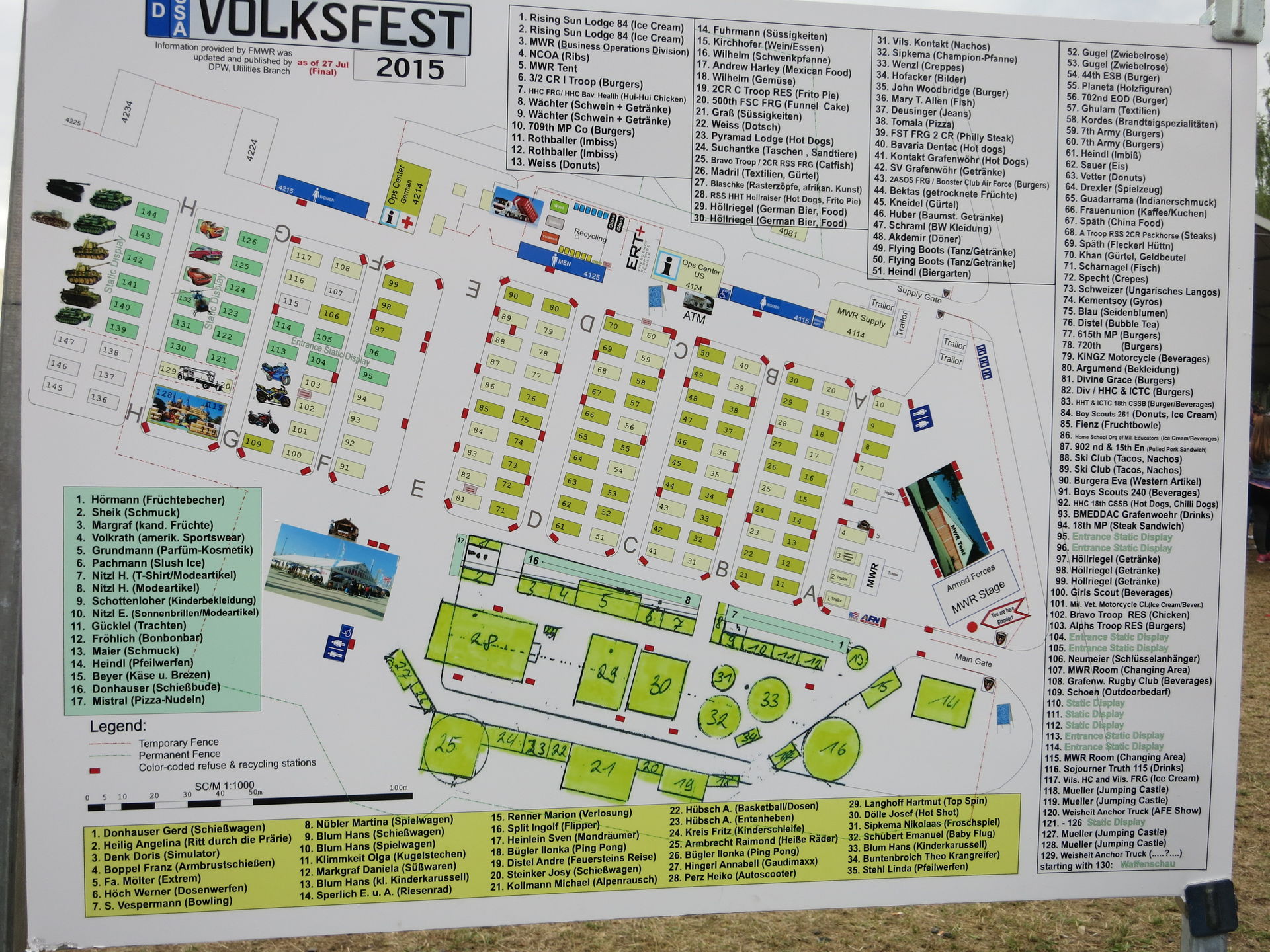 Nach dem Eingang findet man links den Vergnügungspark. Die rechte Seite ist für Essens- und Getränkestände vorgesehen, die größenteils von der US-Armee betrieben werden.
