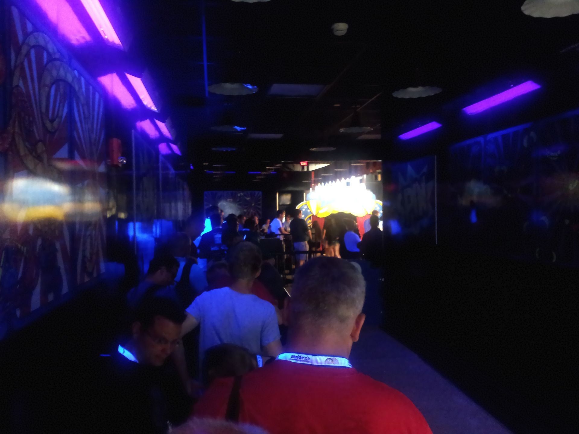 Nunja, was soll man jetzt von Laff Trakk halten? Die Halle ist von außen ganz ok, gibt definitiv schlimmere. Der Wartebereich ist relativ kahl, das Schwarzlicht sorgt aber immerhin für ein paar nette Leuchteffekte auch an der Kleidung der Wartenden. Ähnlich sieht es in der Halle selbst aus. Etwas Schwarzlicht, ein paar leuchtende Gesichter und Formen... Ja, es ist mal was anderes. Aber da wäre mehr rauszuholen gewesen. Und die Fahrt kann leider auch nicht viel. Ist halt der Standard-Xtended SC2000 von Maurer - wobei man das S (für Spinning) hier durchaus streichen könnte. Unser Wagen drehte sich nämlich nur ganz minimal. Das ginge definitiv besser. Andererseits war Laff Trakk noch keinen Monat eröffnet. Vielleicht muss sich die Bahn noch "warmdrehen"?