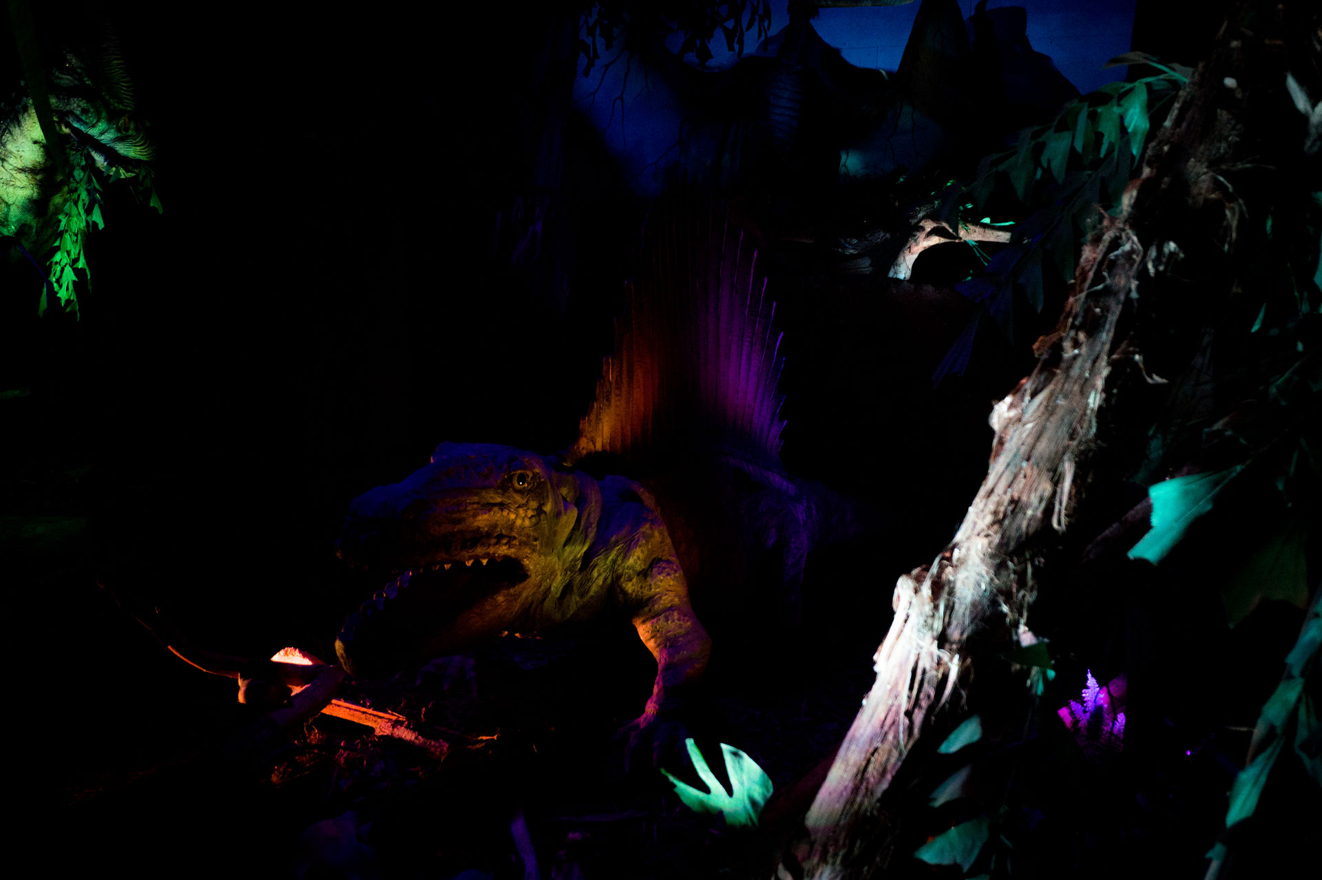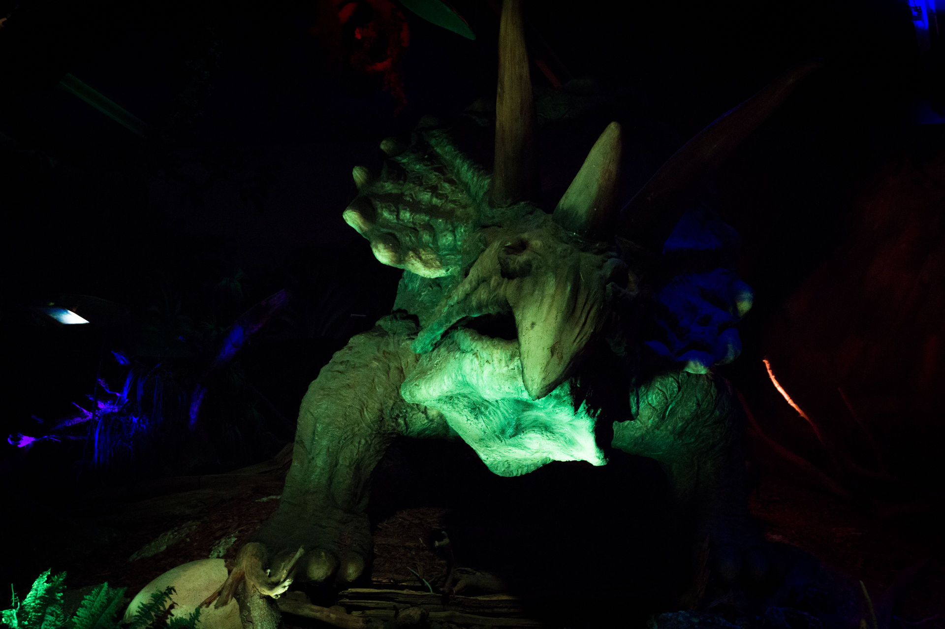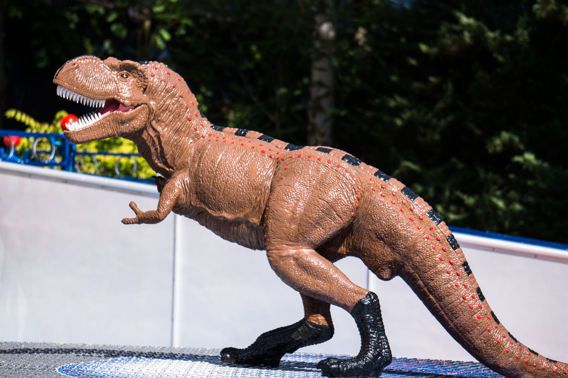 Gestalterisch wird der Freizeitpark hingegen dominiert von bereits ausgestorbenen Lebewesen. Neben einer Wegebahn im Dinosaurierlook und zahlreichen Figuren finden die Dinosaurier besonders in der T-Rex World ihre Geltung. Hierbei handelt es sich um eine kleine sehenswerte Ausstellung mit Animatroniks, welche gekonnt in Szene gesetzt wurden. Interessanter Weise konnte mich die Ausstellung hier mehr überzeugen als die geführte Ausstellung neueren Baujahrs Era T-Rex im portugiesischen Freizeitpark Zoomarine, trotz des deutlich geringeren Ausmaßes.
