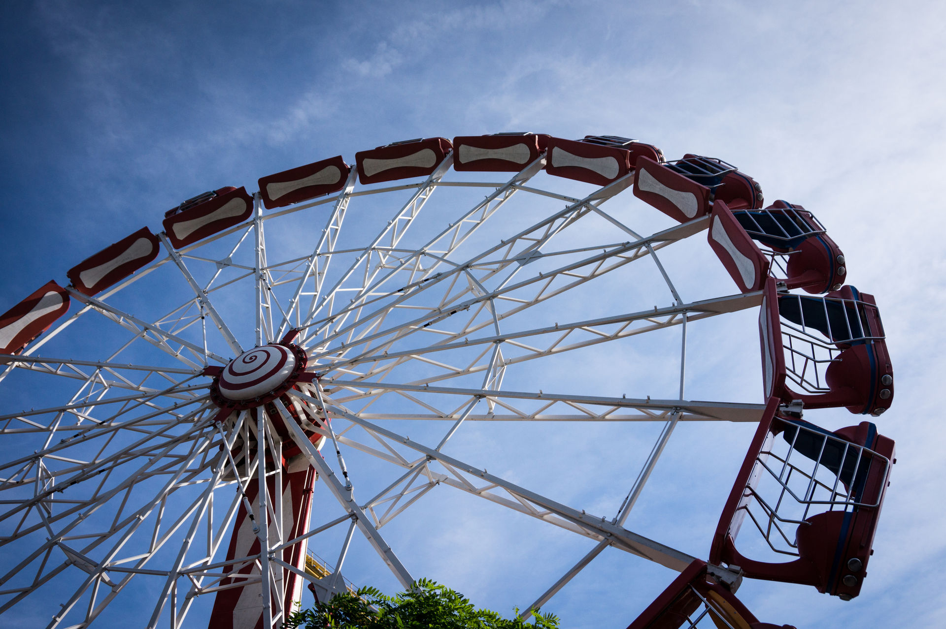 drehen die Wagen der Drehgondelbahn sich und ihre Runden.