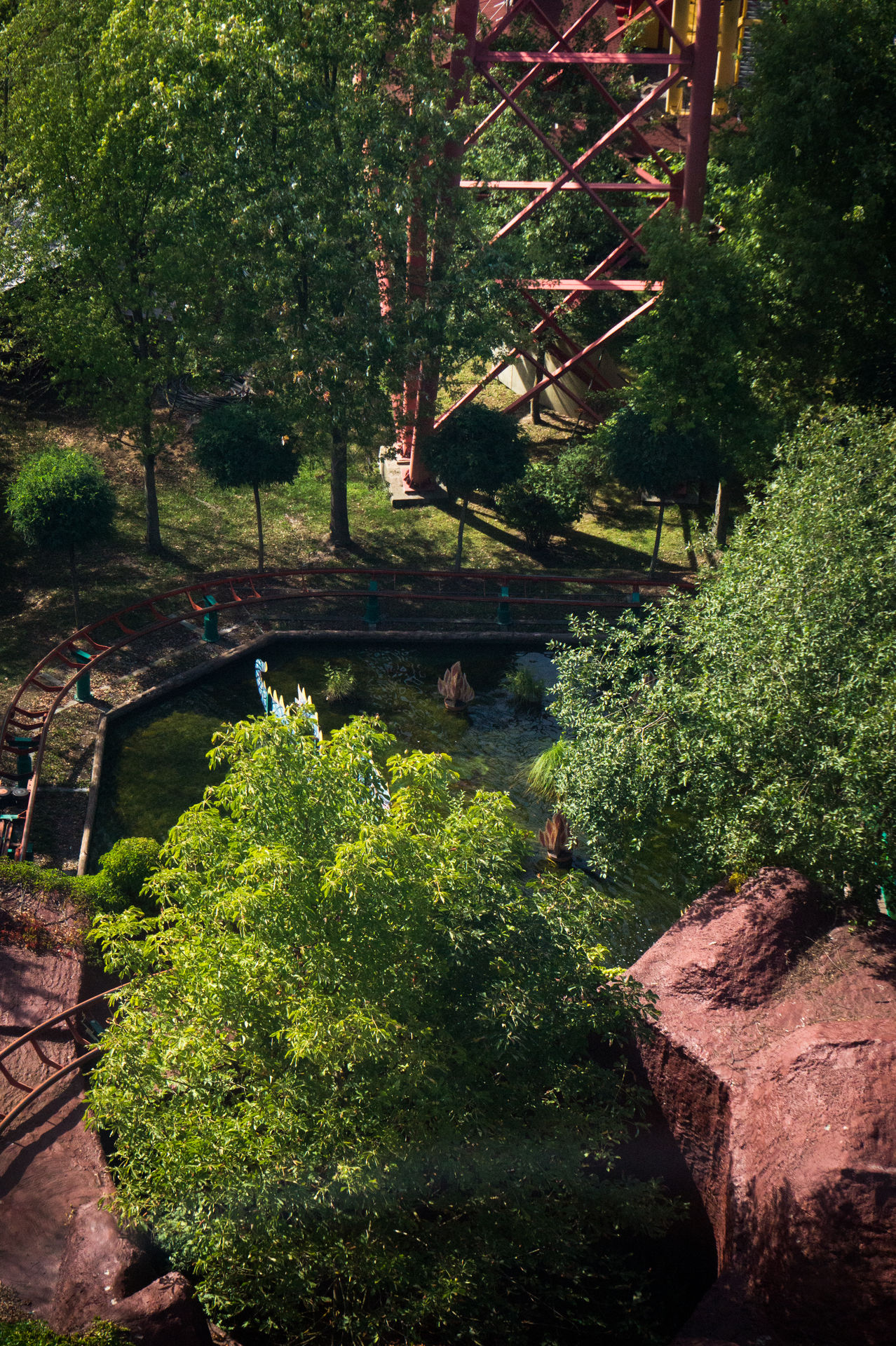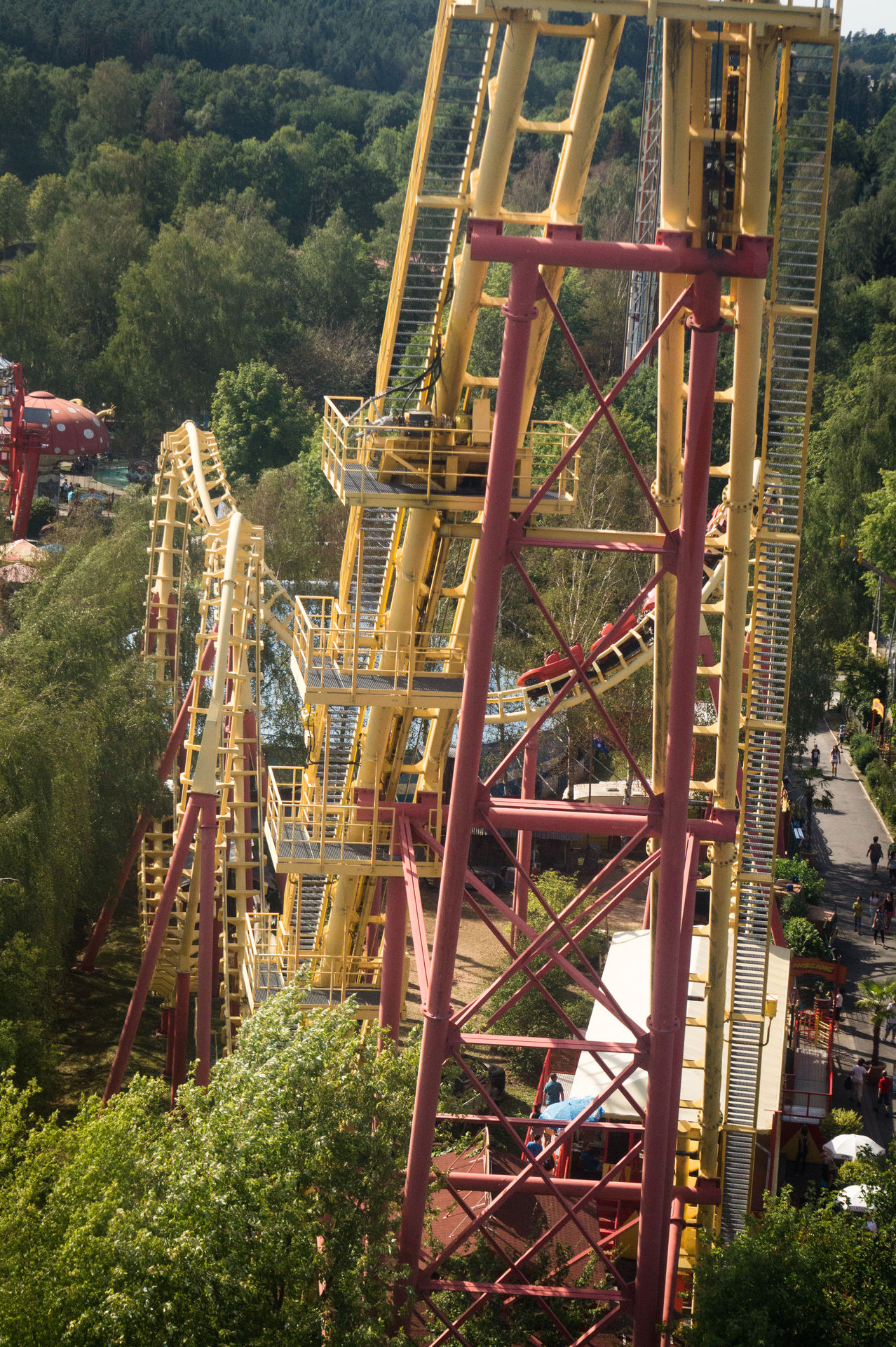 Recht unscheinbar und selbst von oben leicht zu übersehen steht mit der Drehgondelbahn ein wahres Unikat an Achterbahn in diesem Park. Hierbei handelt es sich um den einzigen