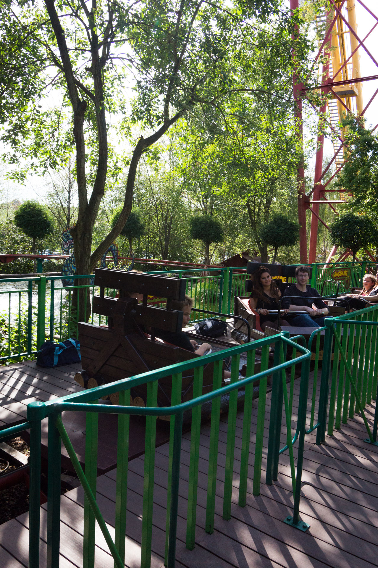 Nachdem der Einbaum die Station verlassen hat dümpelt man ein wenig durch die Fahrrinne entlang der Wartungshalle des Parks ehe es den ersten Lift empor geht. Oben angekommen absolviert man eine kleine Kurve hinter der Rückwand auf Rollen bis ein Reibrad das Boot in die erste Schussfahrt schiebt. Diese ist als doppeltes Gefälle ausgeführt und entlässt einen ein wenig angefeuchtet in den weiteren Streckenverlauf. Eine S-Kurve später geht es erneut hinauf und eine kleine Rechtskurve fügt sich an. Nun folgt die kleinste Abfahrt der Anlage und so schnell wie dieser kam, so schnell ist das Ende der Auslaufstrecke bereits erreicht und man vollzieht rasant eine weitere Rechtskurve. Nach einer etwas längeren Geraden sammelt das Boot zum letzten Mal an Höhenmetern an. Oben angekommen wiederholt sich das Spiel wie vor der ersten Abfahrt, doch nun folgt eine hohe Schussfahrt ohne Unterbrechungen. Unten angekommen wird man ordentlich befeuchtet just bevor es die restliche Strecke in Richtung der Station geht. Durch ausgeklügelte Technik, die mir bei der Anlage tatsächlich zum ersten Mal aufgefallen ist, werden die Boote kurz angehalten und sanft auf das Förderband der Station gelegt ohne dabei gegen die anderen Boote zu knallen.
