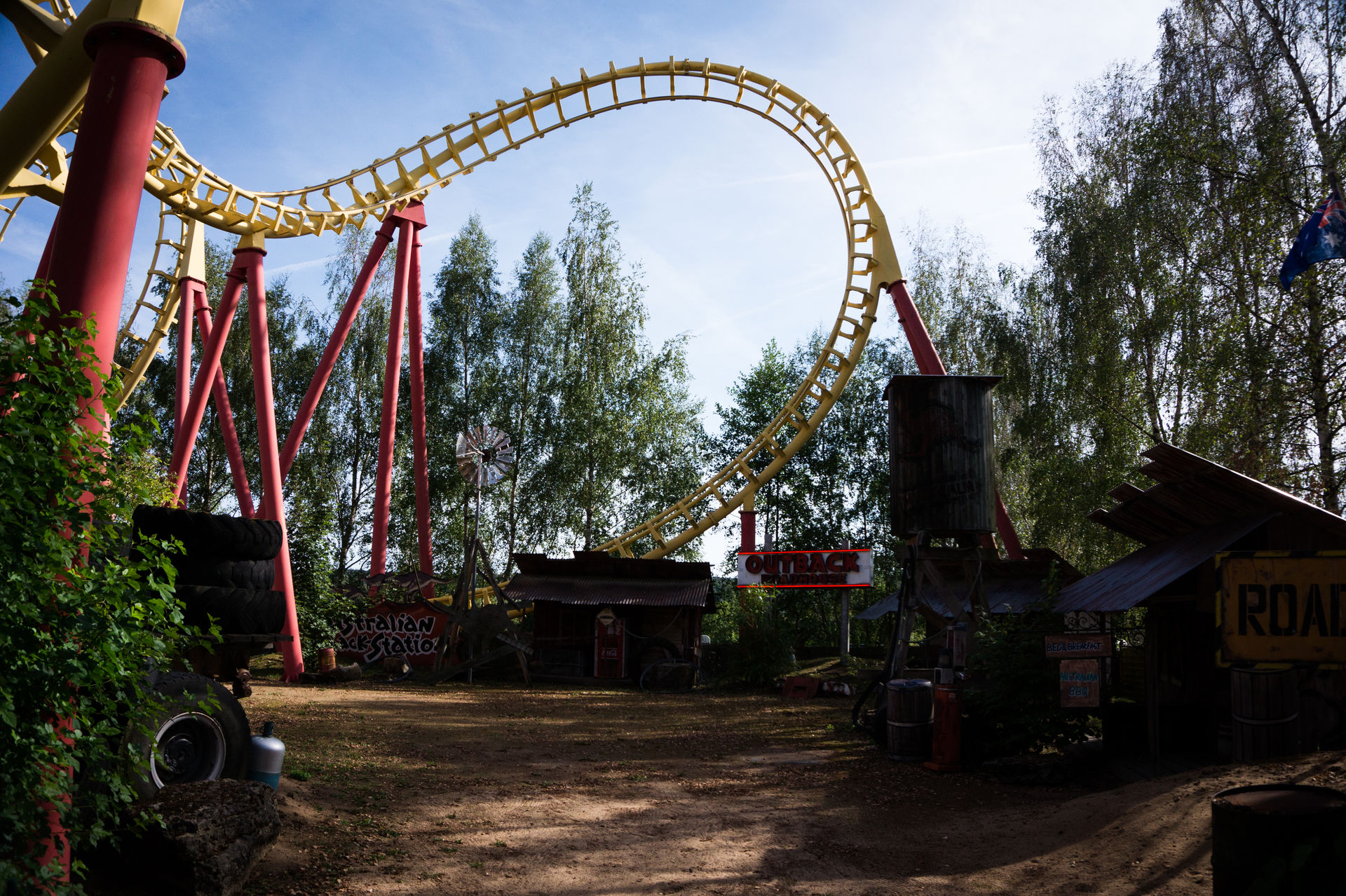 Vekoma Boomerang. Obwohl dieser von außen relativ normal wirkt handelt es sich hierbei um eine aufwändig gestaltete Anlage im australischen Stil, inklusive der namensgebenden Wurfwaffe. Der Zugang erfolgt bei dieser Anlage um den Maschinenraum herum, woraufhin man sich direkt in der Station befindet. Diese vibriert bei Durchfahrt des Zuges im Vergleich zu ähnlichen Anlagen kaum, weswegen interessanterweise Fernseher die Station zieren.