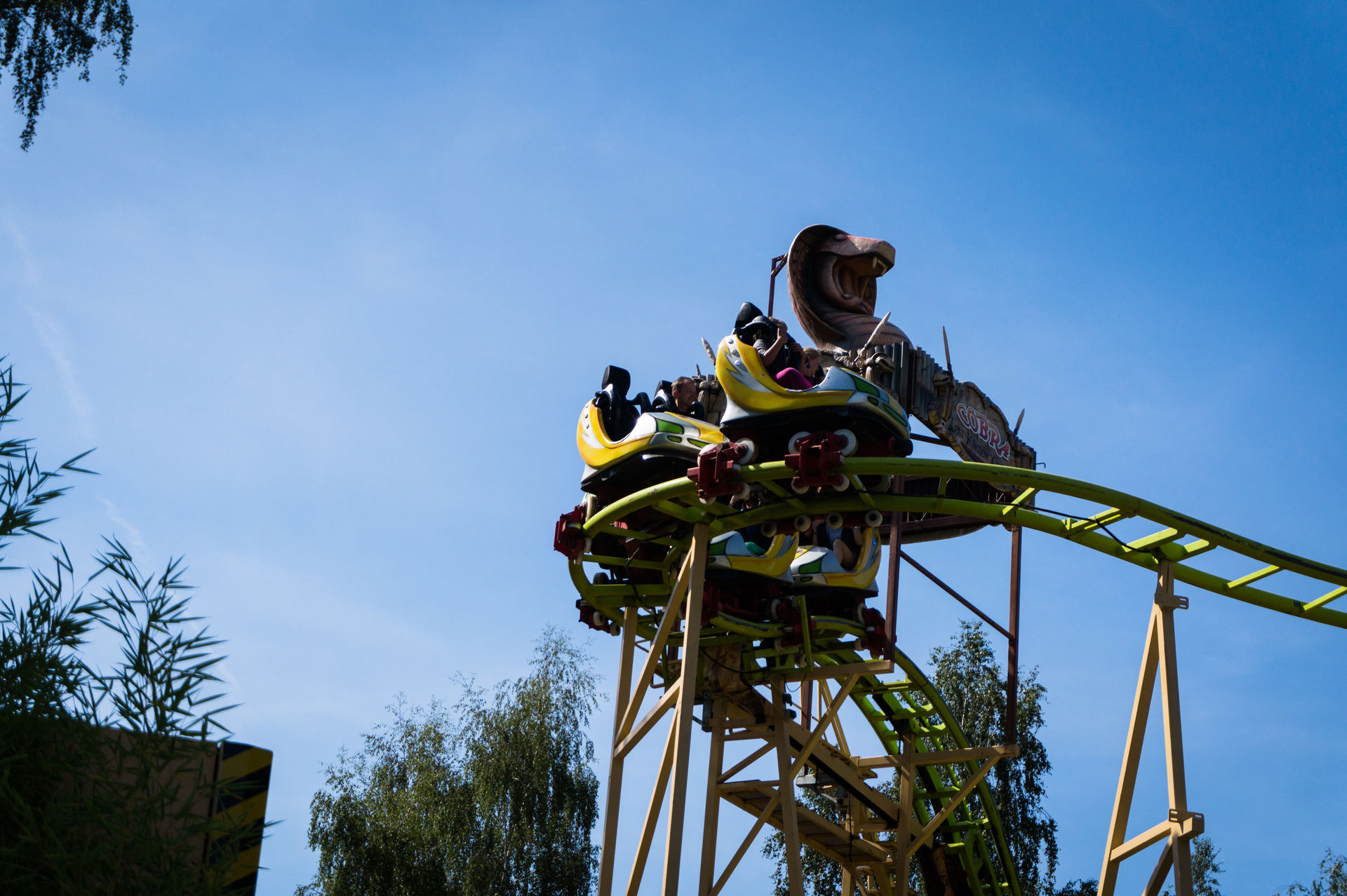 Mit voller Geschwindigkeit geht es auf dem Hinweg hinein in die Cobra Roll