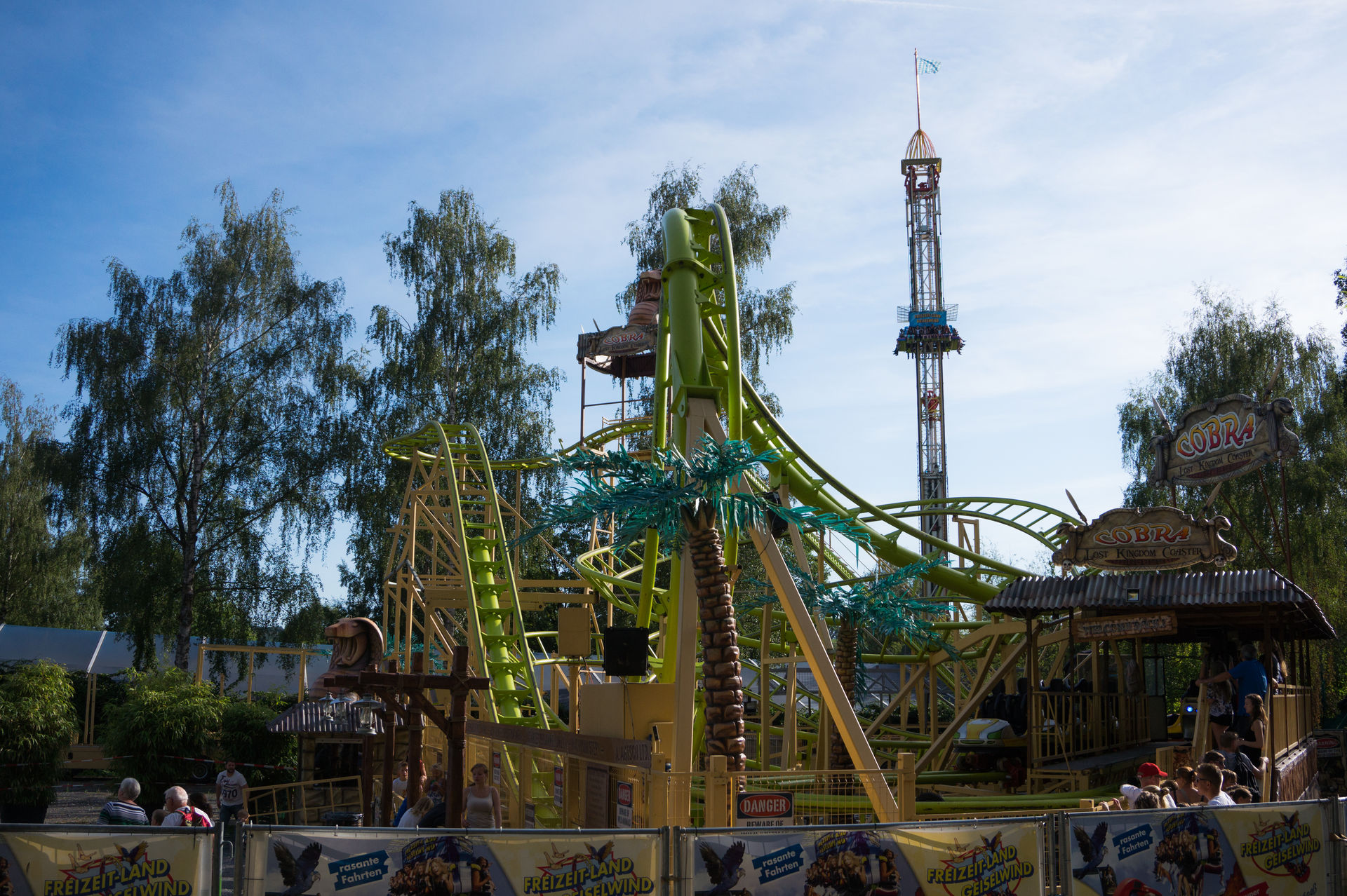 In einer Flucht mit dem Aussichtsturm Top of the World und der Drehgondelbahn steht die größte Achterbahn Geiselwinds, ein