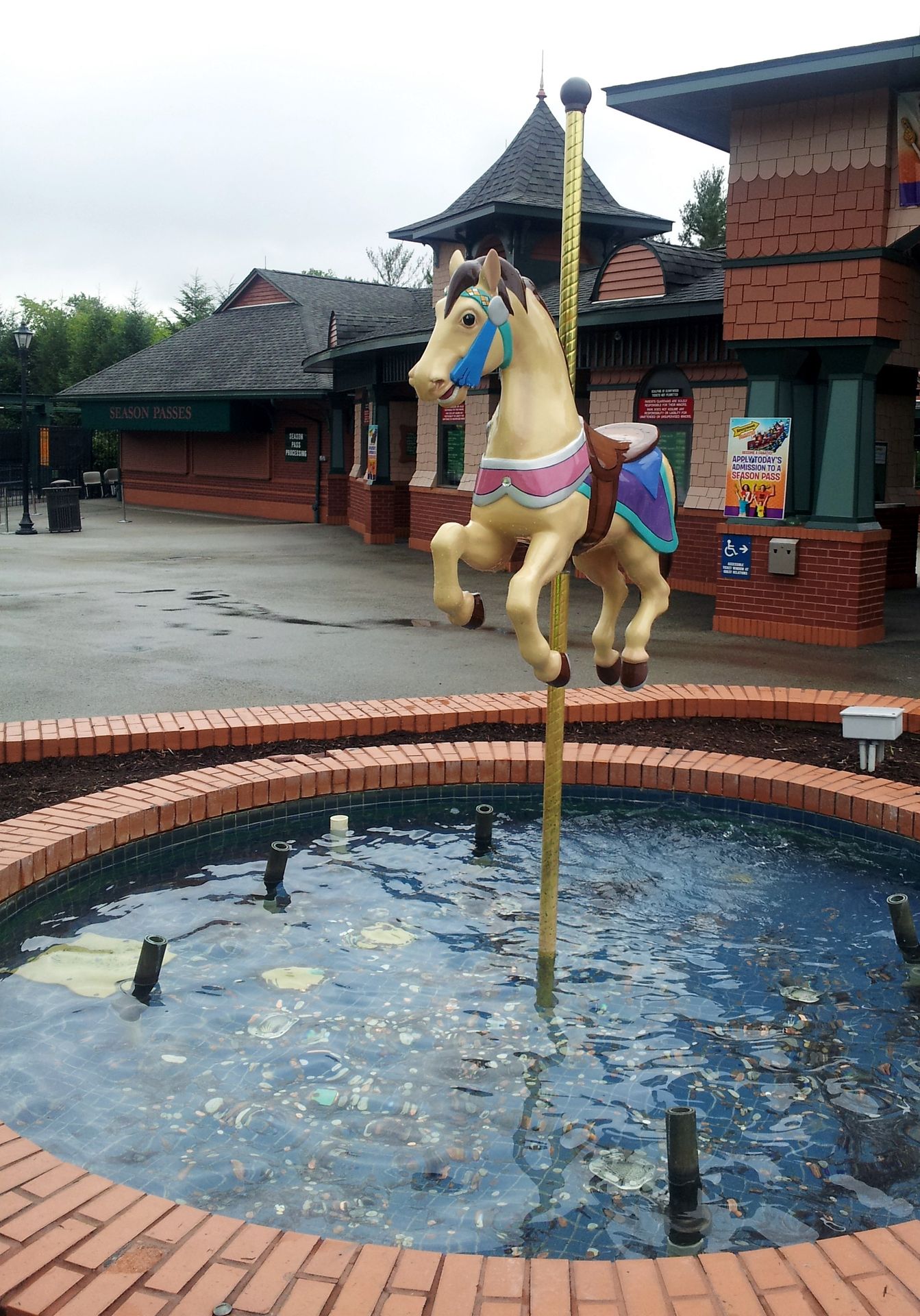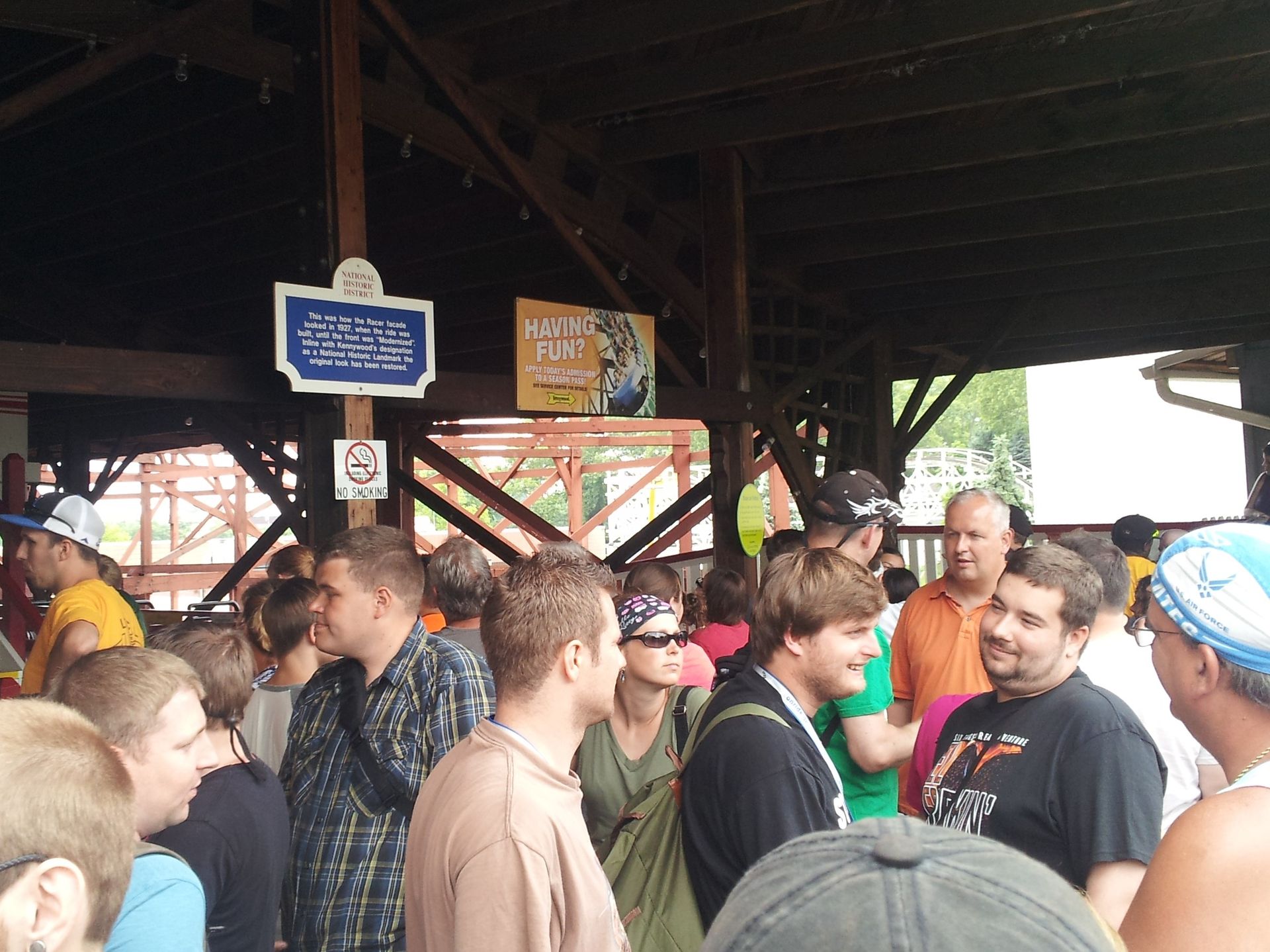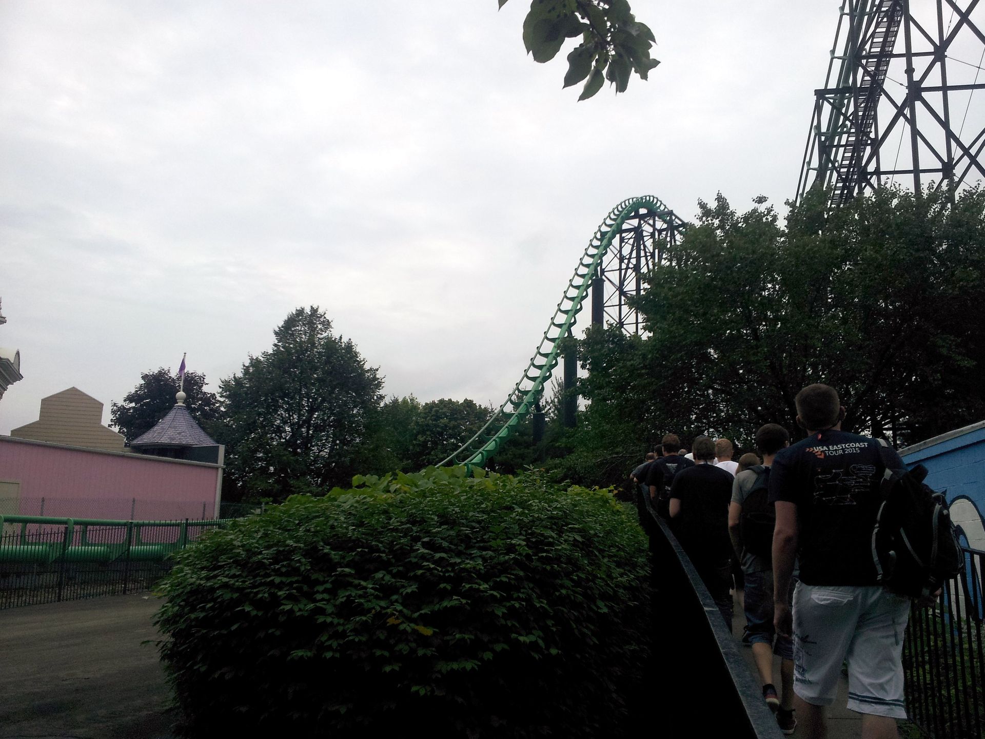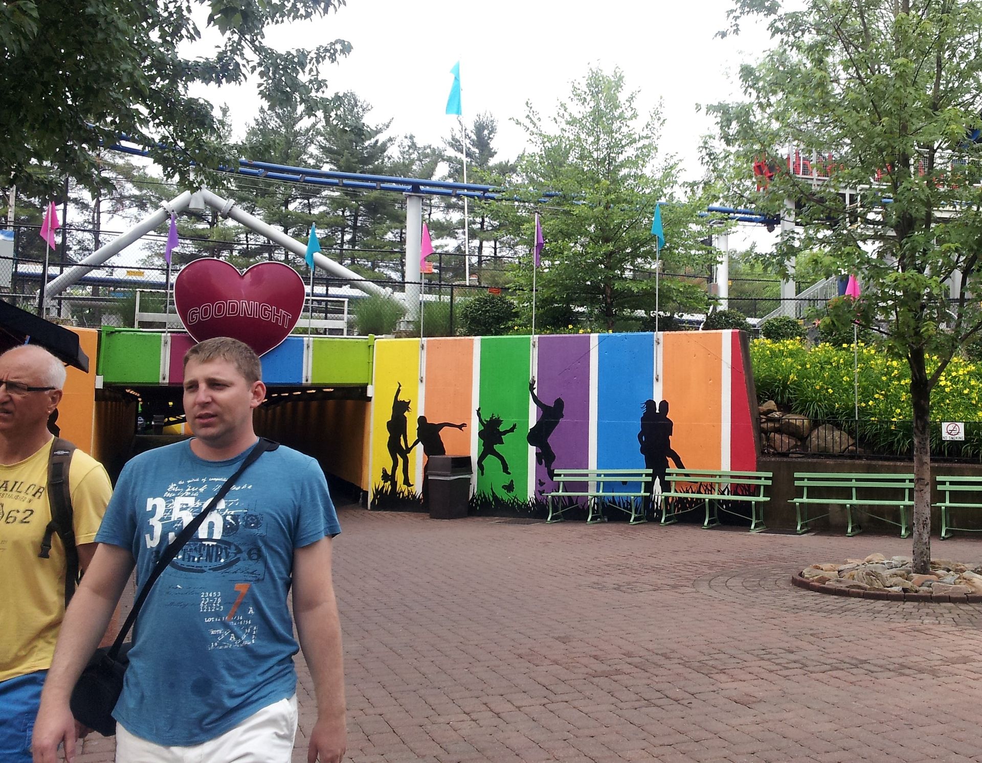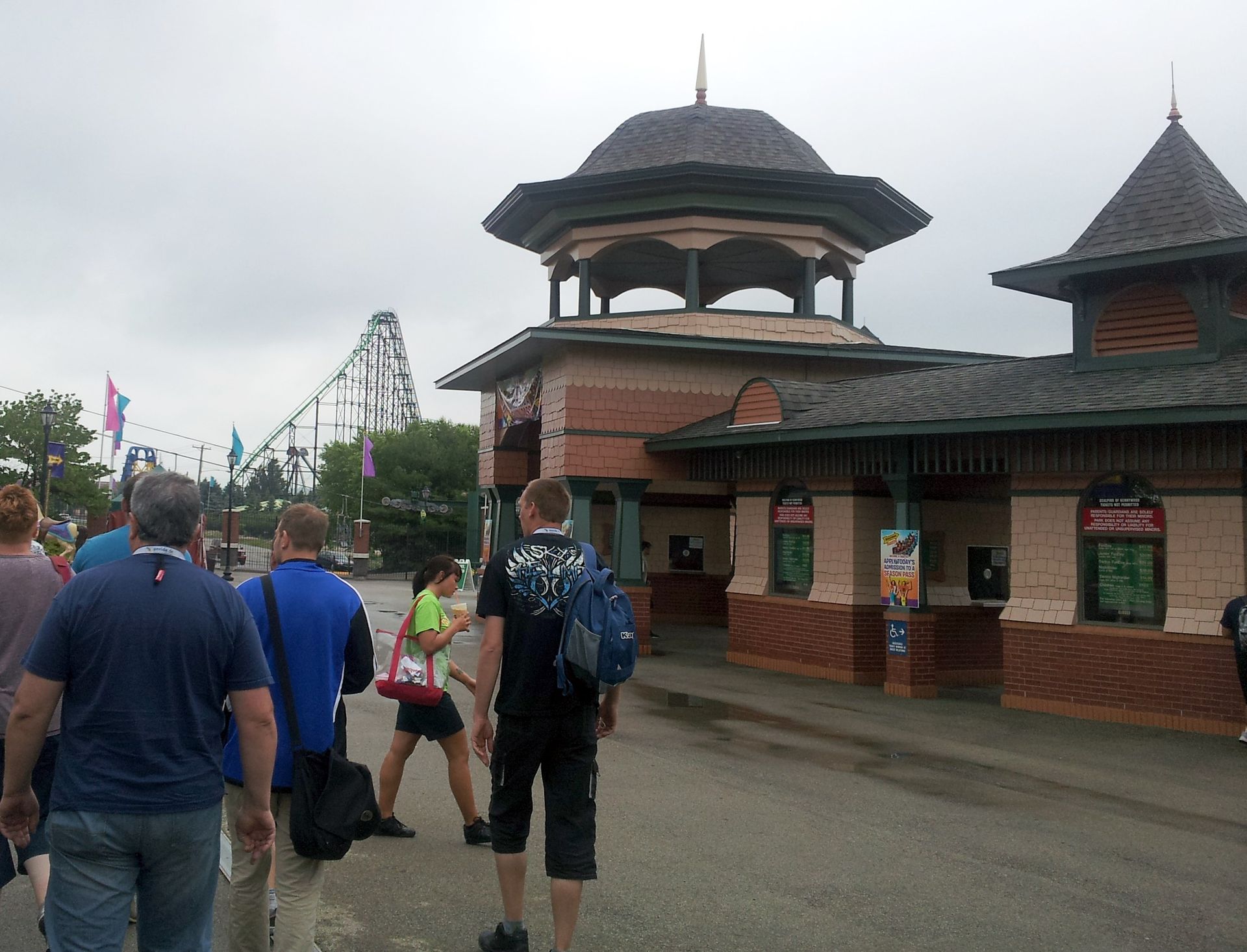 Wie gewohnt dauerte es nun etwas, bis sich endlich die Tore öffneten und wir die obligatorische Taschenkontrolle hinter uns bringen konnten. Die befindet sich übrigens wie der gesamte Eingangsbereich und die Parkplätze südwestlich des Kennywood Boulevard, während sich der Park selbst nordöstlich davon befindet. Nachdem wir uns also auf dem großen Platz hinter dem Eingang versammelt hatten, ging es gemeinsam durch die Unterführung zur bereits angekündigten ERT.
