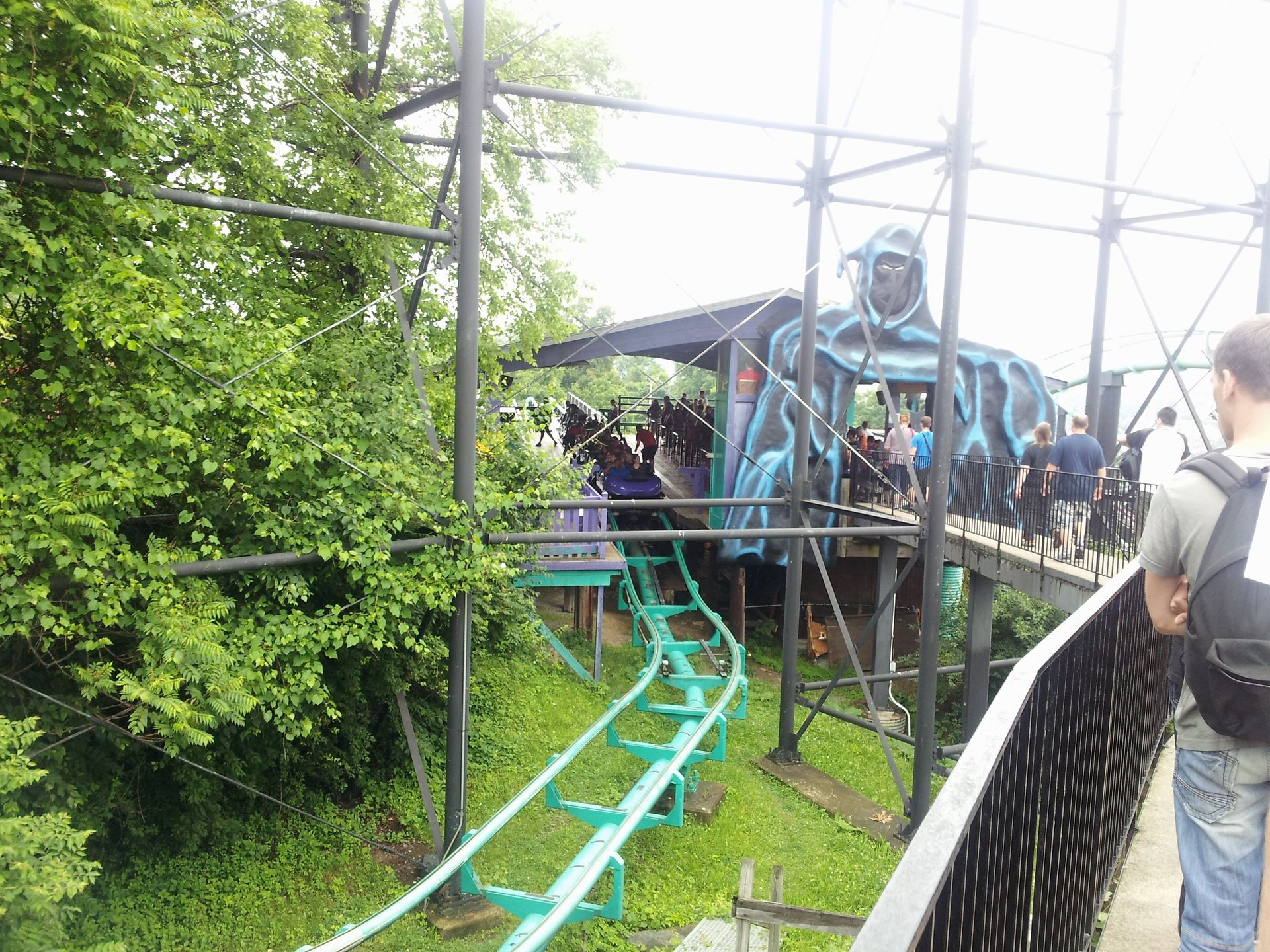 Airtime sorgt. Zumal es bei den Zügen lediglich eine feste Metallstange gibt, die zwar das Ein- und Aussteigen erschwert, aber aus meiner Sicht nicht wirklich als Sicherungsbügel taugt. Gehalten wird man da eher von den Gurten. Das war dann allerdings auch schon so ziemlich das Highlight der Bahn, denn nach der letzten Wende geht es noch ein viertes Mal durch die Schlucht und dann direkt in die Schlussbremse.