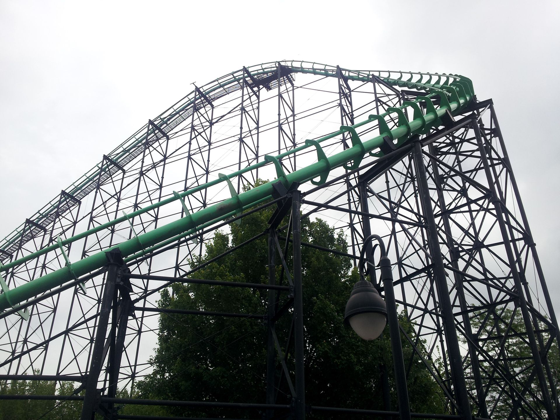 Übrigens kann Phantom's Revenge auch langsam. Während wir auf unsere Fahrt warteten, hatte man nämlich damit begonnen, den zweiten Zug auf das Transfergleis zu ziehen. Die Seilwinde ist dabei so lahm, dass man kaum eine Bewegung erkennen konnte. Als wir nach drei oder vier Fahrten an der Reihe waren, war vielleicht die Hälfte des zweiten Zuges auf dem Transfergleis...