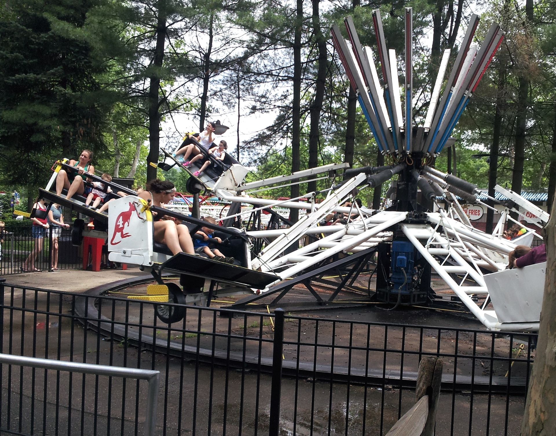 Seit 1927 gibt es diesen Flatride in Kennywood. Weltweit sind nur noch zwei davon im Einsatz. Zumindest von diesen großen, denn wer sich an den Hershey-Bericht erinnert, dem dürfte ein ähnliches Fahrgeschäft im Mini-Format noch bekannt sein.