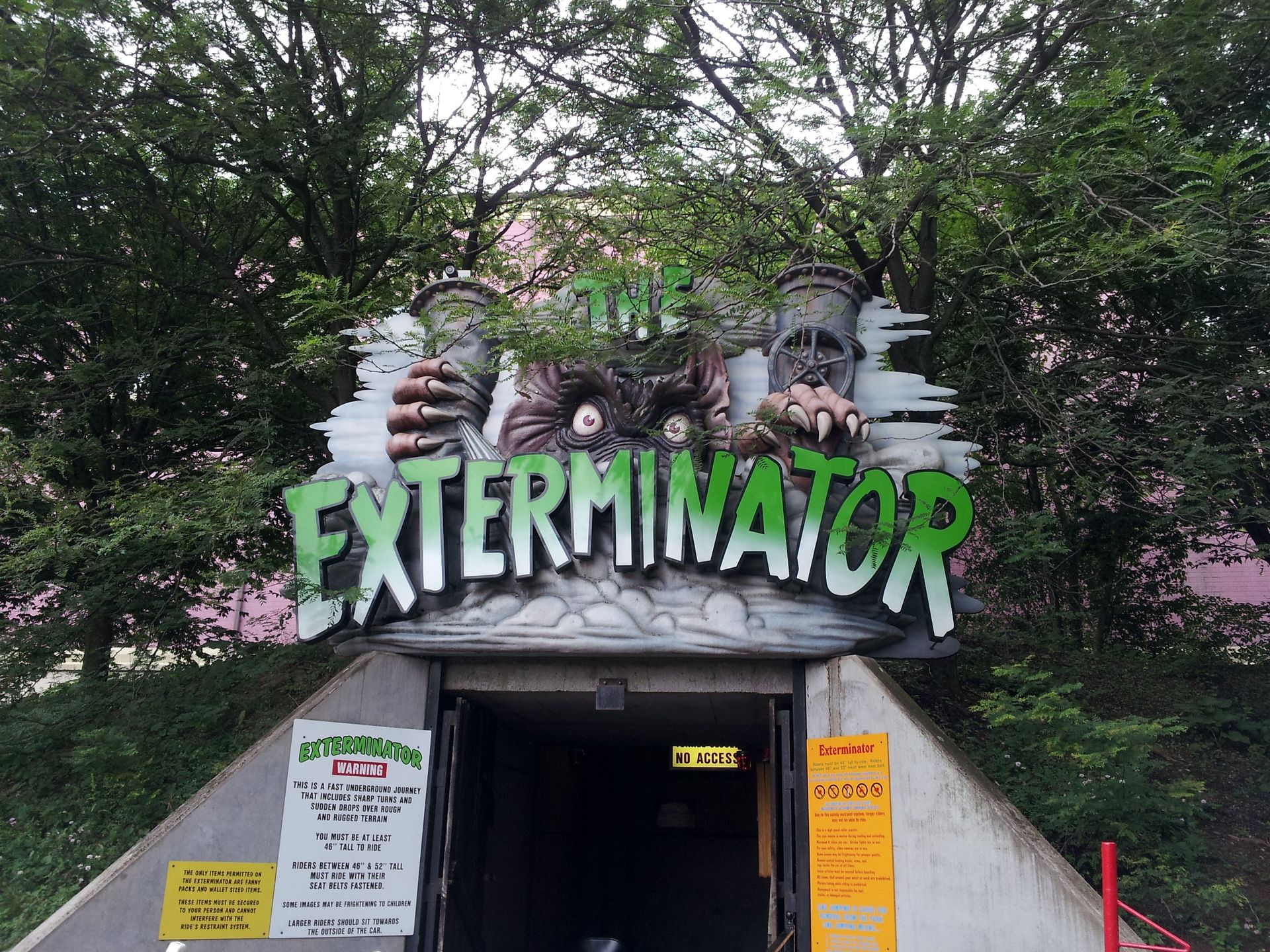 Tatsächlich war die Fahrt besser als erwartet. Weit entfernt von rough, dafür aber mit einem ordentlichen Drehwurm. Und es gibt sogar ganz ansehnliches Theming während der Fahrt. Exterminator war für mich jedenfalls der beste