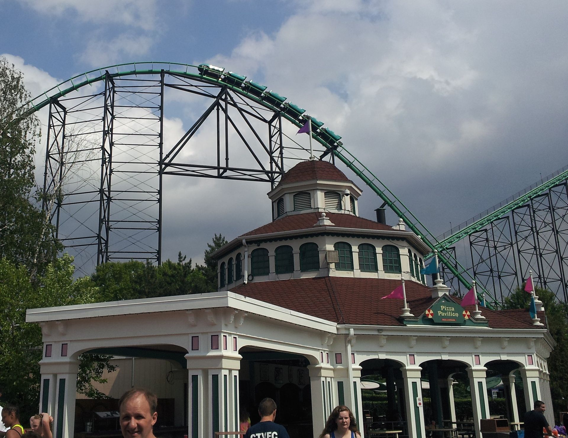S&S Schaukel, der Rest wartete am Fuße des First Drops von Phantom's Revenge.