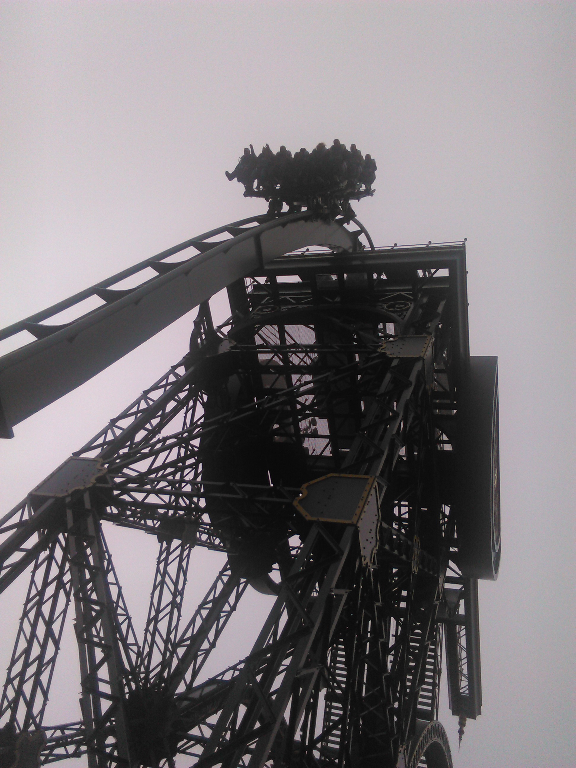 Angeschnallt geht es auch zügig in den ersten Bereich vor dem Lifthill. Hier stoppt der Zug und man sieht die weißen frauen als Illuminationen um die Hochöfen wie Geister schwirren. by the way - vor den weissen Frau wurde zuvor im Preshowraum gewarnt. Und dann geht es auch schon flott bis zur Spitze Turms. Der