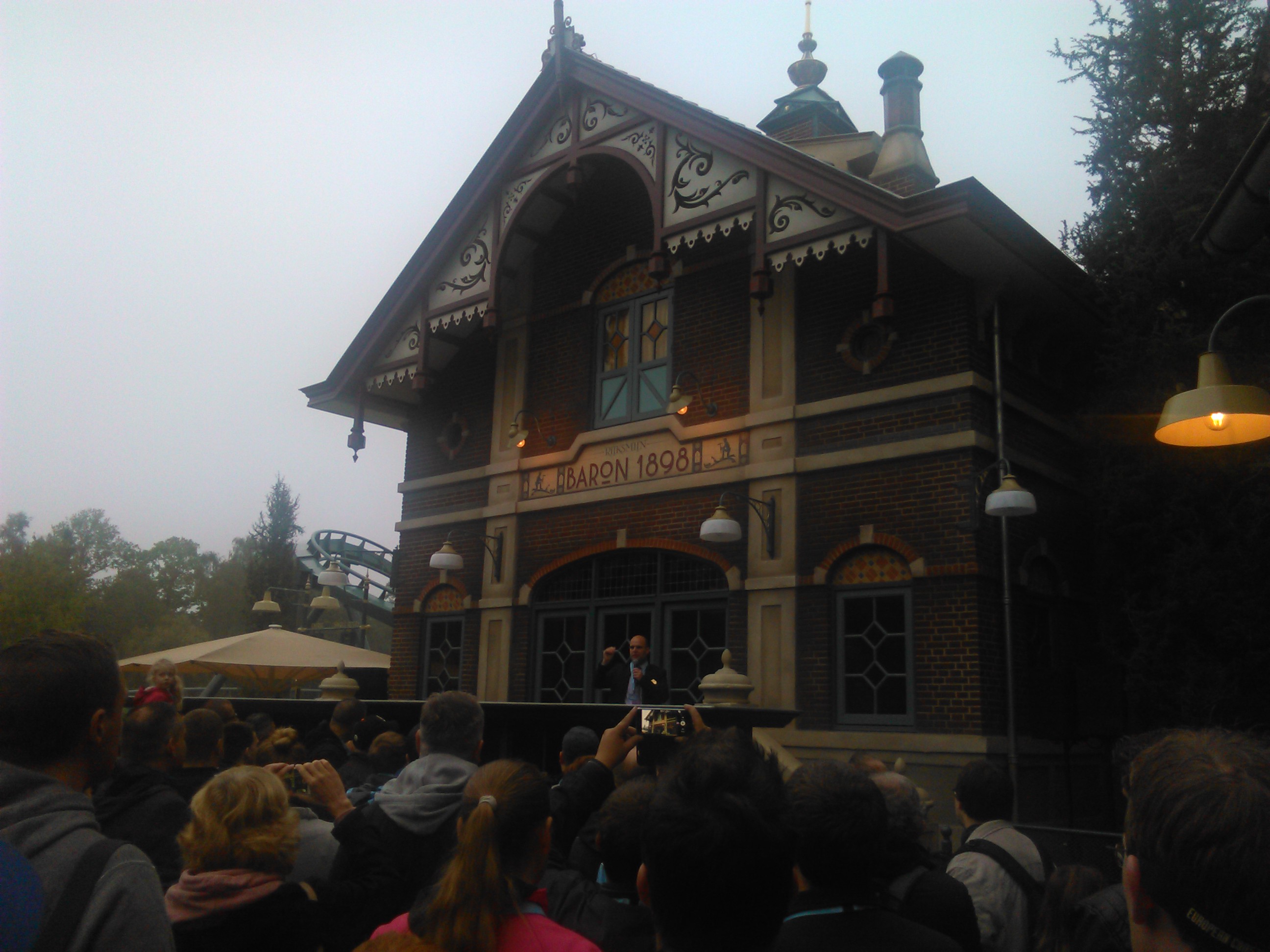 Anschließend begann ein Tag der vielen Schritte. Durch den geschlossenen Park ging es zur neuen Attraktion Baron 1989. Hier gab es eine kurze Ansprache von einem Efteling-Exekutiven. Man freue sich als gastgebender Park so viele Enthusiasten begrüßen zu dürfen, man ist stolz die Neuheit des Jahres einem "Fachpublikum" exklusiv zu zeigen, man sei traurig über den Tod eines kreativen Mitarbeiters in den vorangegangenen Tagen und man gelobt ihm zu Ehren auch die Fantasiewelt vom "alten" Efteling beizubehalten. Den Teilnehmern wünscht er viel Vergnügen und verweist auf das Achterbahnportfolio von Efteling: Da gäbe es neben der Neuheit Baron 1898 noch die Python 1981 (den Multilopper), den Fliegenden Holländer (die