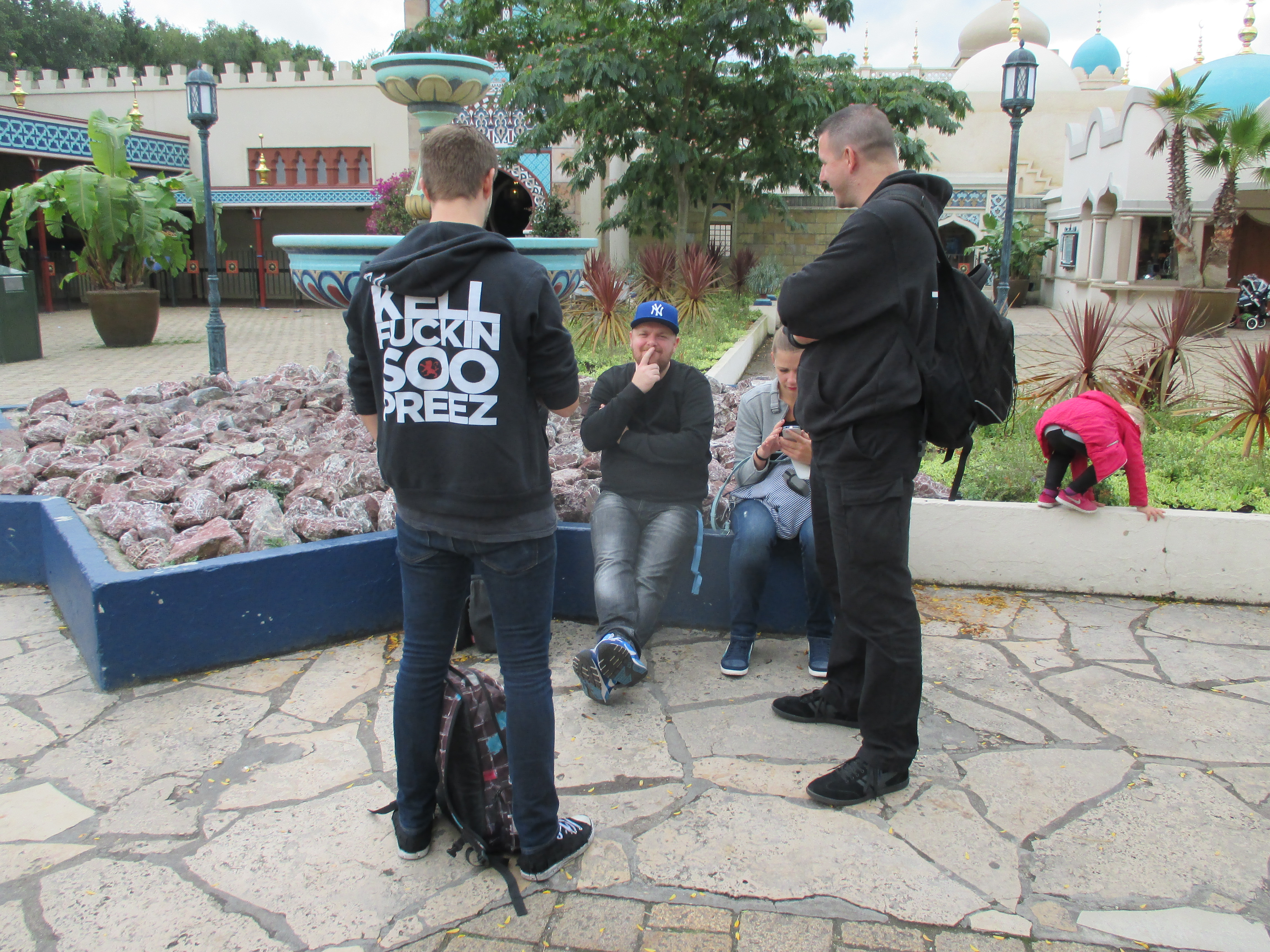Gefühlt eine Stunde und viel Gossip später ging es dann im Hellen (oder aufklarendem Nebel) in den Park. Erste Station: Gruppenfoto.