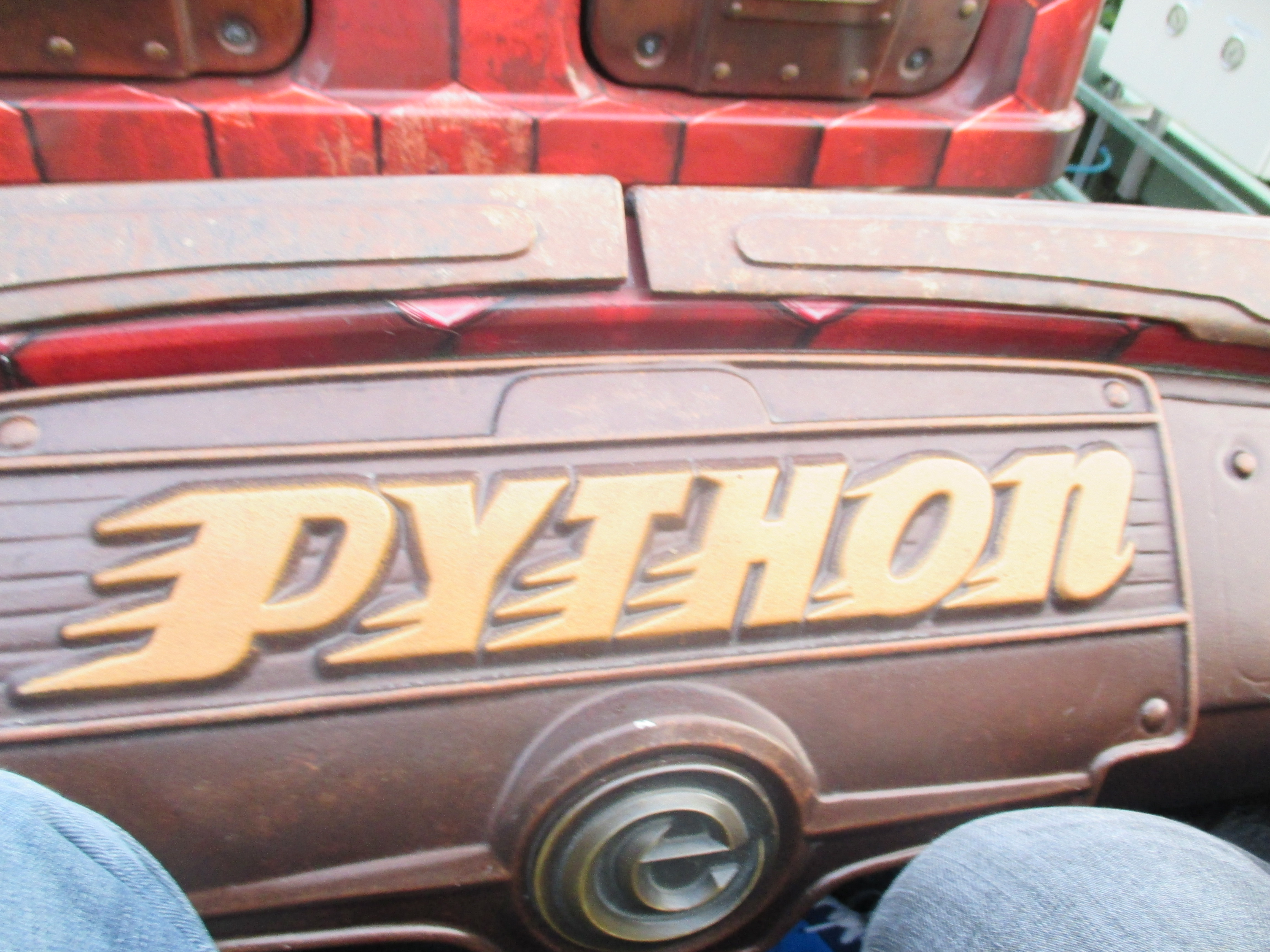 Nach der Ankunft in der Station trennt sich meine alternde Wenigkeit von der jüngeren Generation, die dann doch noch mal auf die freiwerdenden Plätze sich verteilt, um ein drittes mal zu fahren. Wir sind wohl die Reste vom Mob, der sich schon wieter Richtung Frühstück in Nähe der Python-Gestronomie bewegt hat. Vor dem Baron sammeln sich nun auch schon die normalen Parkbesucher, da der Freizeitpark nun offiziell geöffnet hat und die ersten Besucher in Scharen sich bei der Neuheit einfinden.