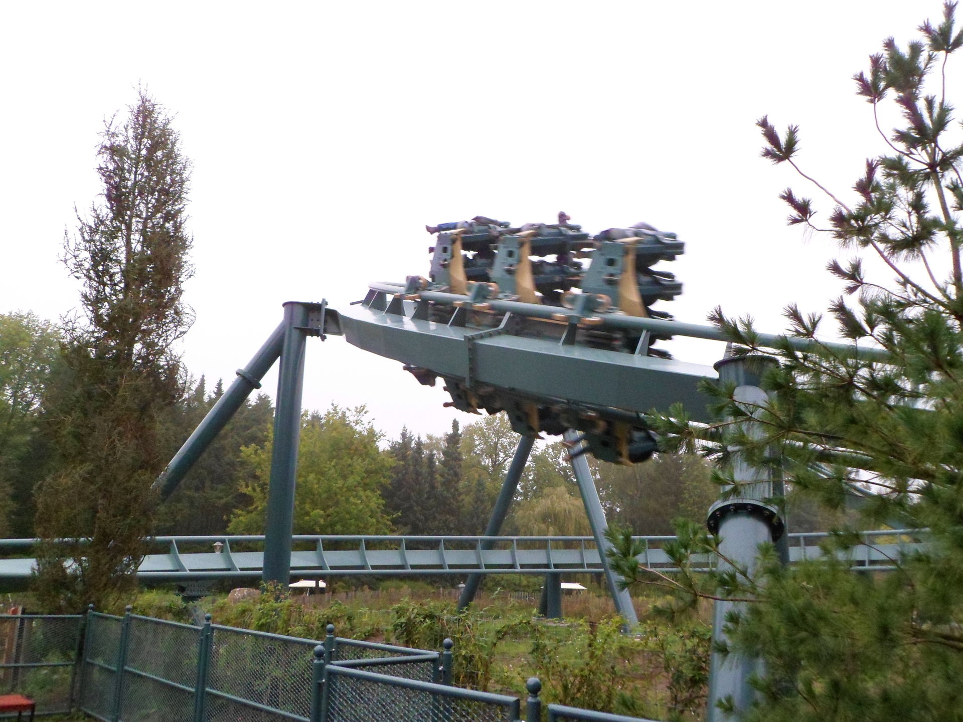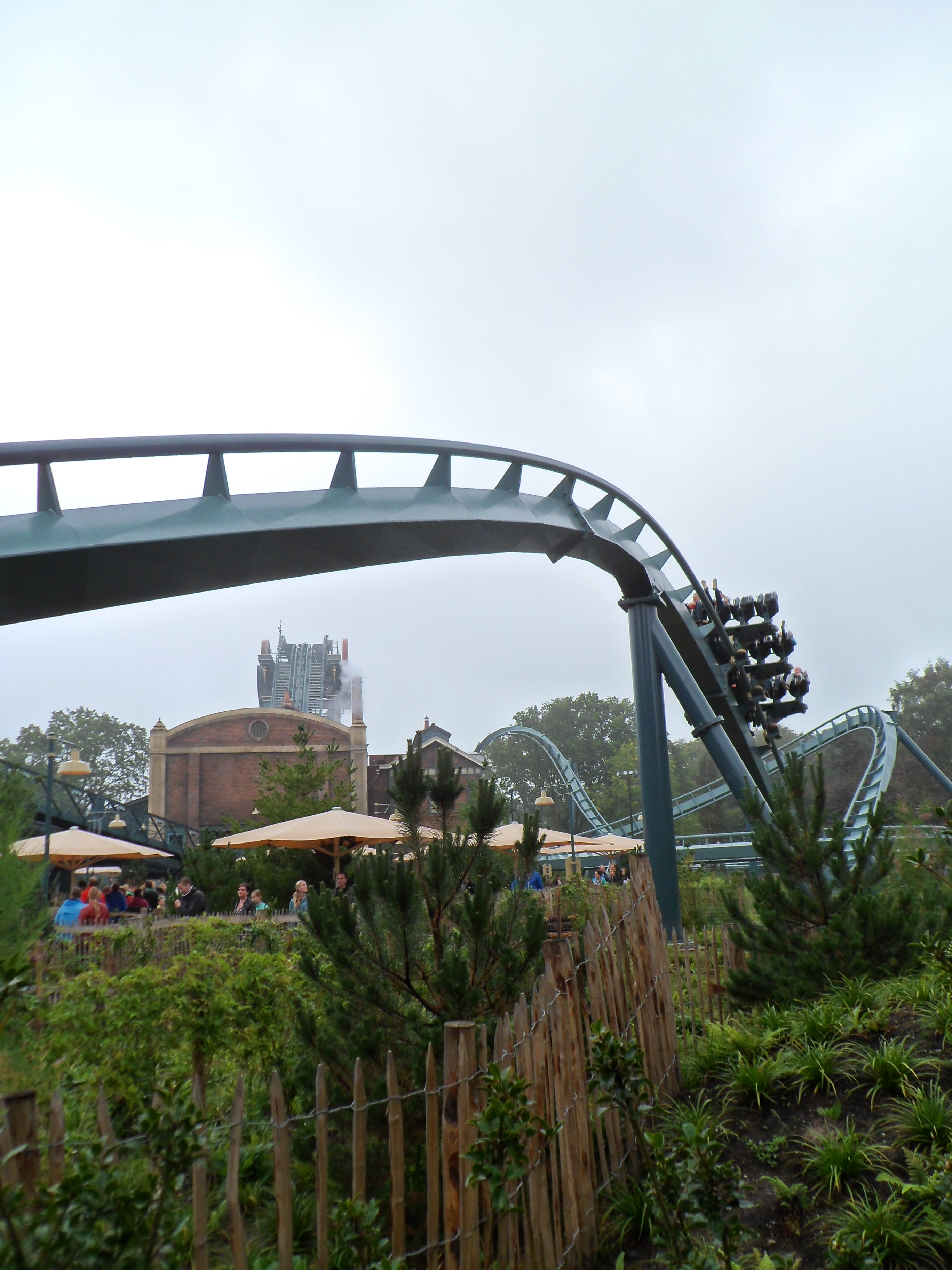 Dann strömten die Massen zum Ausgang und für uns ging es zum Ruigrijk, denn dort erwarteten und noch ERTs auf Python, dem fliegenden Holländer und Joris en de Draag. Hatten wir am Morgen in der ERT lediglich zwei Fahrten geschafft wurde am Abend die Gruppe so entzerrt, dass Sitzenbleiben nicht selten war. Vor allem auf Joris hat die ERT extrem viel Spaß gemacht, denn der Wettlauf zwischen den Zügen wurde sehr ernst genommen. Entsprechend erklärte man schon auf dem Lifthill den anderen Zug zum Verlierer und freute sich wenn man im Ziel die eigene Fahne zu sehen bekam. Das Ergebnis war teilweise so knapp, dass man es aus den hinteren Reihen nicht deutlich erkennen konnte und bis zur Siegerfahne warten musste. Der Gewinnerzug wurde beschimpft, der Verliererzug wurde gedisst und schon ging es in den nächsten Wettlauf. Ein riesiger Spaß in drei Sprachen.