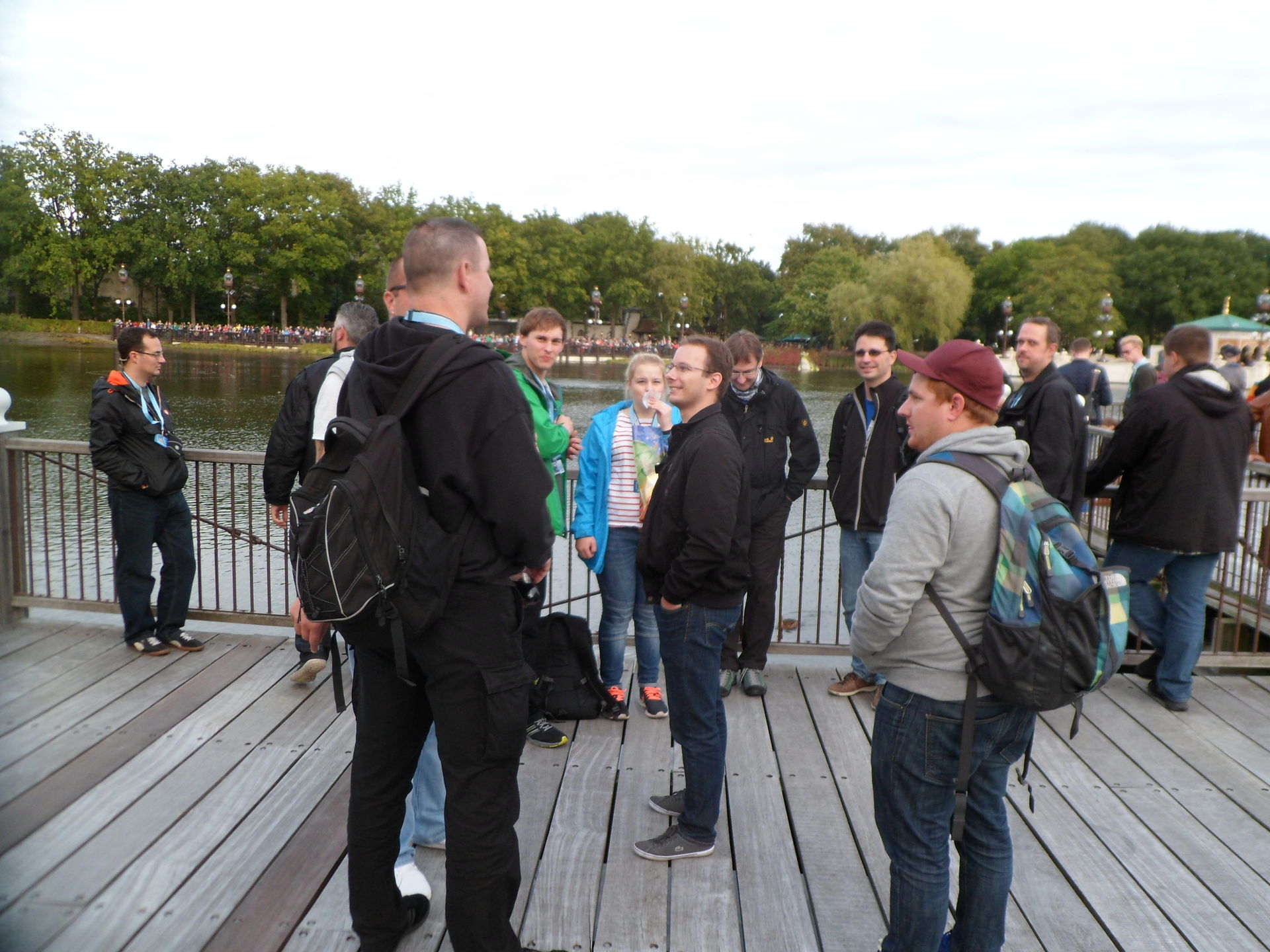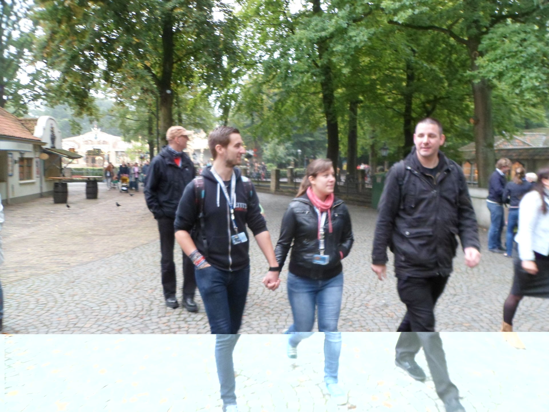 Irgendwann nach acht Uhr durften wir endlich in den Park und versammelten uns am Theater zum Gruppenfoto. Eine der jetzt-hätte-ich-fast-Hostessen-gesagt kam auf unsere Gruppe zu und fragte woher wir kommen. Ah... Deutschland... dann kommt mal mit und hockt euch hier so hin. Ja, genau... runter auf die Knie. Ist gut, wir haben verstanden. War auch gar nicht anstrengend oder unangenehm da zu hocken bis endlich alle Bilder geknipst wurden. Ähm, war es doch.