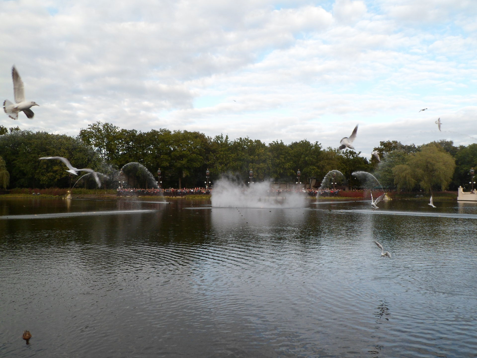 Weil die Klamotten noch nass waren, wollten wir sie in warmer Umgebung trocken fahren und gingen nochmal zum Vogelrok und im Anschluss zur Schiffschaukel. Leider haben wir dadurch die Auktion verpasst. Haben es aber pünktlich zu Aquanura geschafft, wo für uns eine Tribüne reserviert war. Ich kannte Aquanura noch nicht und fand es sehr hübsch aber auch ein wenig schade, dass die Lichteffekte nicht erkennbar waren.