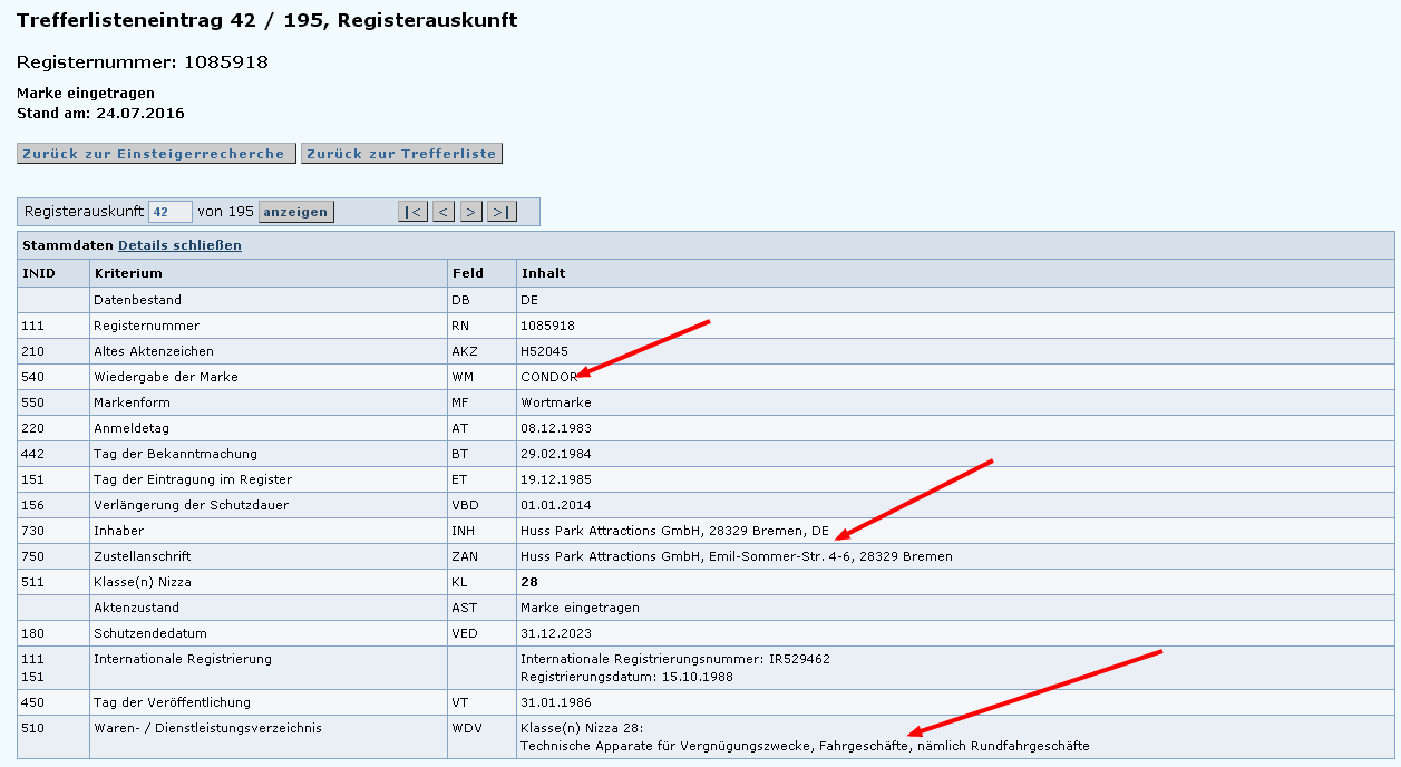 "Condor" nicht, aber "CONDOR" ist durch die Firma Huss Park Attractions GmbH in Bremen geschützt.