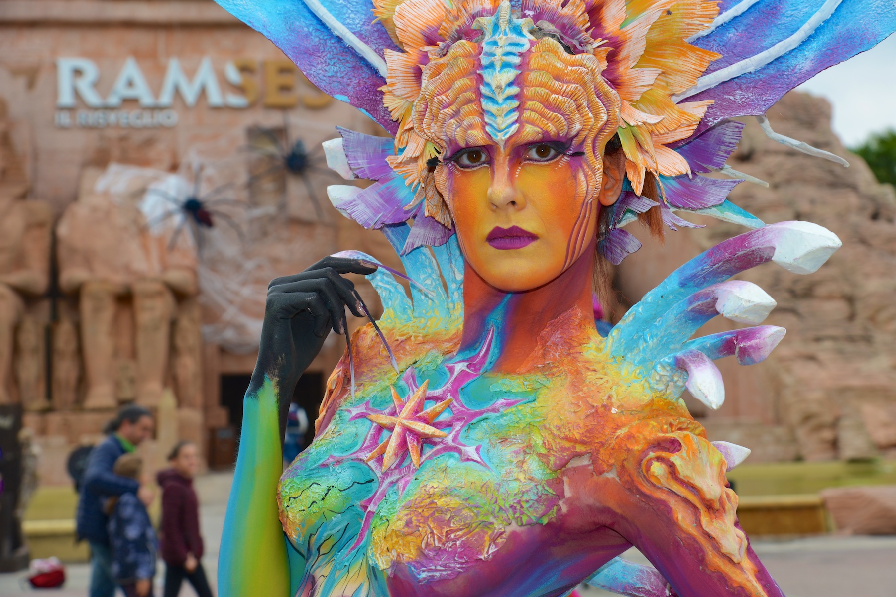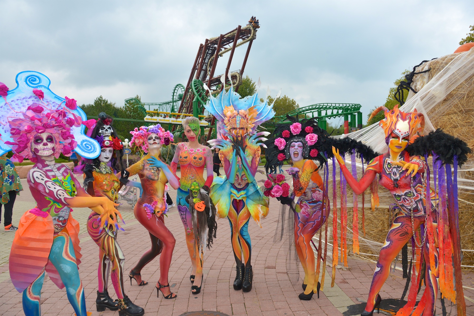 Ein Farbrausch in perfektem Halloween Multicolor Stil überraschte die Besucher von Gardaland Magic Halloween: Die Models der italienischen Body Painting Champions standen heute seit 4.00 Uhr früh in Pose und wurden von den Malkünstlern in echte Meisterwerke verwandelt, zur allgemeinen Überraschung und Bewunderung der Gäste, brachten Farbe und Glanz als Auftakt in einen eher grauen , doch nicht regnerischen Tag, wie er von der Wettervorhersage angekündigt war.