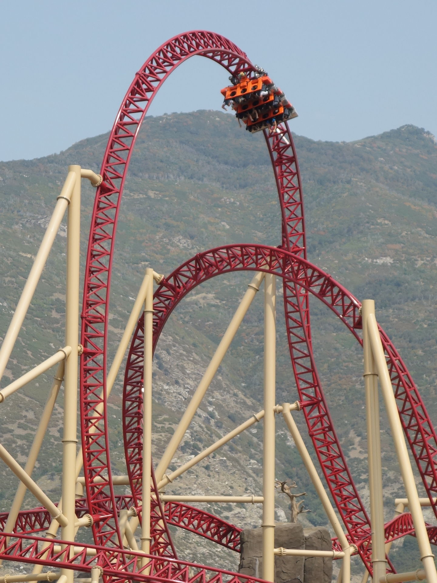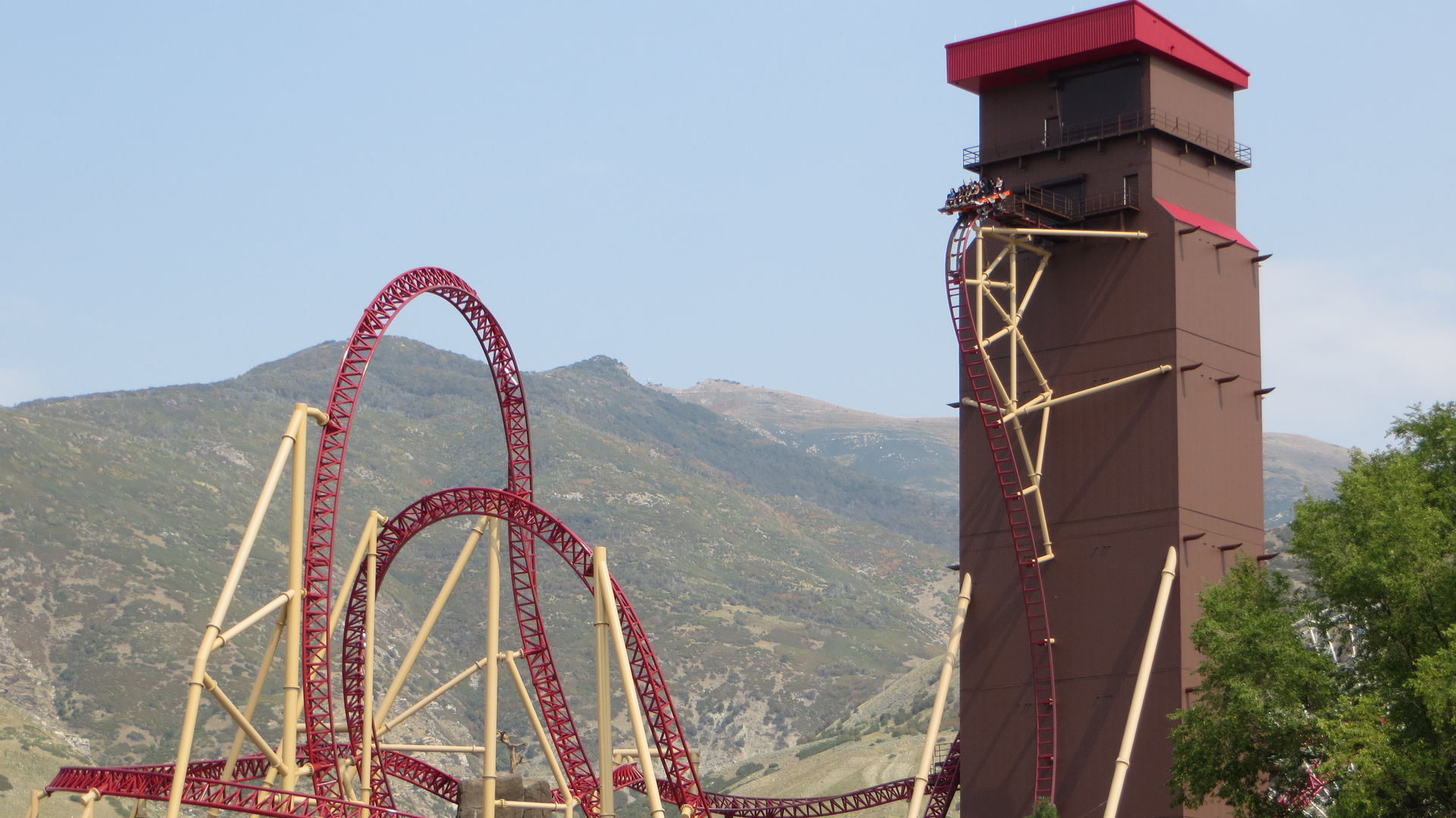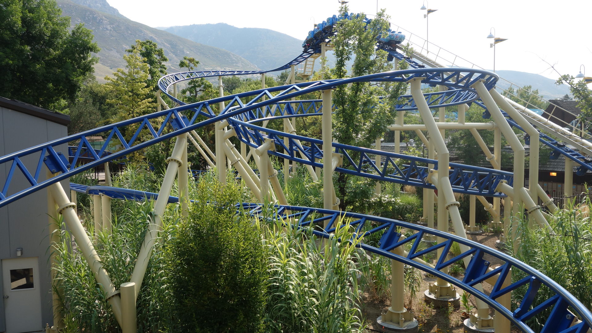 Niedergeschlagen ob der verwehrten Gelegenheit für die kommenden drei Wochen eine Symbiose aus Mensch und Maschine mit einem nagelneuen Jeep Cherokee eingehen zu können, steuerten wir in unserem koreanischen Kackauto, aus offensichtlich selbstironischen Gründen im weiteren nur noch Fury genannt, auf etwas zu, das von außen betrachtet durchaus vielversprechend aussah: Die mit insgesamt zehn Achterbahnen aufgestockte Skyline von Lagoon nördlich von Salt Lake City. Lagoon ist ein Park, der nie auf meiner Bucket List stand und selbst mit der Eröffnung von Cannibal hat sich das nicht geändert. So war der einzige Grund die knapp 50$ Eintritt (welche sich durch Vorzeigen einer Coca Cola Dose um 7$ reduzieren lassen) zu berappen, die Tatsache, dass der Park zwischen unserem Startpunkt Salt Lake City und dem nördlichsten Ziel der Tour, Yellowstone, liegt.