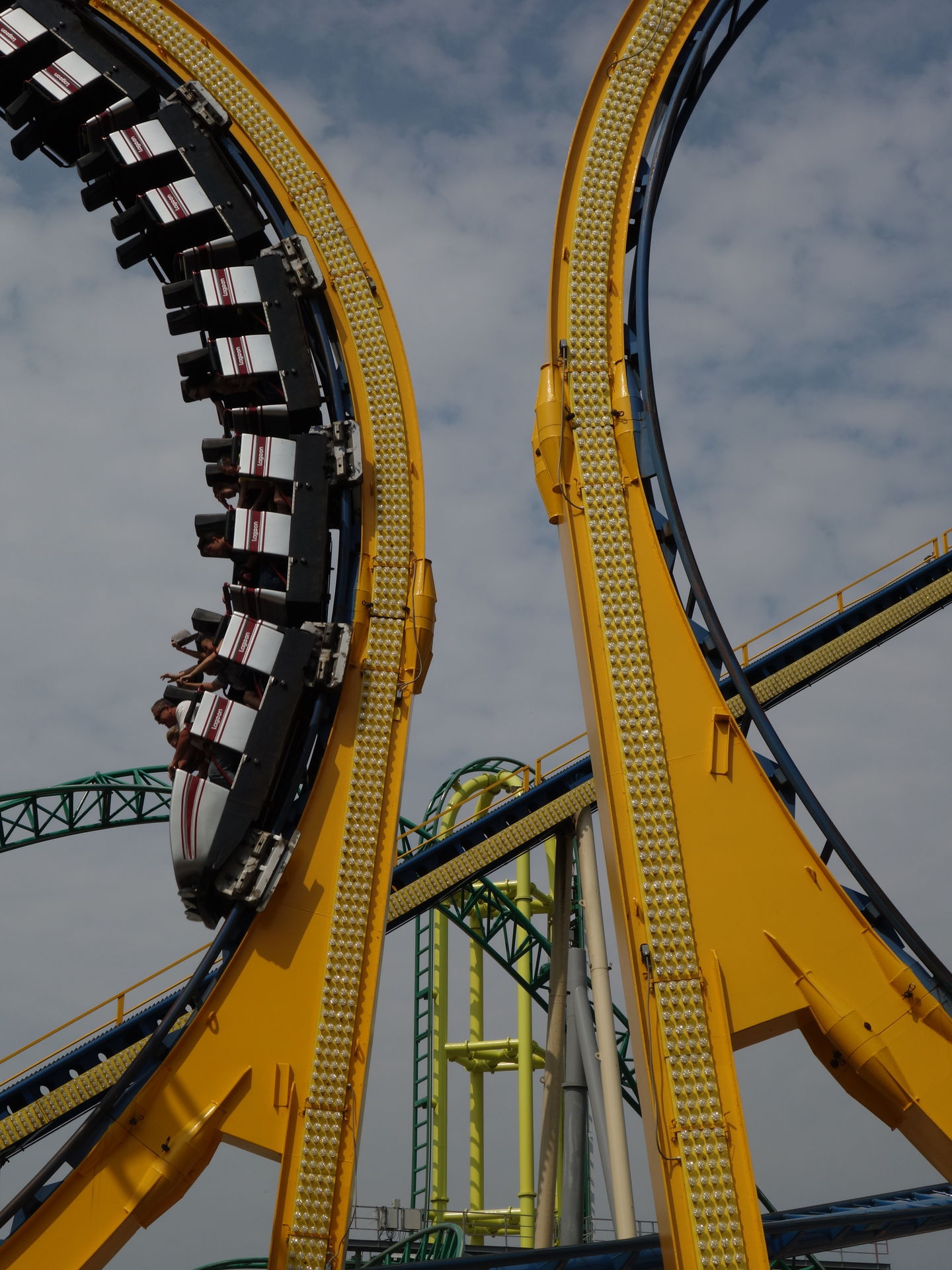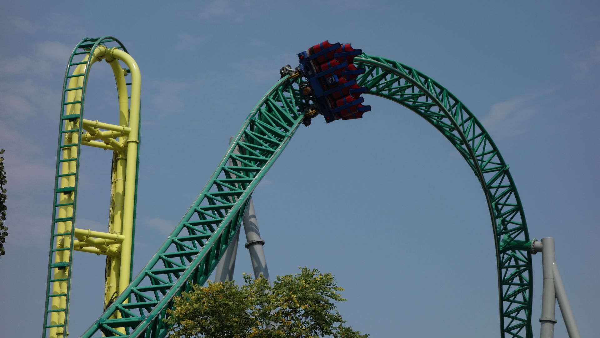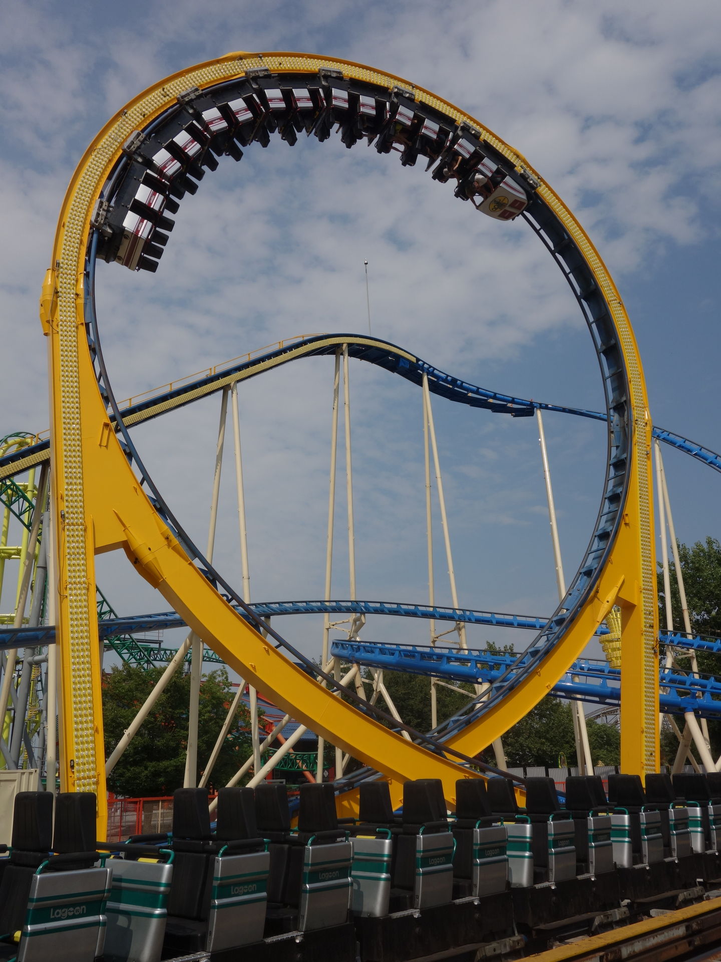 Niedergeschlagen ob der verwehrten Gelegenheit für die kommenden drei Wochen eine Symbiose aus Mensch und Maschine mit einem nagelneuen Jeep Cherokee eingehen zu können, steuerten wir in unserem koreanischen Kackauto, aus offensichtlich selbstironischen Gründen im weiteren nur noch Fury genannt, auf etwas zu, das von außen betrachtet durchaus vielversprechend aussah: Die mit insgesamt zehn Achterbahnen aufgestockte Skyline von Lagoon nördlich von Salt Lake City. Lagoon ist ein Park, der nie auf meiner Bucket List stand und selbst mit der Eröffnung von Cannibal hat sich das nicht geändert. So war der einzige Grund die knapp 50$ Eintritt (welche sich durch Vorzeigen einer Coca Cola Dose um 7$ reduzieren lassen) zu berappen, die Tatsache, dass der Park zwischen unserem Startpunkt Salt Lake City und dem nördlichsten Ziel der Tour, Yellowstone, liegt.