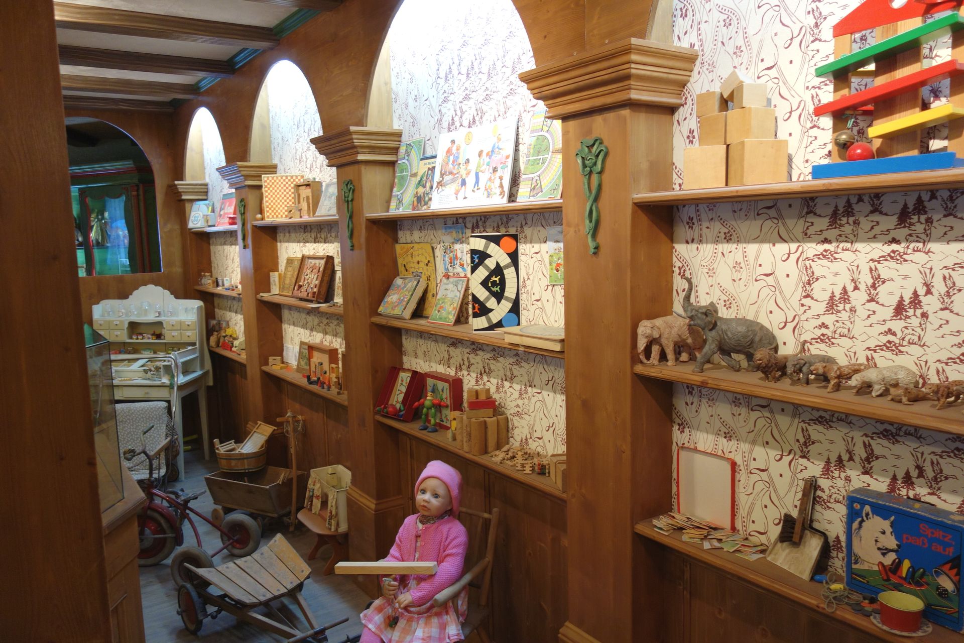 Nebenan wird Spielzeug aus längst vergangenen Zeiten ausgestellt.