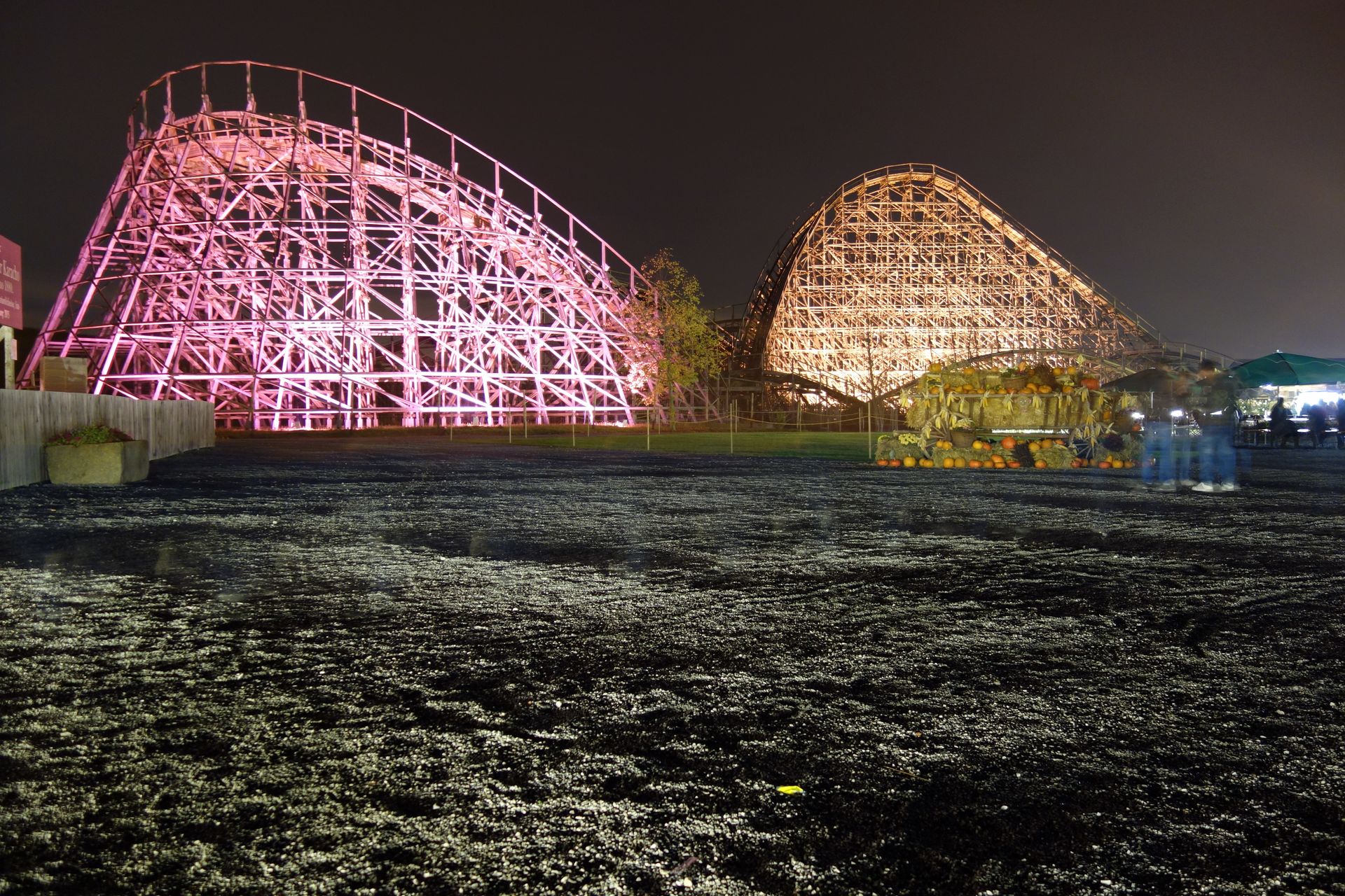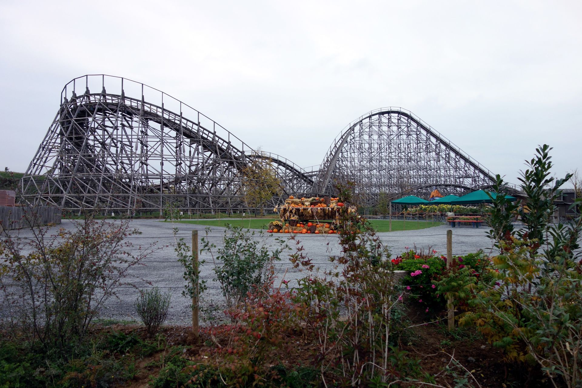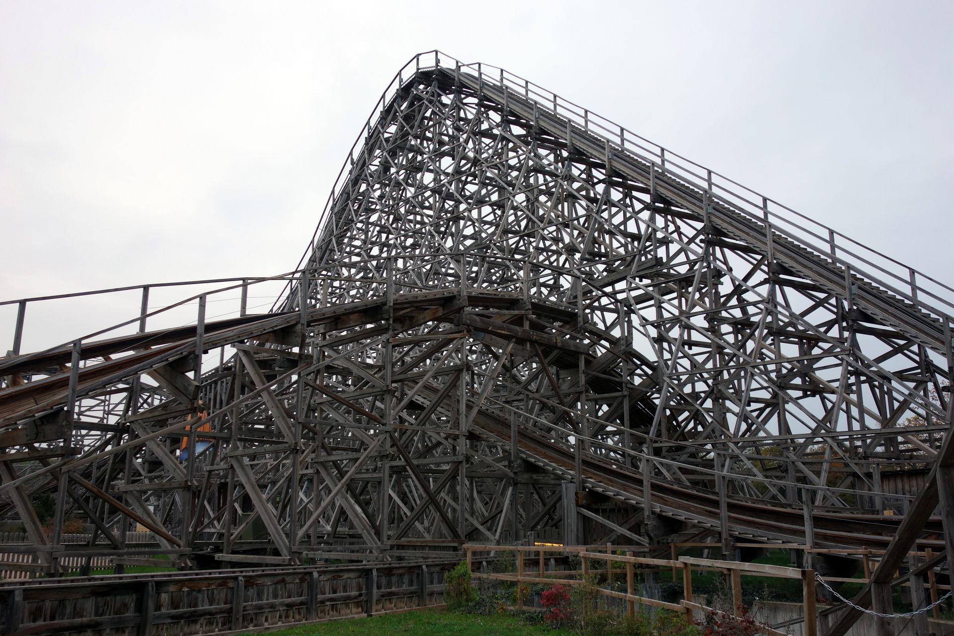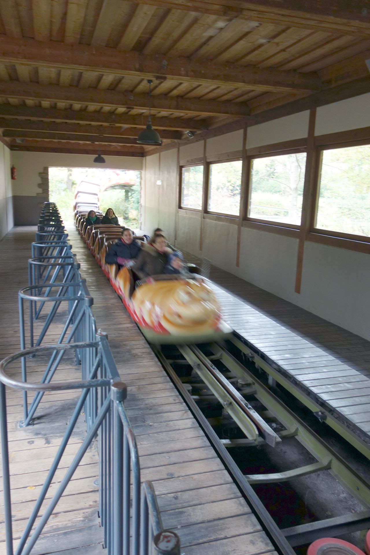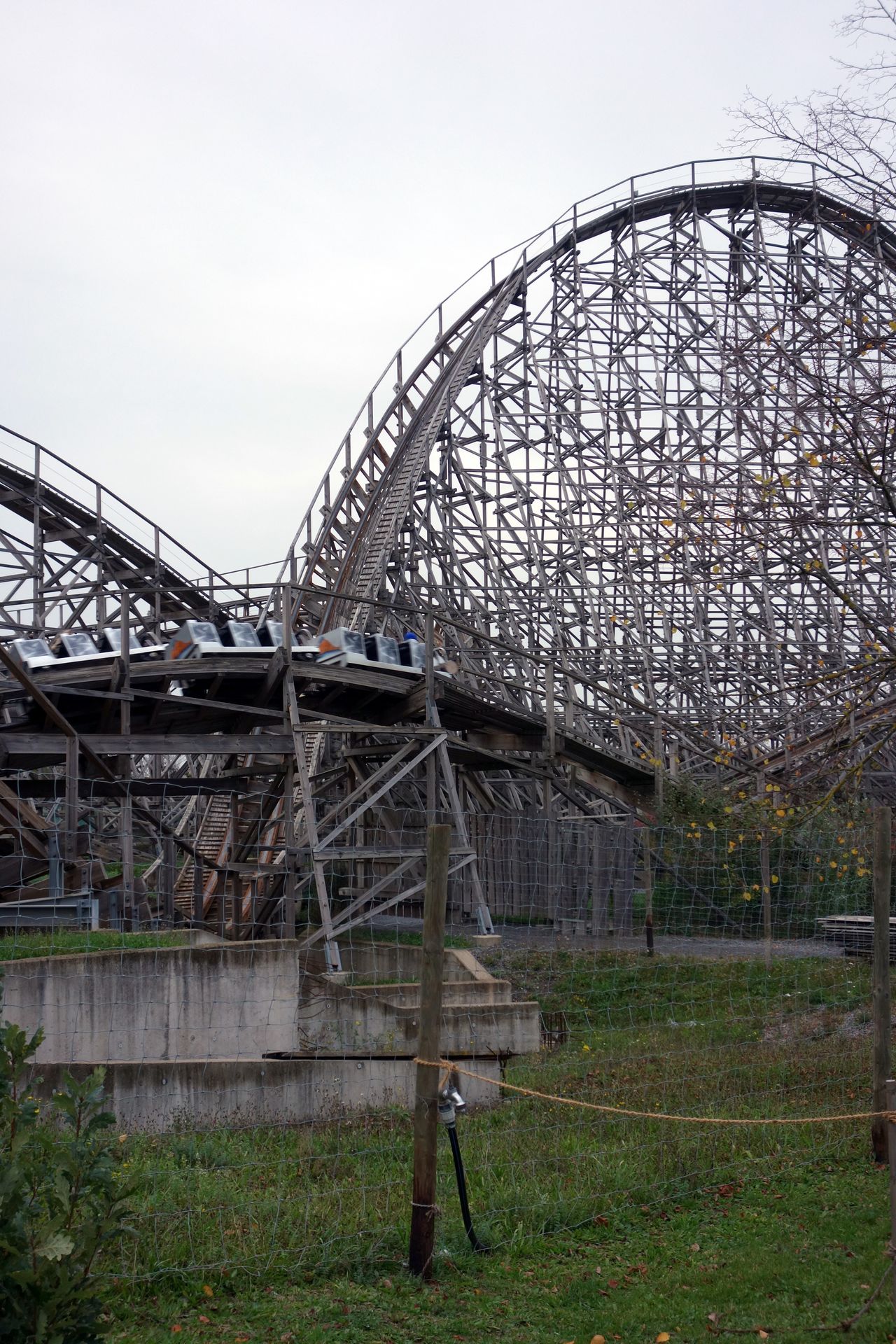 Natürlich stellten wir uns gleich nochmals an. Es folgten mehrere Fahrten, bei denen wir mangels wartender Besucher einfach sitzen bleiben konnten. Nach wie vor im Einzugbetrieb wohlgemerkt! Schließlich mussten wir dann aber doch Platz machen und gingen weiter zur benachbarten Holzachterbahn.
