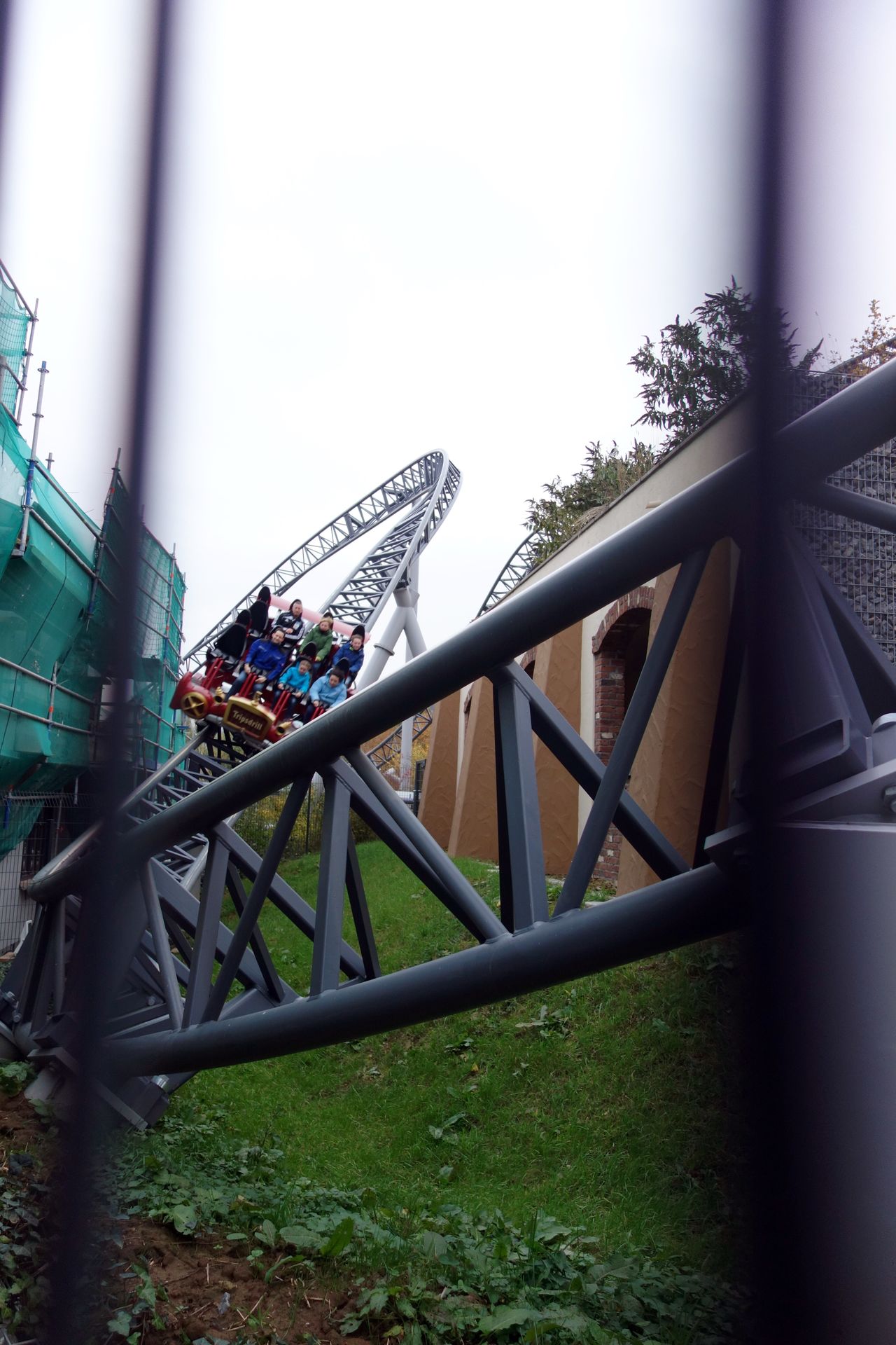 Auch die beiden anderen Züge mussten noch eine Testfahrt hinter sich bringen, während sich vor dem Eingang bereits eine Menschentraube bildete, der wir uns sogleich anschlossen. Recht weit vorne konnten wir wenig später also doch noch unsere Fahrt antreten. Dabei hatte ich den Eindruck, dass der blaue Zug etwas weniger rappelt als der rote, mit dem wir zuvor immer gefahren waren.