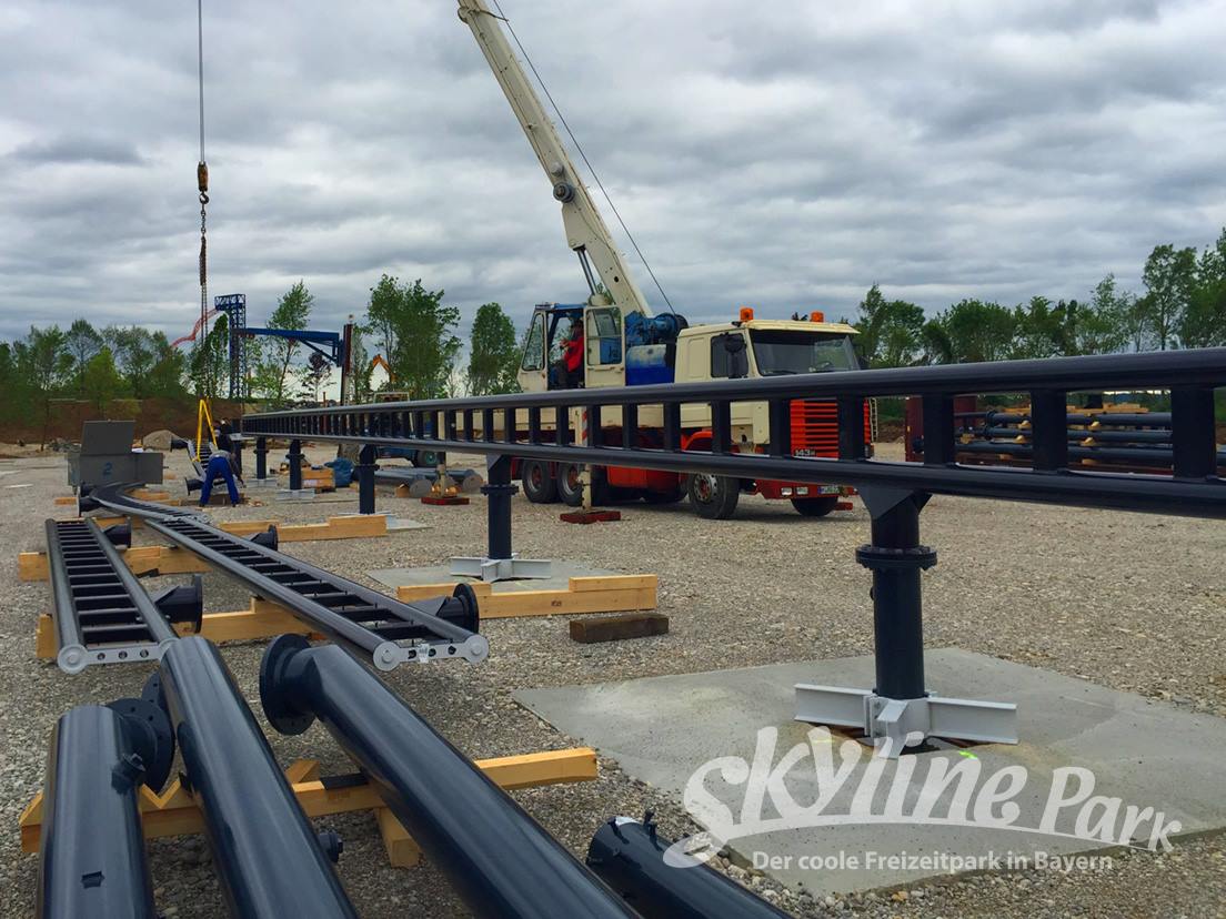 Bei skyfans.de gibt es erste Bilder von Schienen und Stützen.