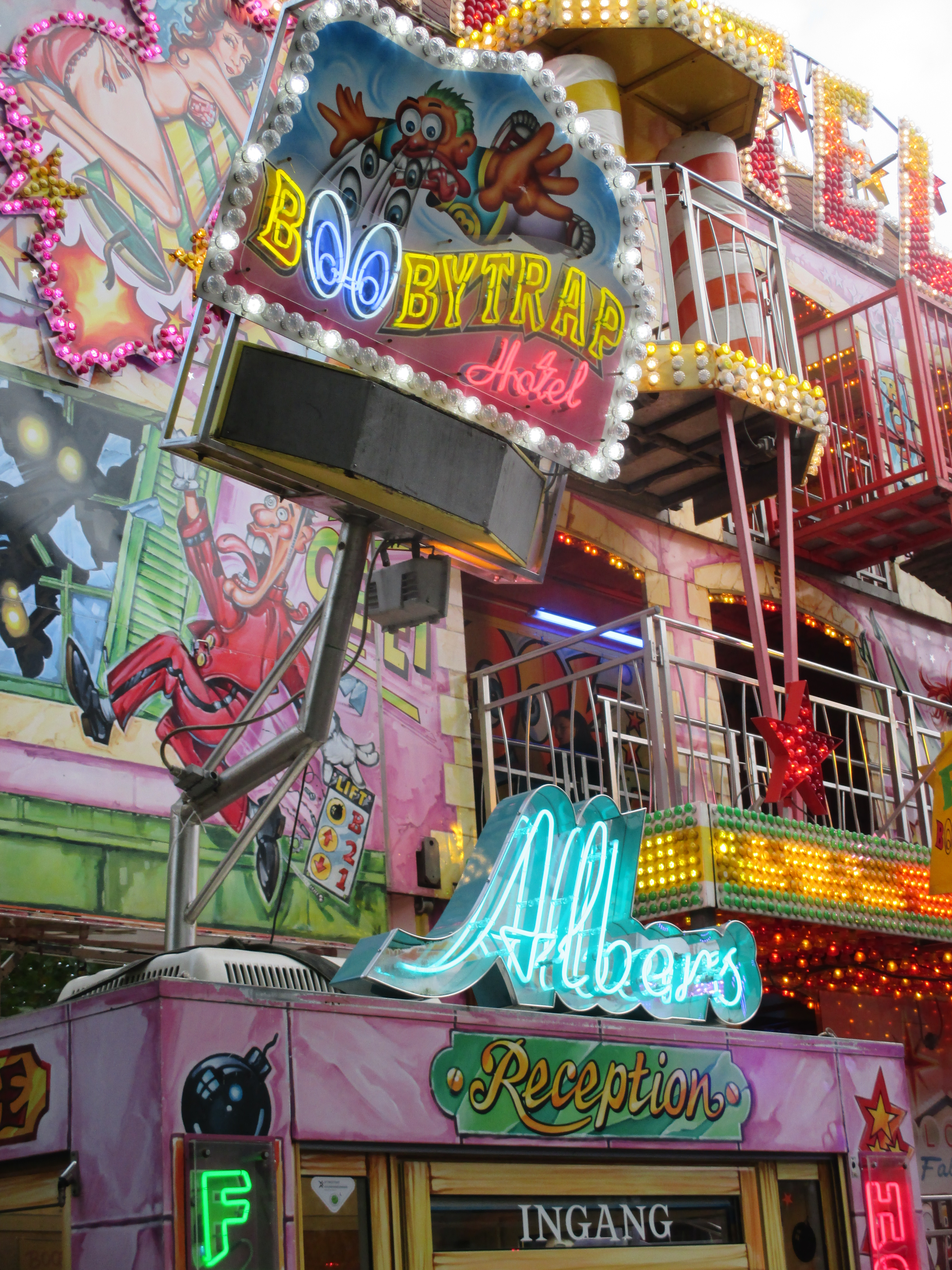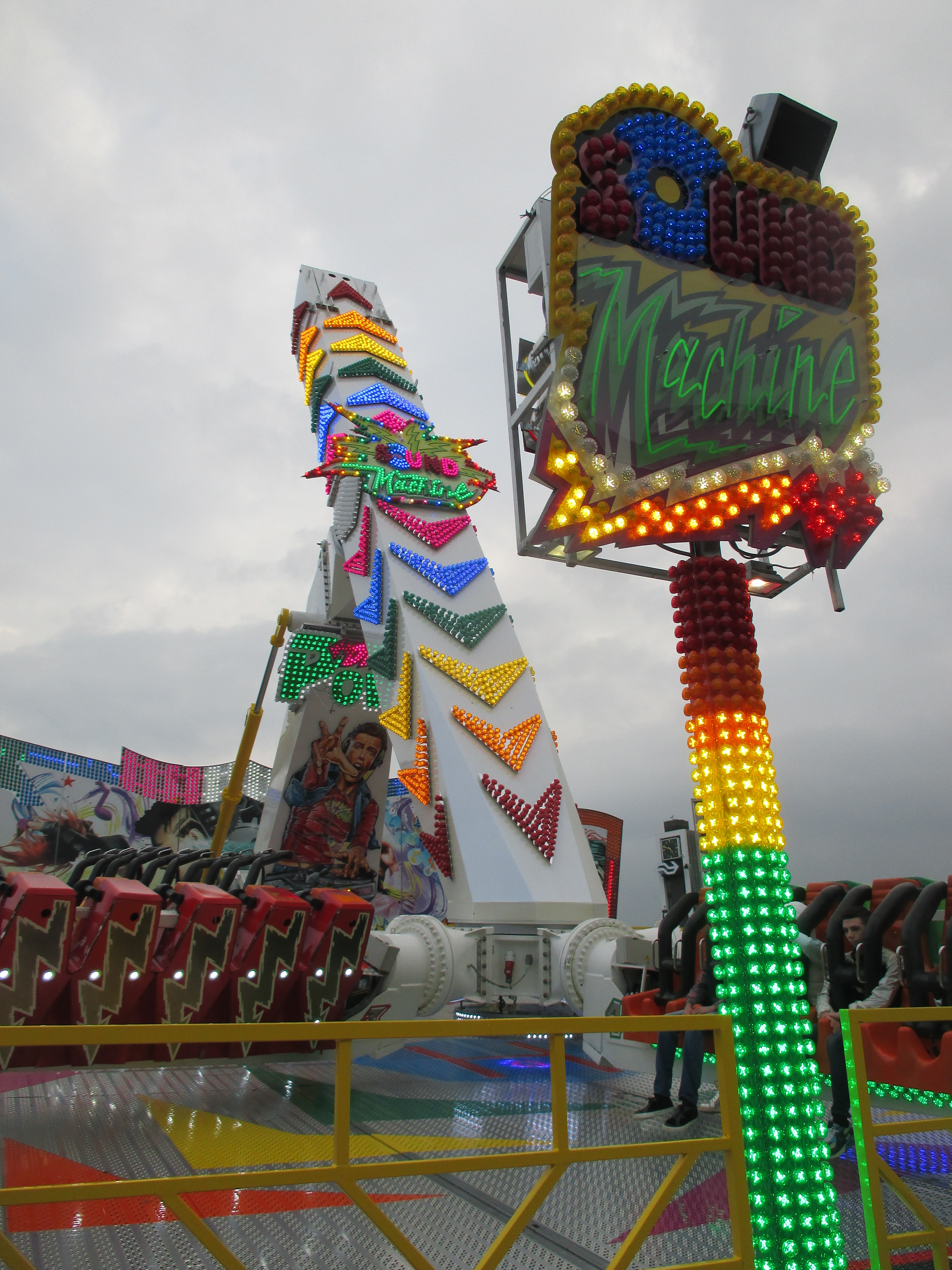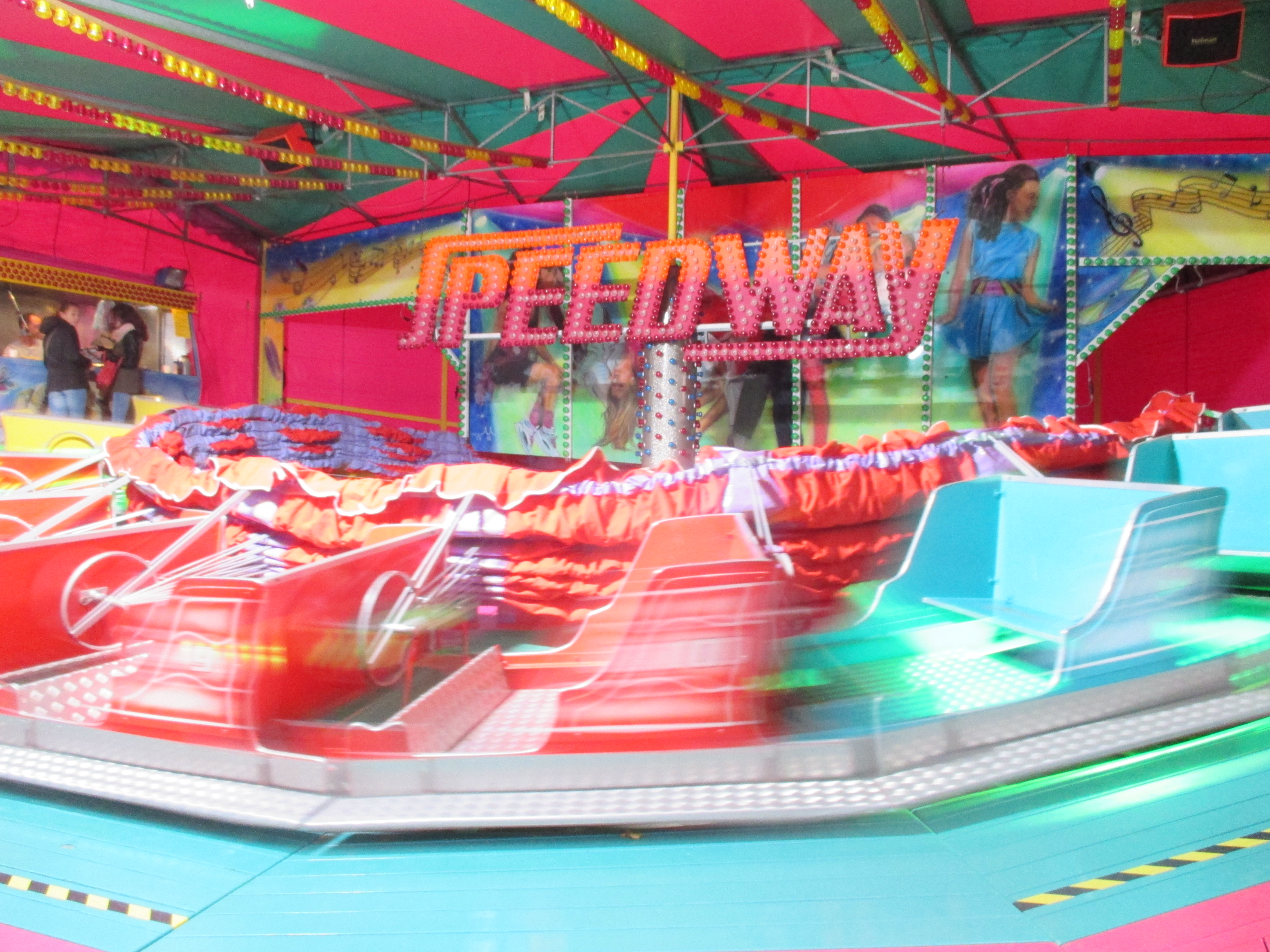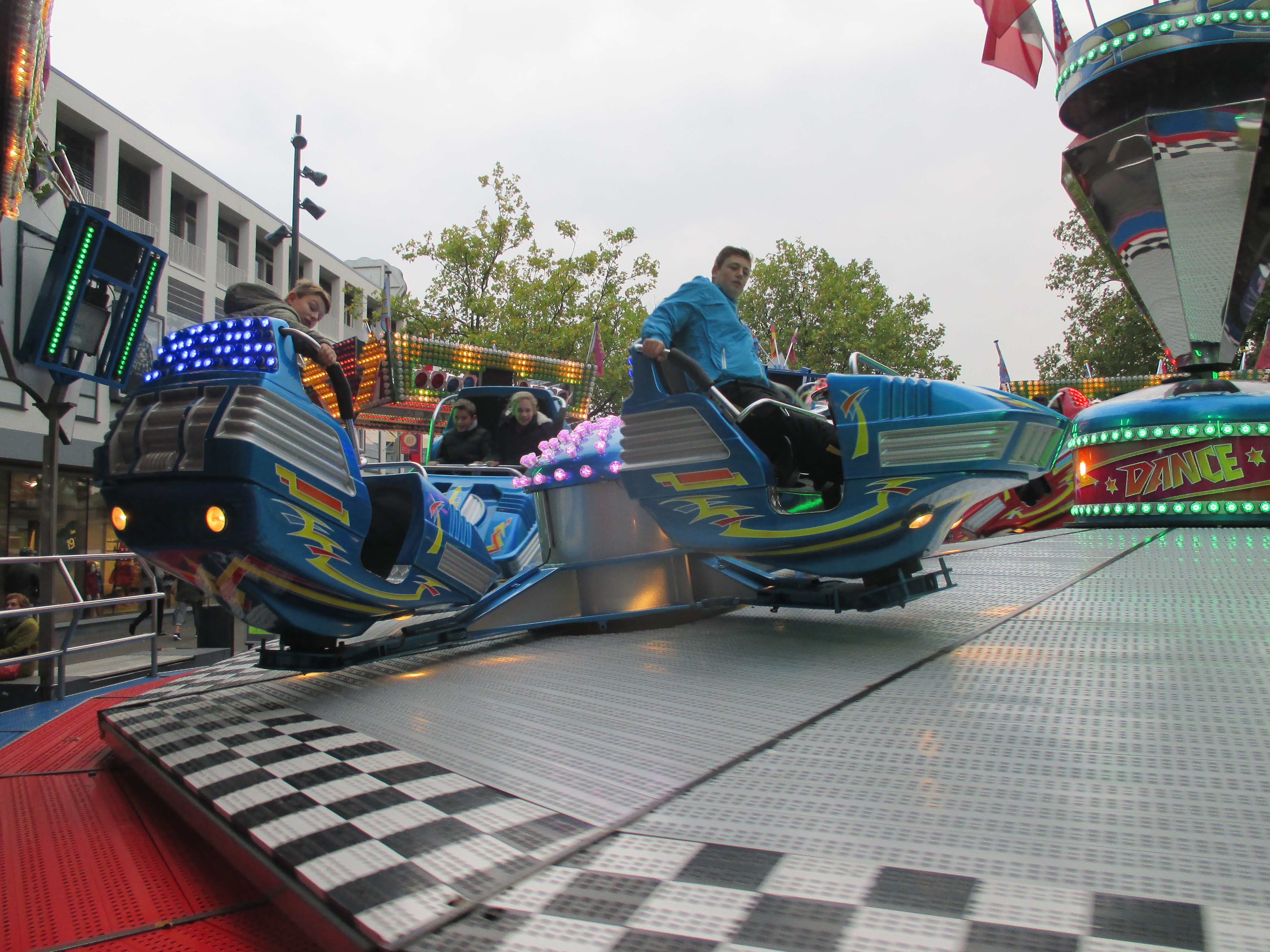 Also den Wagen am Bahnhof geparkt und ab zum ersten Platz mit Sound Machine, Autoskooter, Boobytrap Hotel und Speedway.