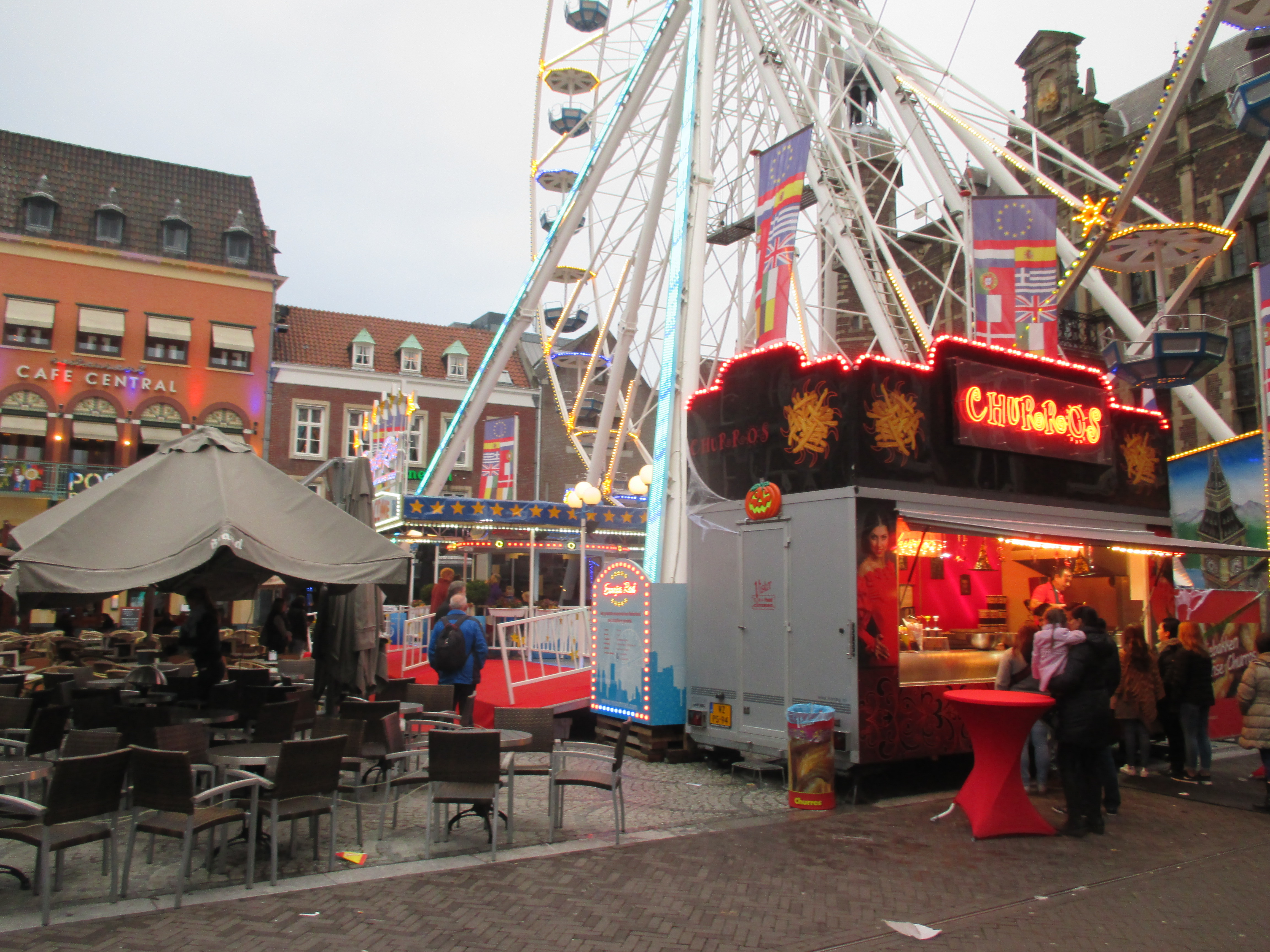 Erster Stop war Venlo, wo die Innenstadtkirmes uns erwartete. Nach verschiedenen Veranstaltungen auf einem Kasernengelände auf der anderen Flussseite ist die Kirmes seit ein paar Jahren wieder in die recht pittoreske Innenstadt von Venlo zurückgekehrt. Im Frühjahr / Sommer gibt es nachwievor die große Kirmes im Stadtteil Blerick (ebenfalls auf der anderen Flussseite).