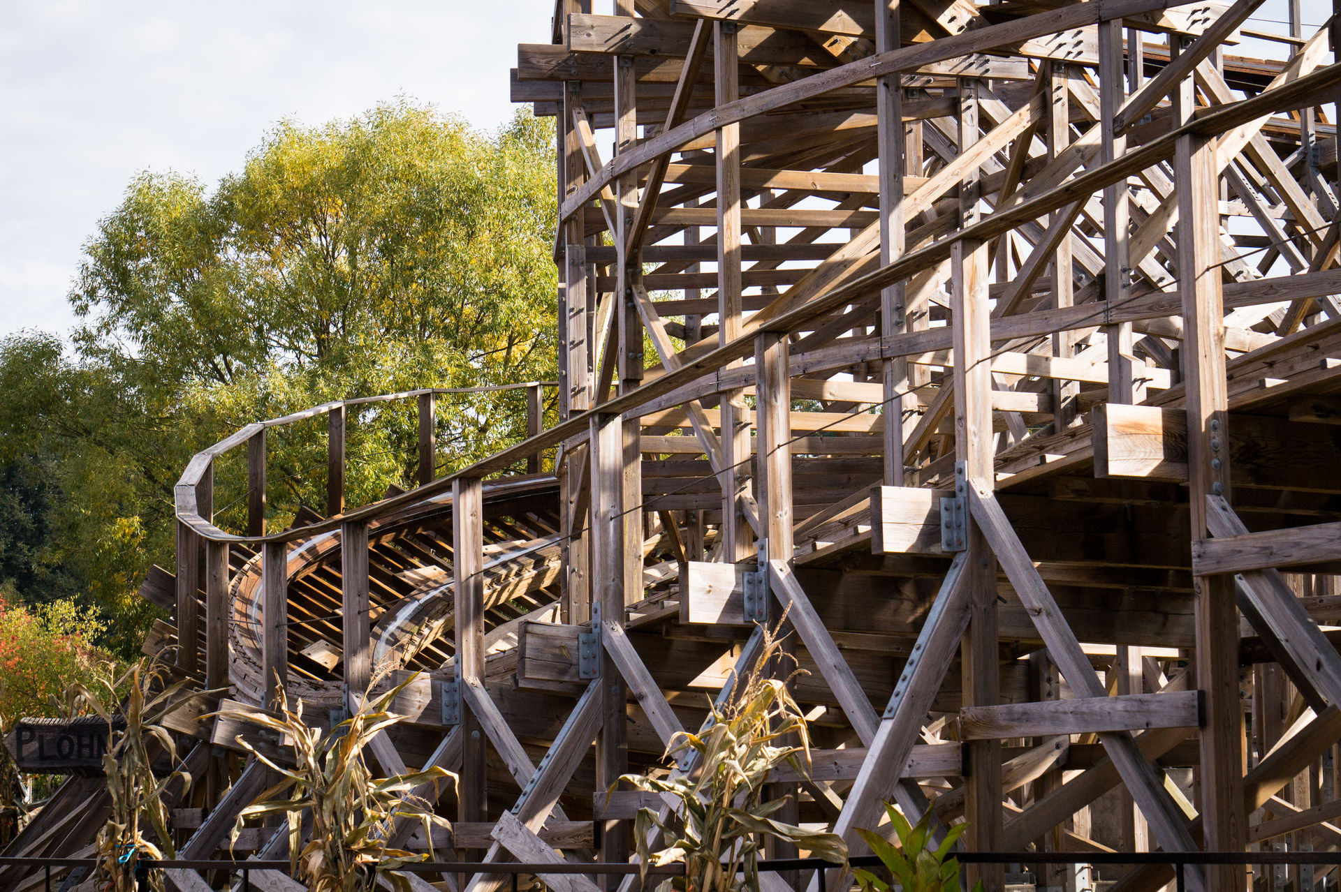 Äußerst verärgert fuhr ich nach Lengenfeld um mir in der lokalen Sparkasse Geld abzuheben und danach erneut nach Plohn, immerhin steht dort eine ziemlich vielversprechende Holzachterbahn und der Rückweg an sich wäre 500 km lang, wo ich dann erneut in der Kassenschlange stehen durfte. Untermalt von einem zutiefst doofen Kommentar konnte ich dann endlich in den Park.
