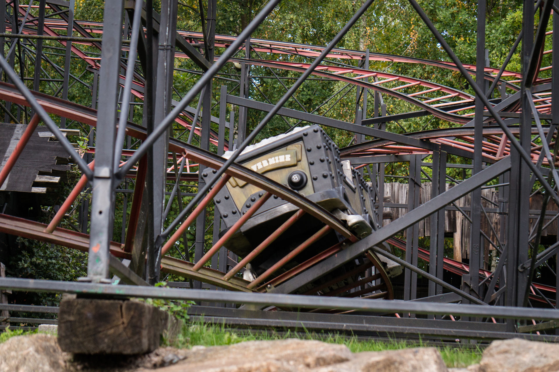 Zierer, welche ähnlich der unter Vorlop hierzulande reisenden Anlage High Explosive ist. Gestartet unter einem deutschen Schausteller in den 70ern wanderte sie bereits recht schnell nach Amerika aus, wo sie bis 1990 ihre Fahrgäste im Freizeitpark Adventureland noch in Originalausstattung unterhielt. Im Jahr 1996 präsentierte sich die Anlage als Rioolrat in einem neuen Gewand und mit neuen Wagen im niederländischen Freizeitpark Avonturenpark Hellendoorn. Diese Wagen in Form einer Kanalratte wurden auch bei der Mäuseachterbahn der Spielerei Rheda-Weidenbrück verwendet, hier aber auch noch in Verbindung mit den Originalen. Komplett an Fahrspaß verlor die Anlage erst im Jahr 2000 wo sie sich mit Bergwerksloren bestückt dem Publikum präsentierte. Es ist ein Unterschied wie Tag und Nacht wenn man mit den minimalistischen Flitzern über die Schiene brettert, wie beispielsweise im dänischen Freizeitpark Bakken, oder an den hochwandigen Wagen während der Fahrt andauernd irgendwo anstößt wie es hier der Fall ist.