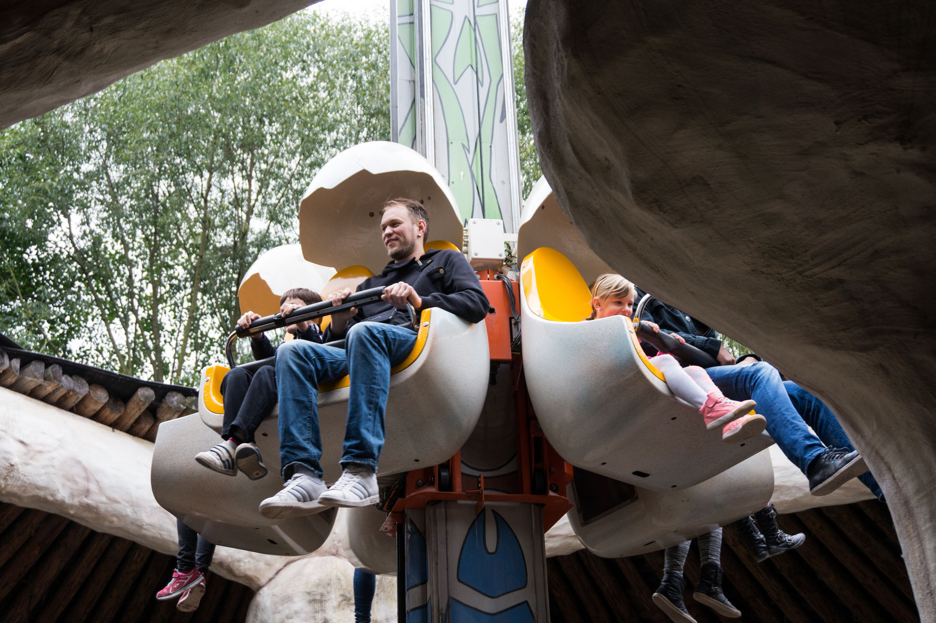 Der Freefalltower im Urzeitdorf bietet zumindest eine gute Fahrt.