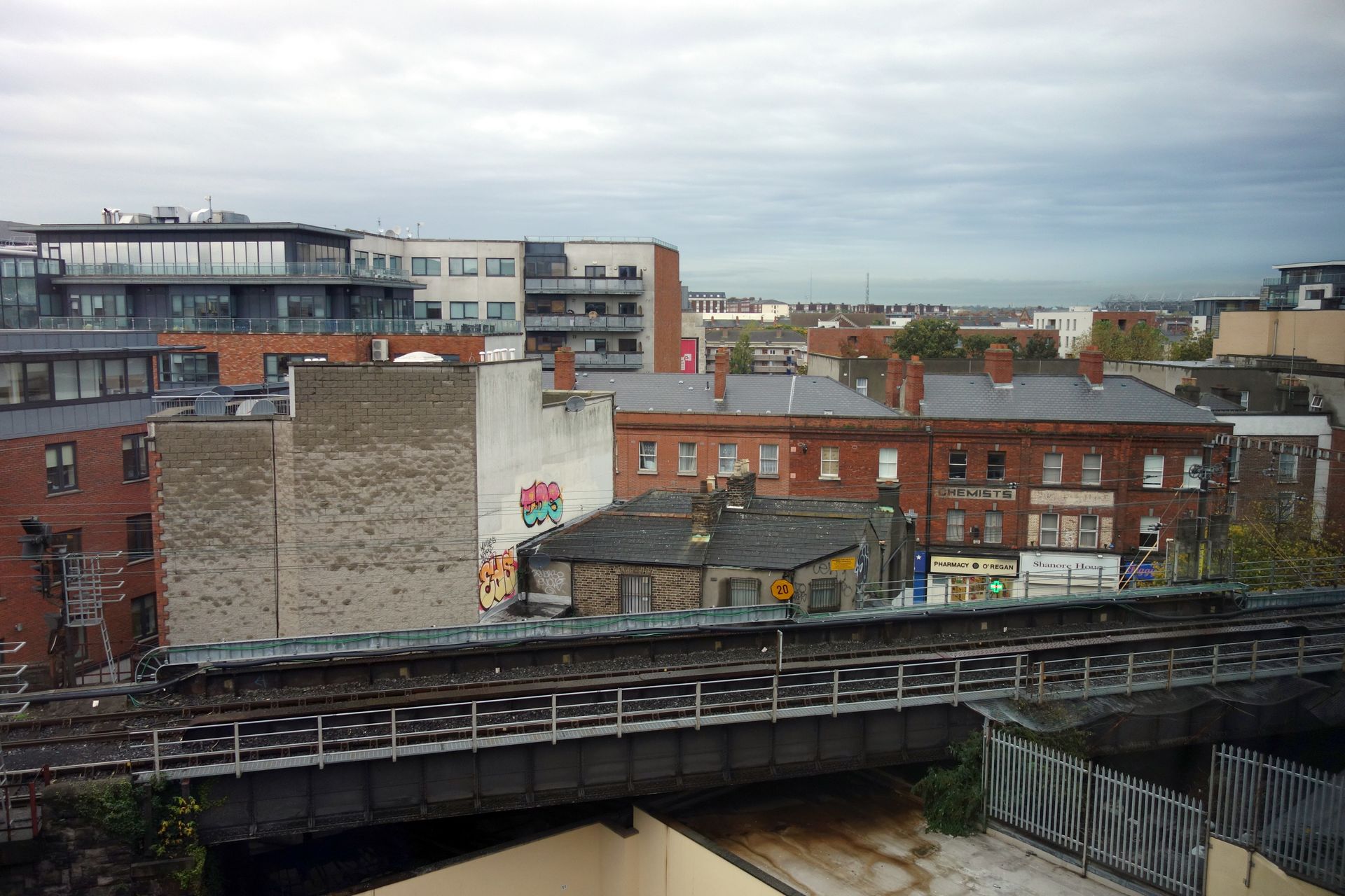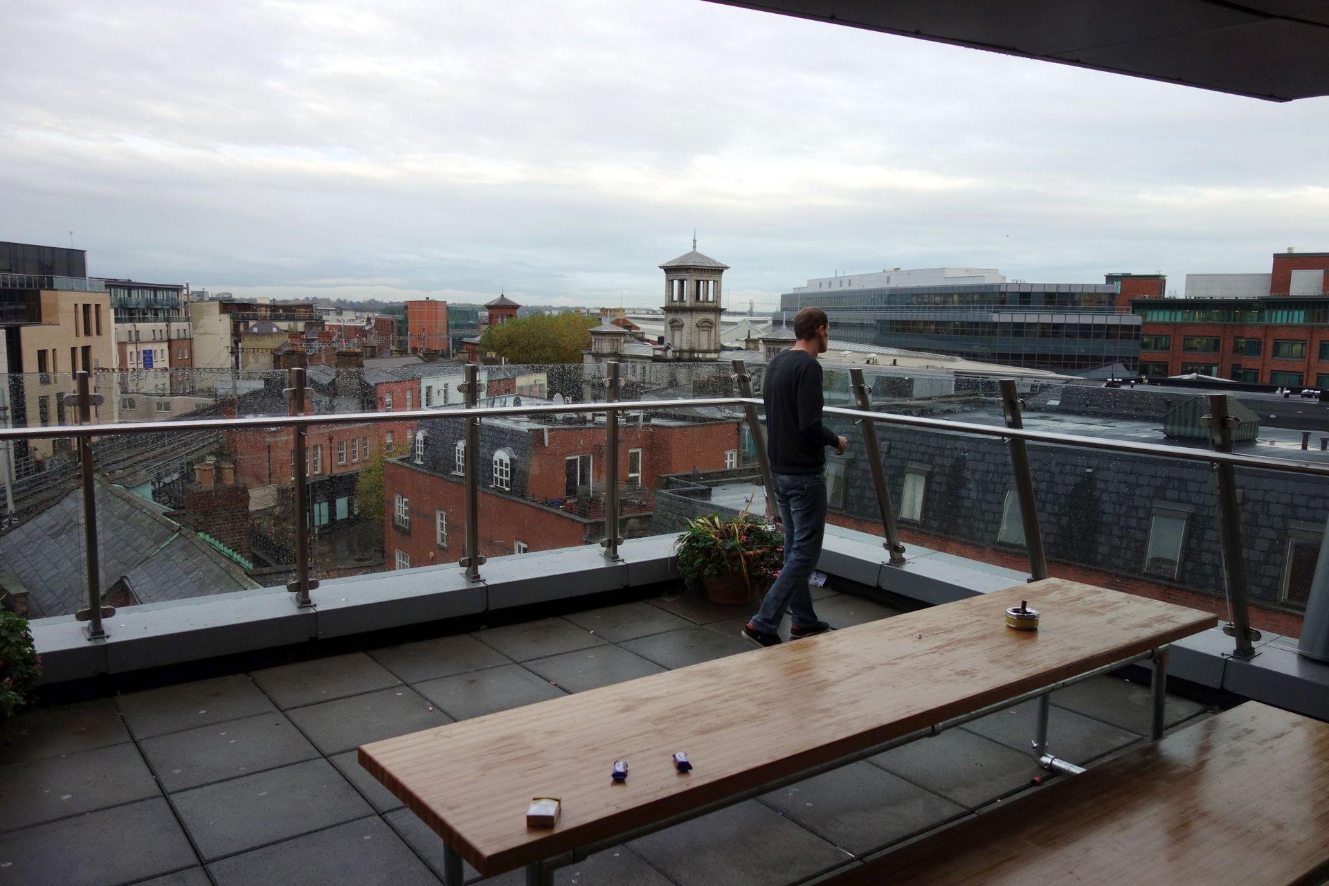 Da wir nur mit Handgepäck reisten (welches wir auch in beide Richtungen mit in die Kabine nehmen durften), konnten wir nach der Einreise sofort den Ausgang des Flughafens ansteuern. Bei leichtem Nieselregen stiegen wir direkt in einen dort bereitstehenden Bus von Aircoach, der uns wenig später für weitere 11¤ (inklusive Rückfahrt, ebenfalls online gebucht) in die Stadt brachte. Als wir dort ausstiegen, hatte man den Regen bereits abgeschaltet.