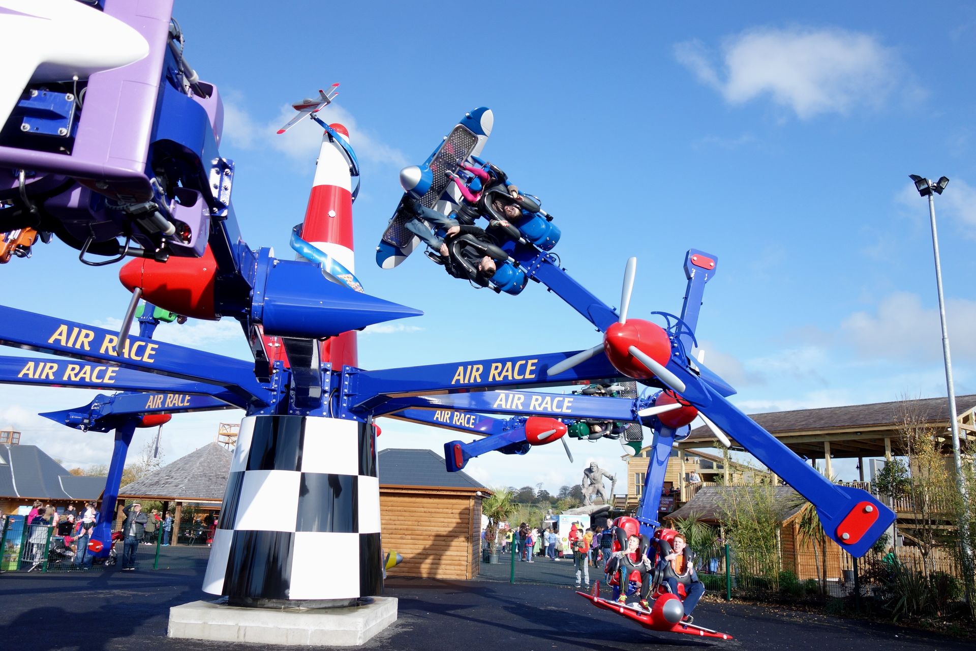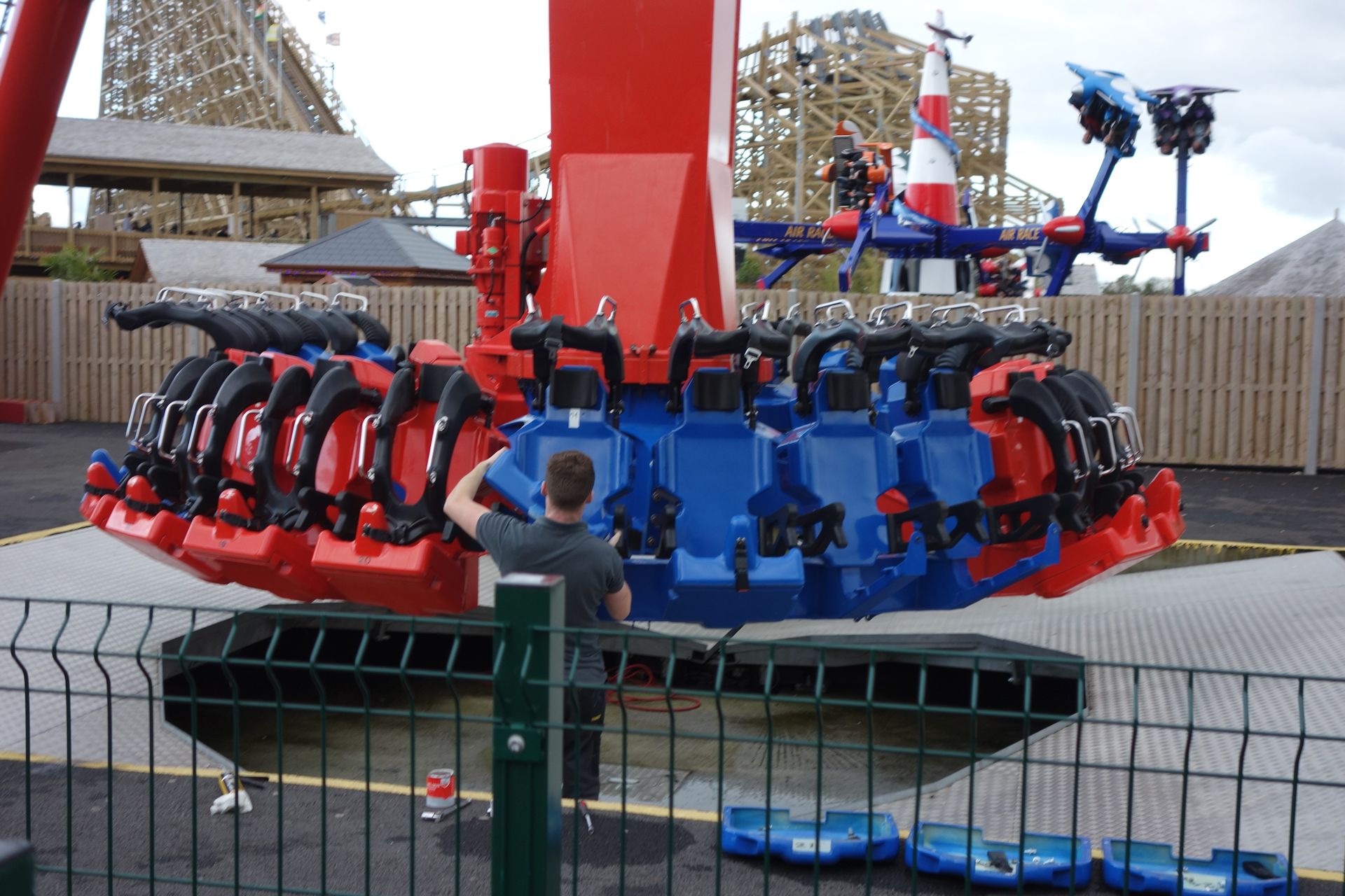 Direkt vor dem Woodie steht ein Zamperla Air Race in der großen Variante aber mit nur zwei Sitzen pro Gondel.