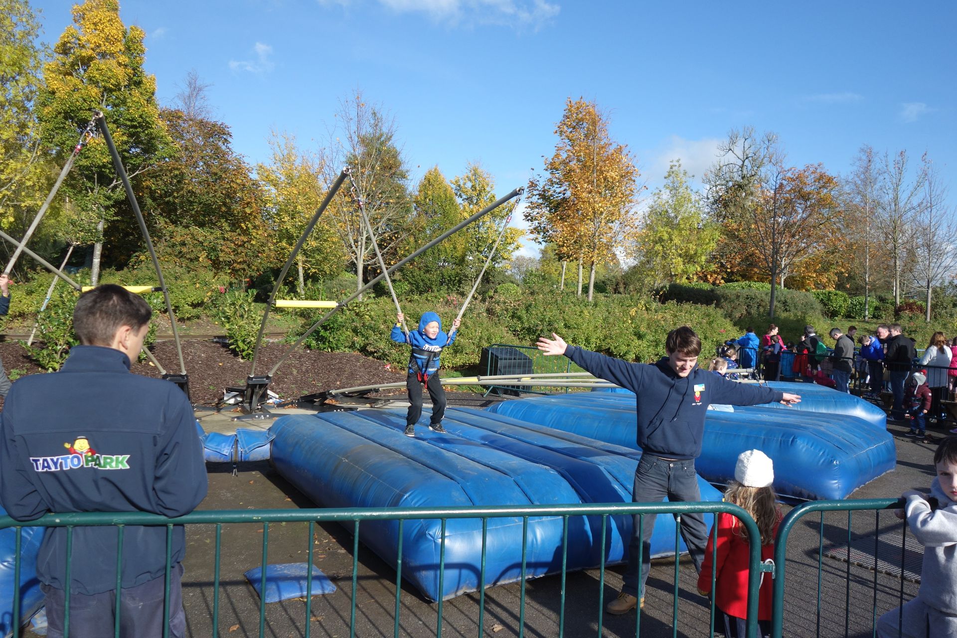 Quasi gegenüber stehen ein paar Hüpfkissen für die Kids.